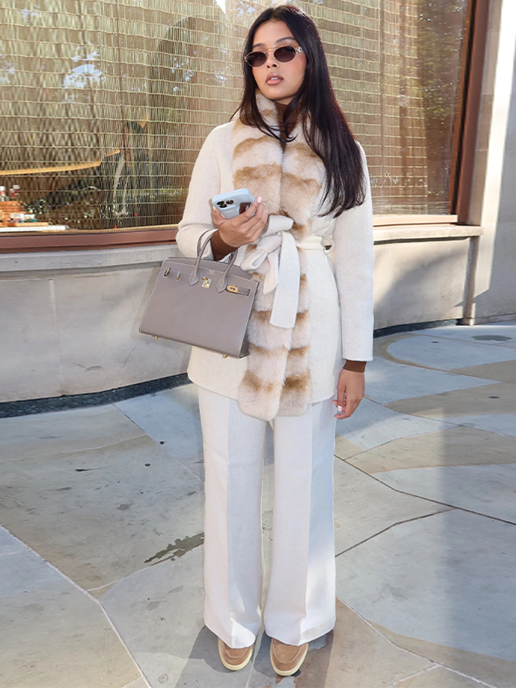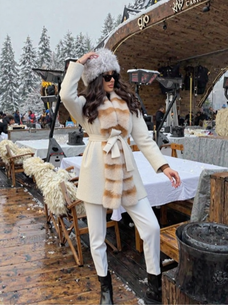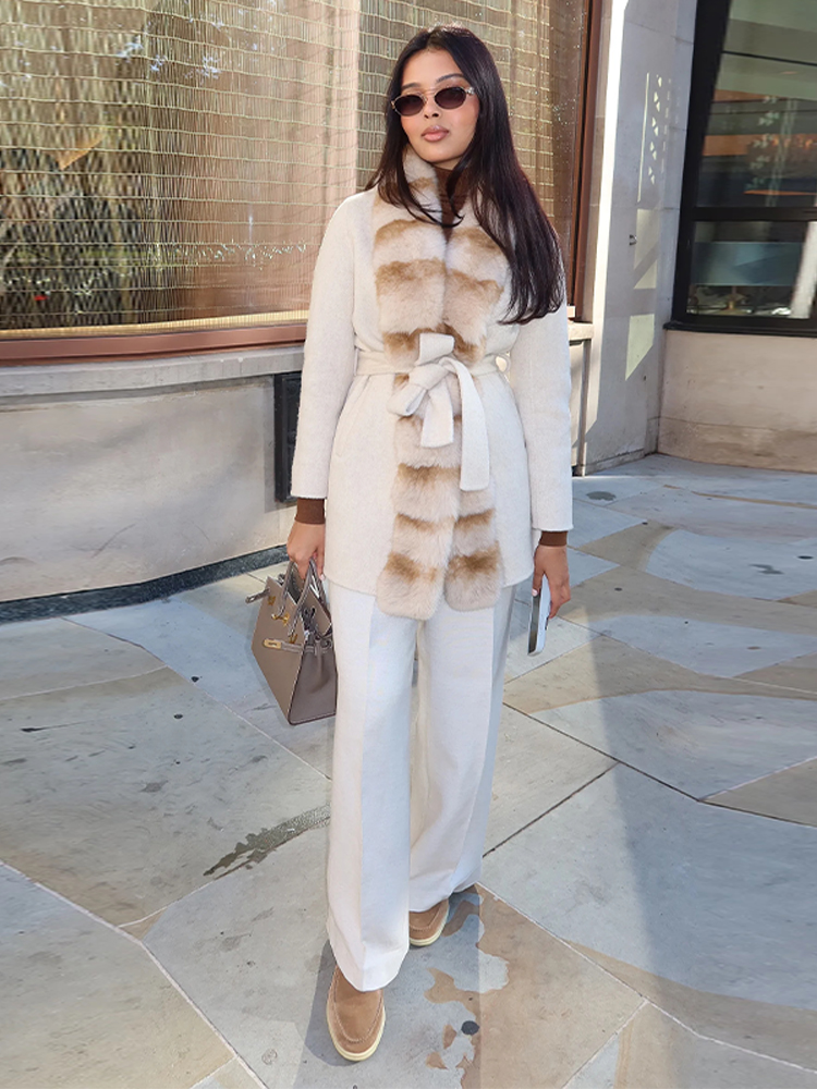 The fur trim along the collar and placket is adorable, and it even comes with a matching belt.