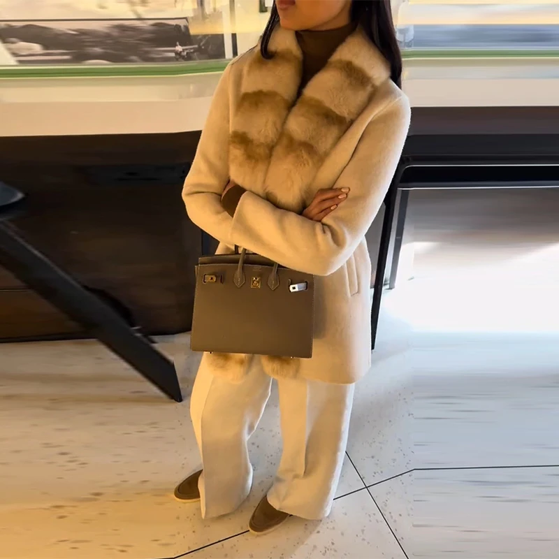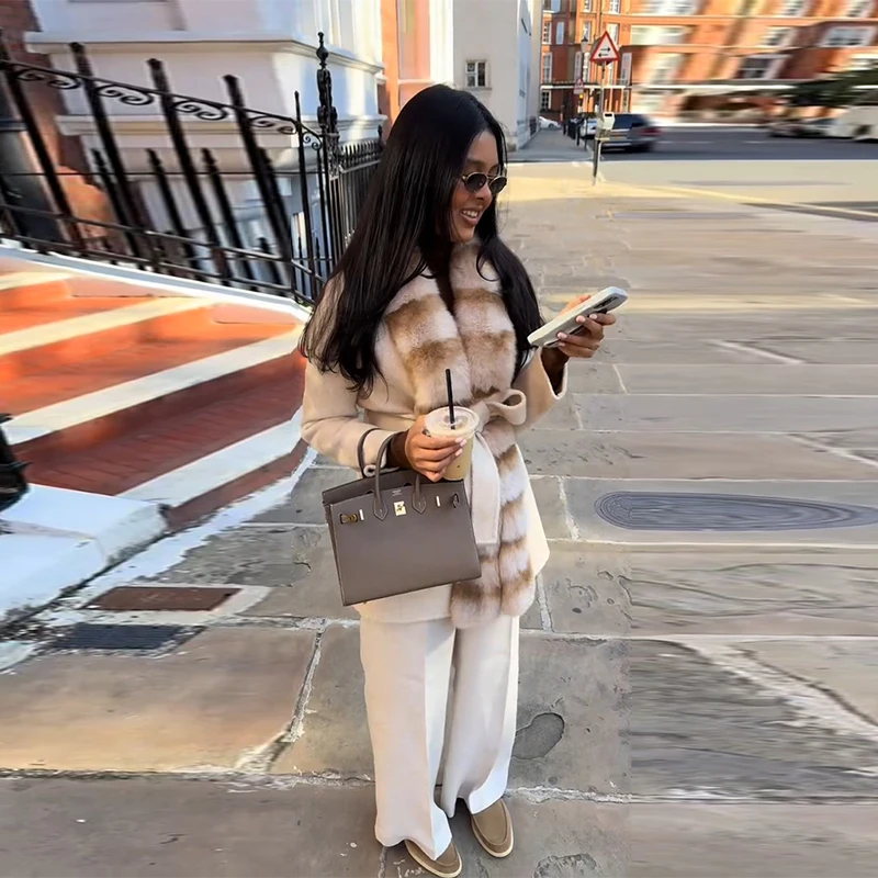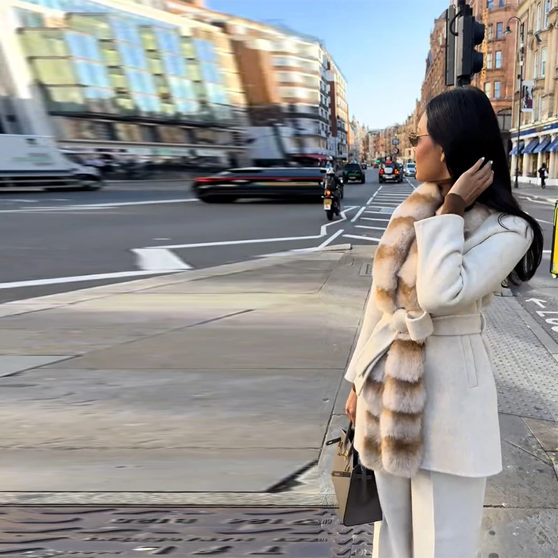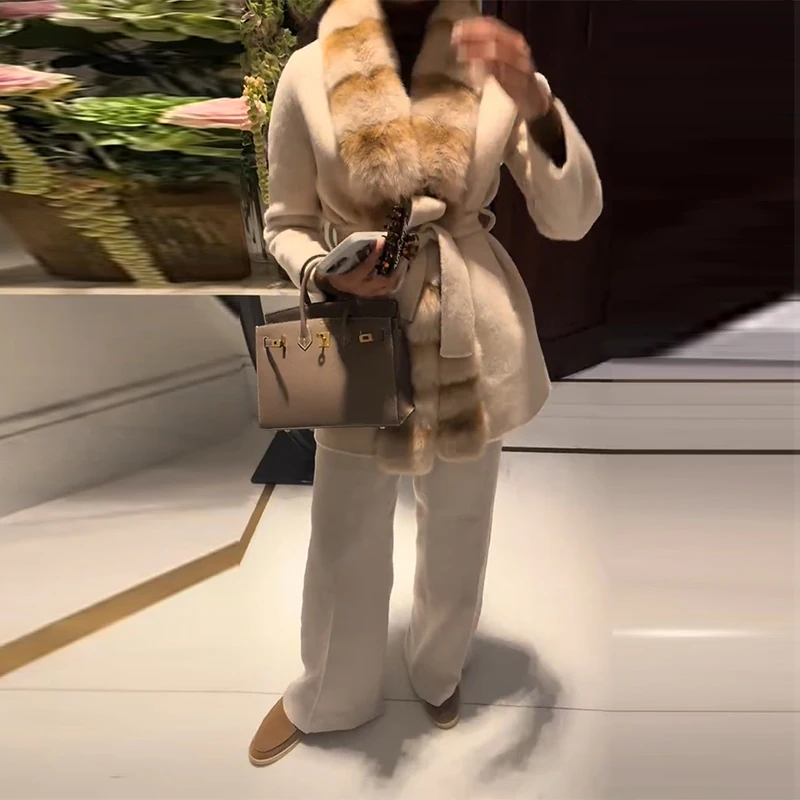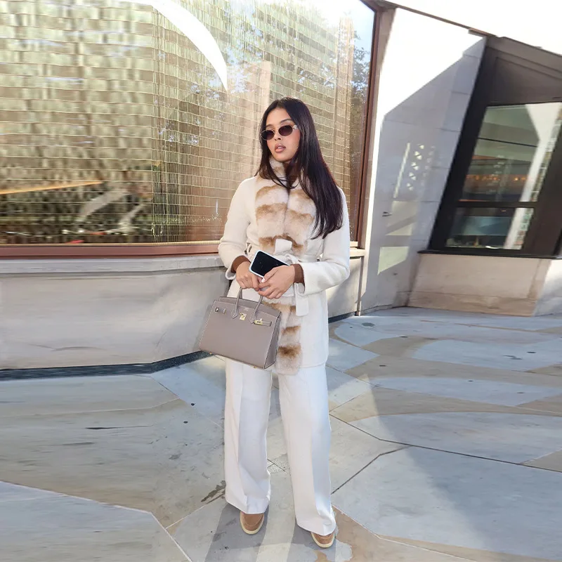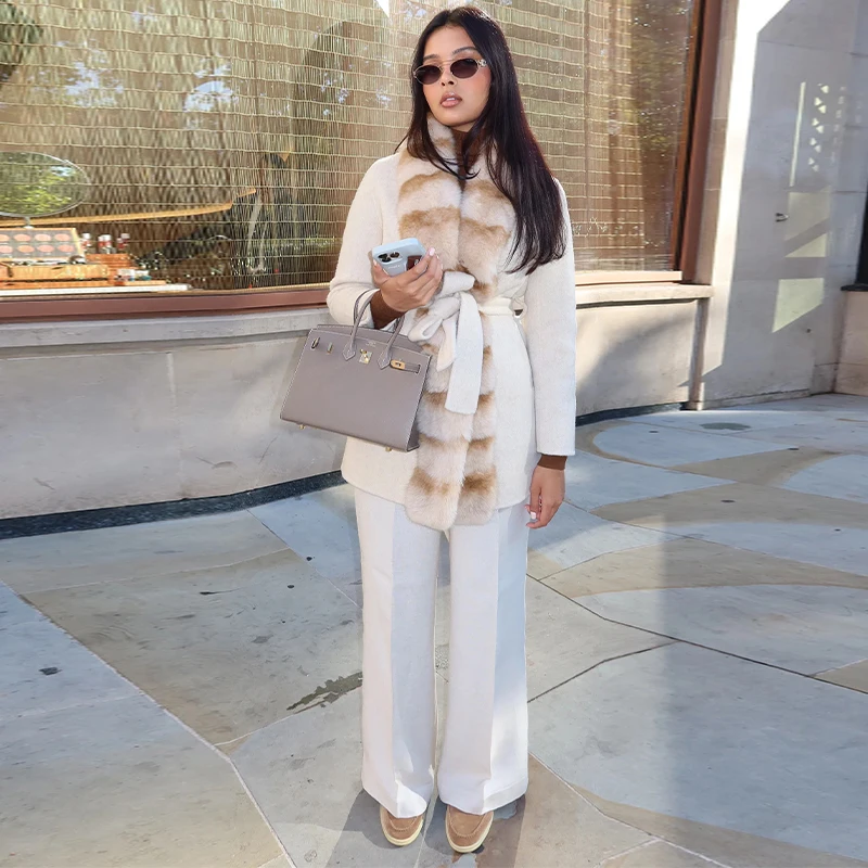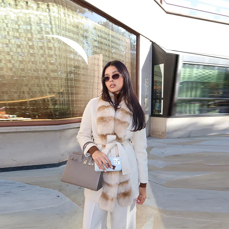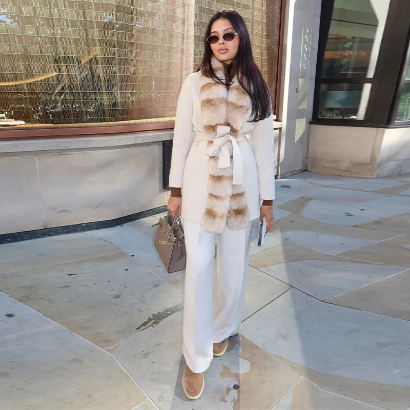 The fur trim along the collar and placket is adorable, and it even comes with a matching belt.