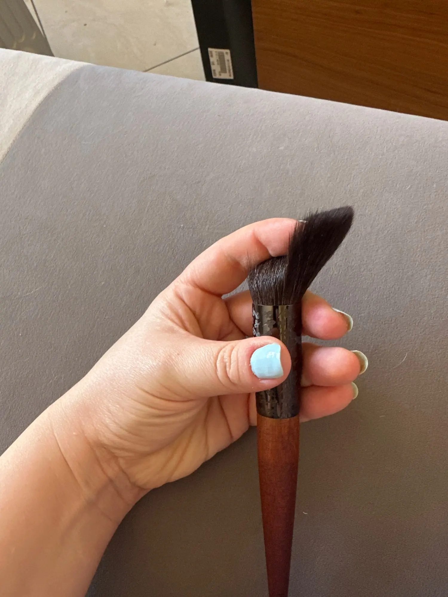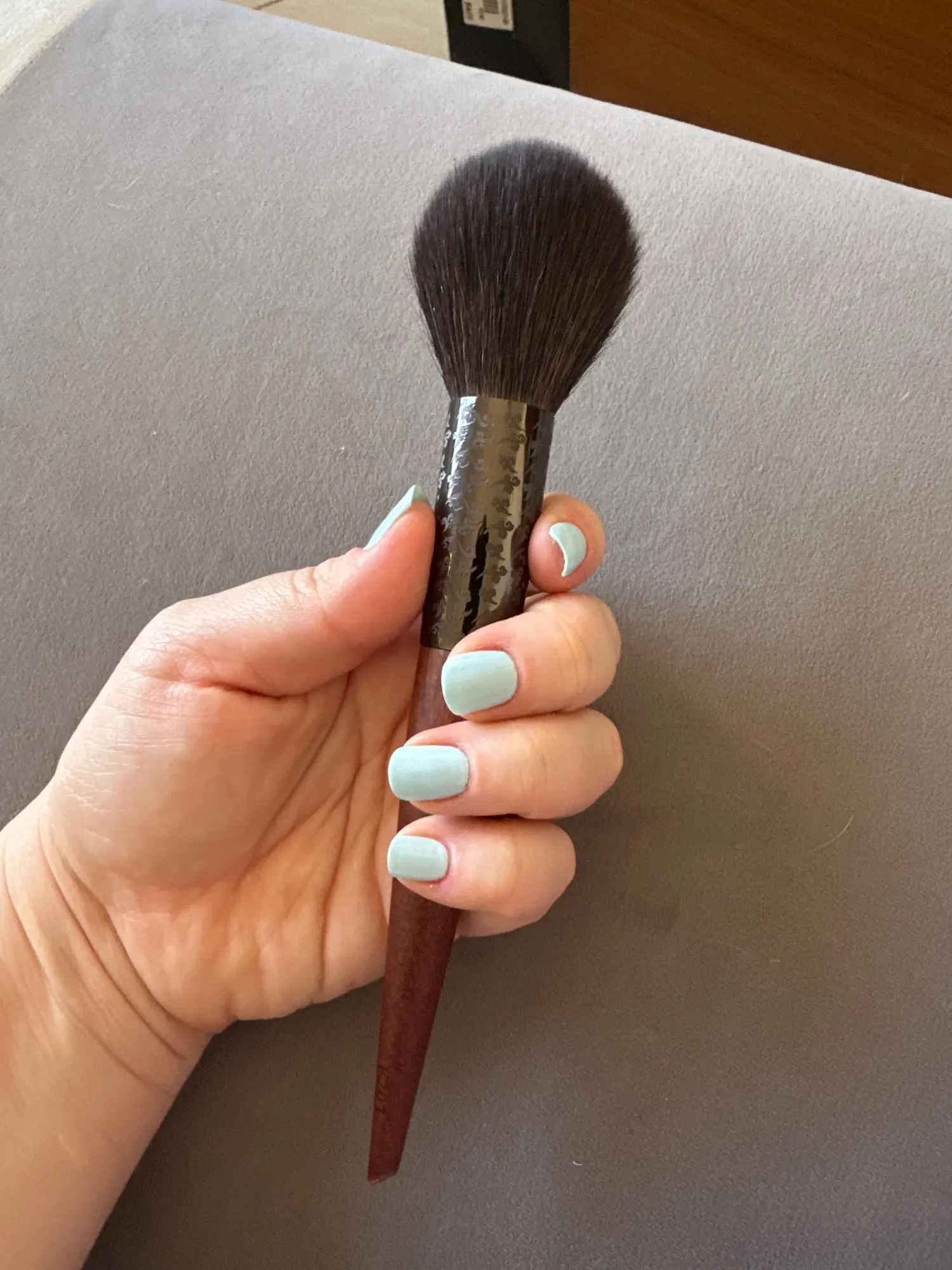I bought a brush to try and see if there is a significant difference between using natural and artificial bristles :) So far, I haven't noticed any significant changes, but I definitely really enjoyed the feeling during use. ❤️ The brush is the perfect size, soft, and perfectly blends makeup on the face)) and the brush is also very beautiful, like from a luxury brand, focused on ecology and wooden elements). In general, I recommend it. ❤️