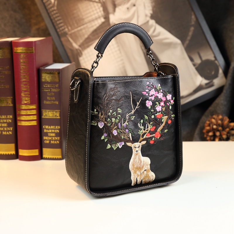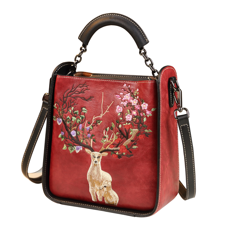 Chinese Style Genuine Leather Women Bag New Elegant Lady Mom Portable Shoulder Messenger Bag Handmade Women’s Embroidered Bags
