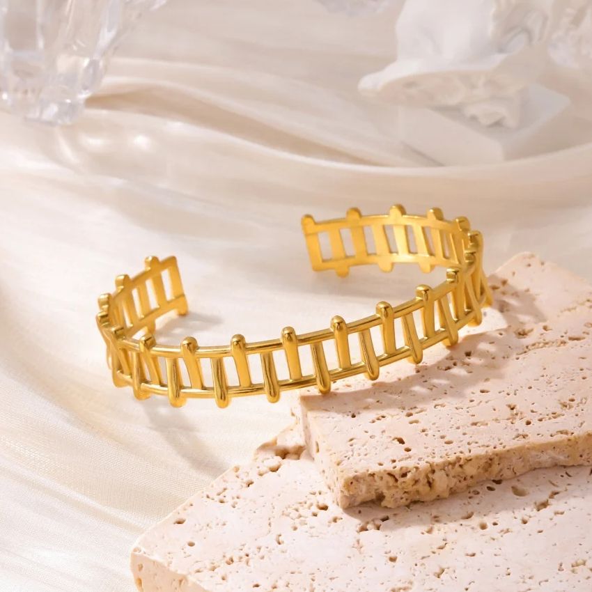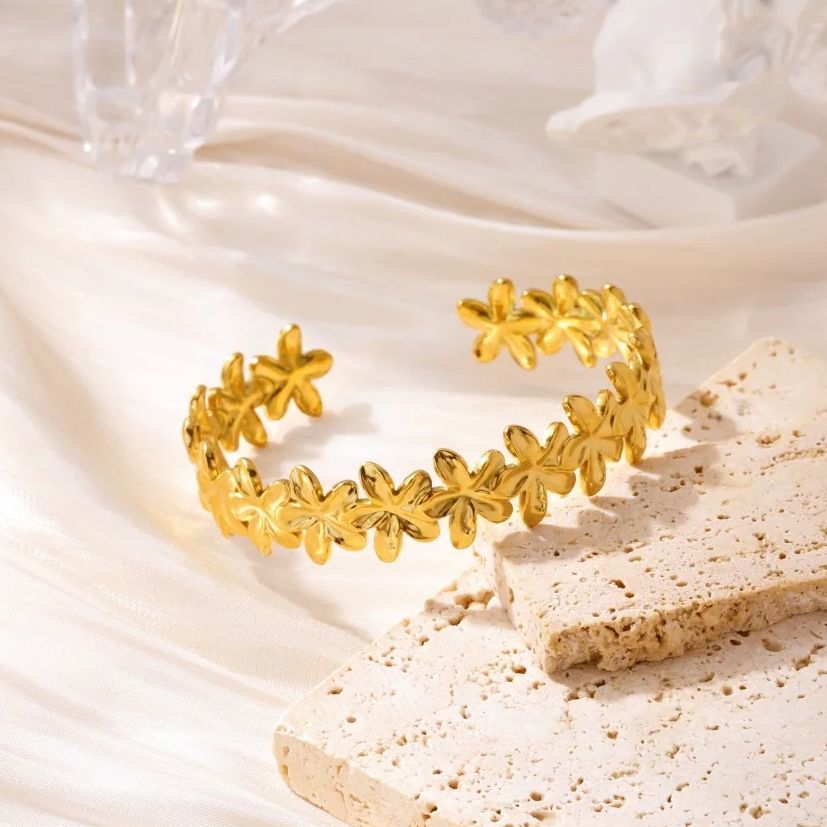 Classic Elegant Flowers Patchwork Cuff Bracelet Gold Color Stainless Steel Delicate Adjustable Open Geometric Bracelet Jewelry Gift