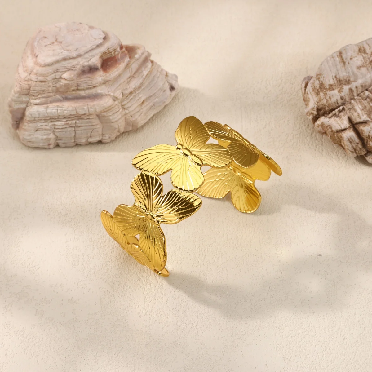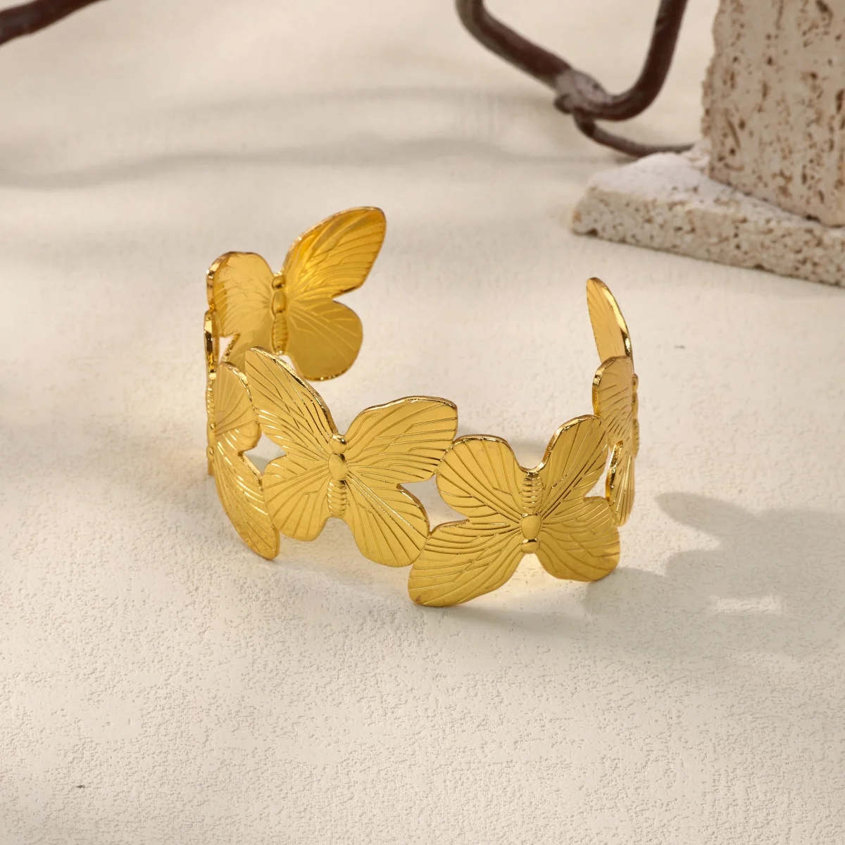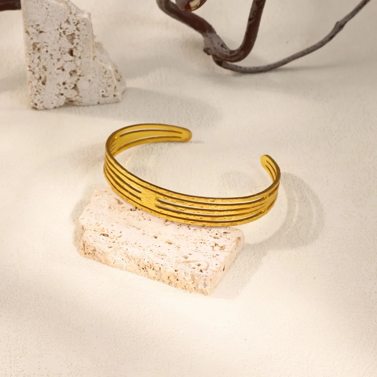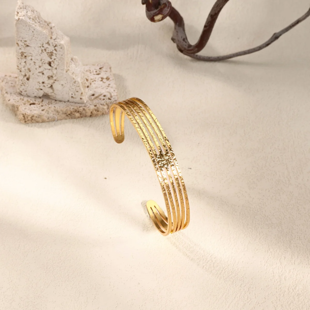 Classic Texture Geometric Open Bangle Bracelet For Women Stainless Steel Gold Color Exquisite Cuff Bracelet 2025 Hand Jewelry