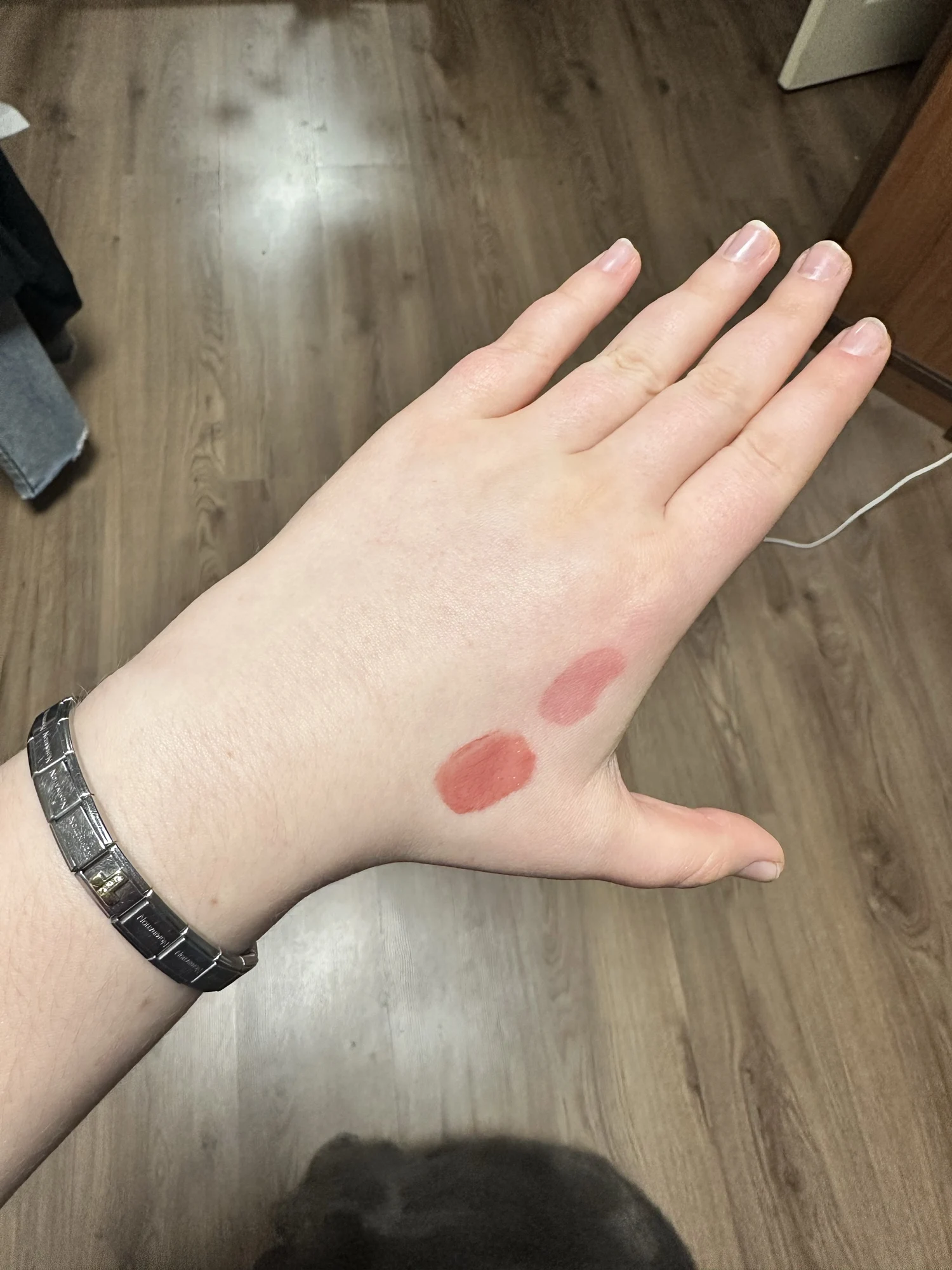 Very beautiful tint. Can be applied without a base, the color is rich. Small, it quickly ran out at first, but then I removed the cap and it turns out there is still some left. The shade in the photo is 02. It's such a pink-caramel with a brown and cherry tint (in reality it's more pinkish, in the photo it's too red for some reason), very cool and natural.