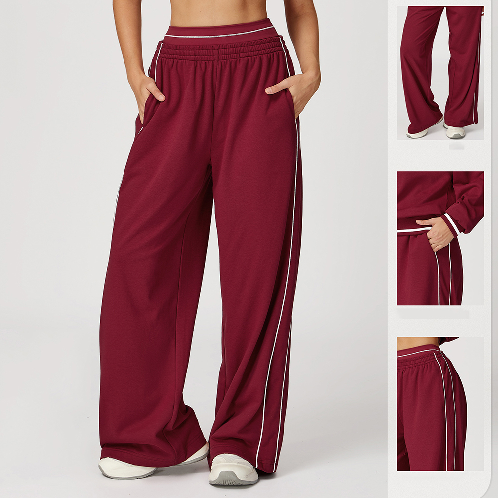 Color Blocking Sports Pants Outdoor Fitness Pants Sweatpants Women Yoga Pants Loose High Waisted Straight Leg Pants With Pockets