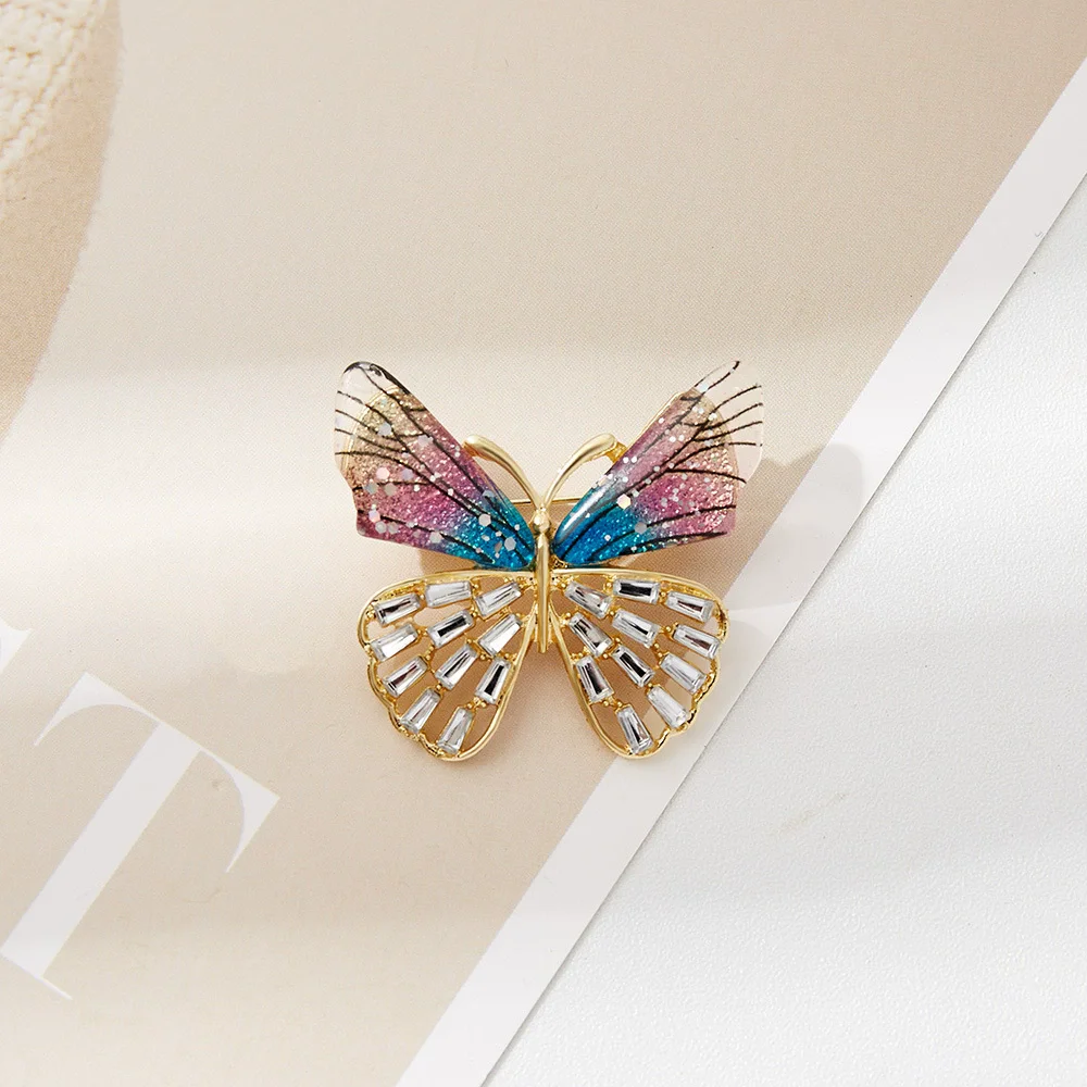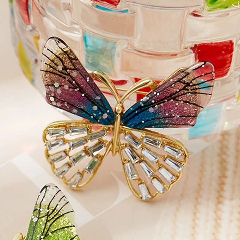 Colorful Acrylic Wings Butterfly Brooches for Women Party Cute Sweet Rhinestones Brooch Pins Fashion Jewelry Accessories Gifts