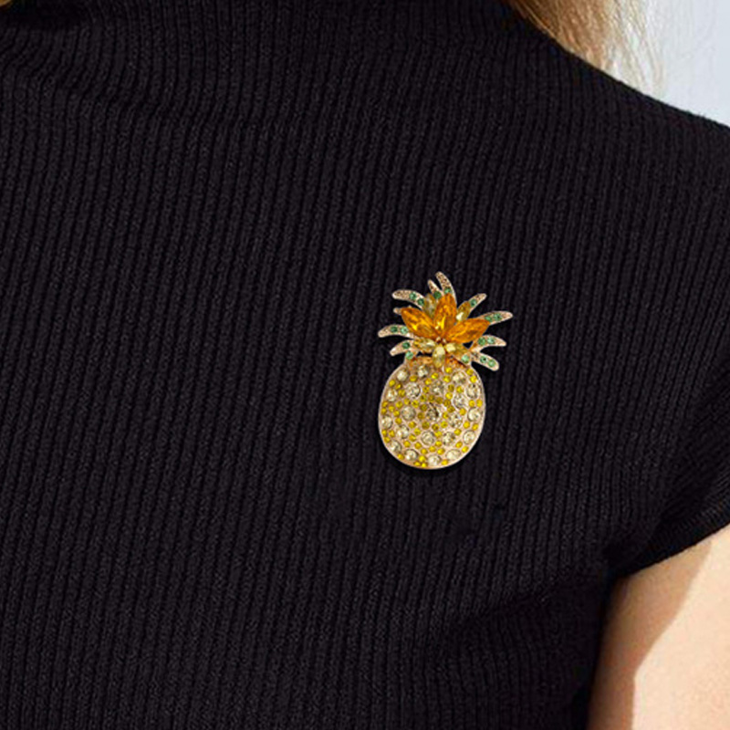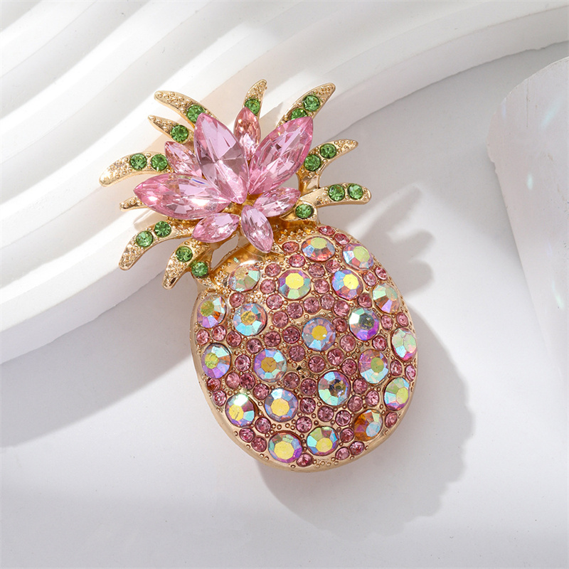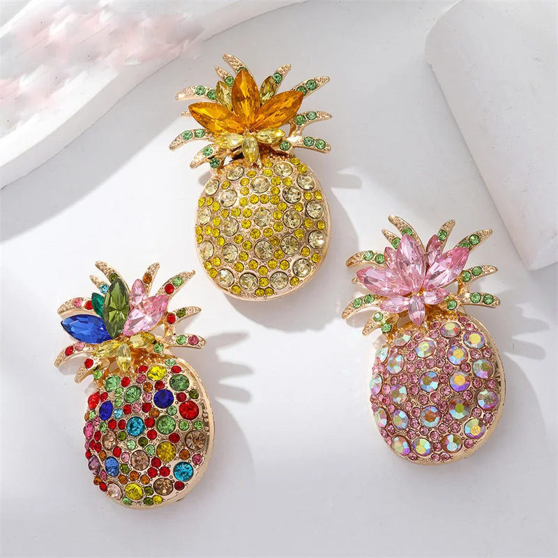 Colorful Rhinestone Pineapple Brooch for Women Men Exquisite Gorgeous Crystal Zircon Fruit Plant Flower Badges Party Jewelry