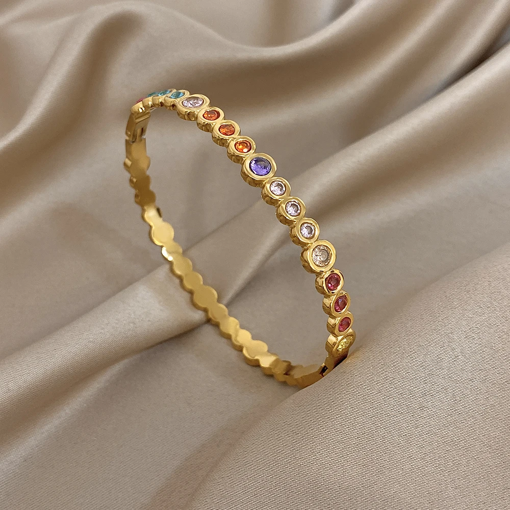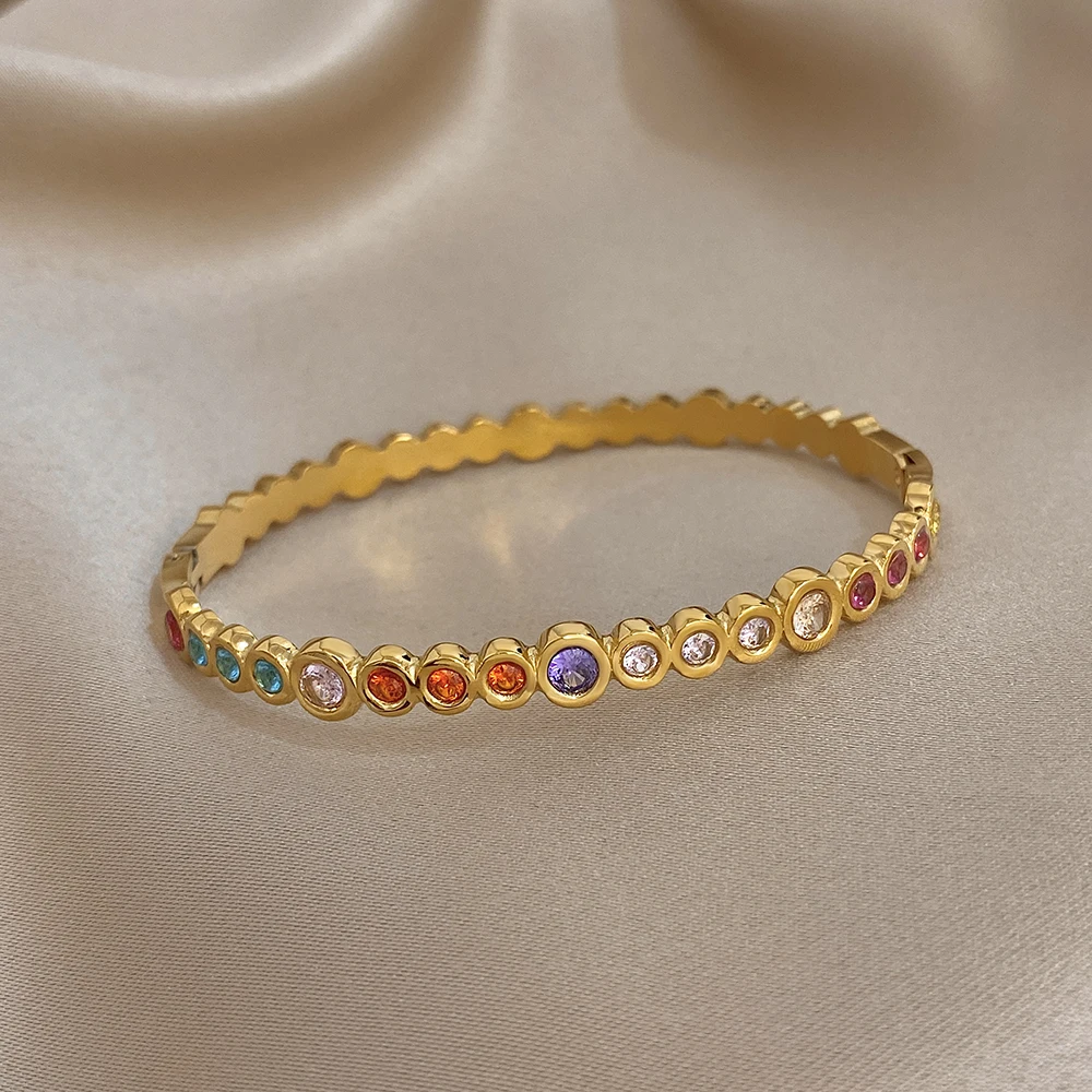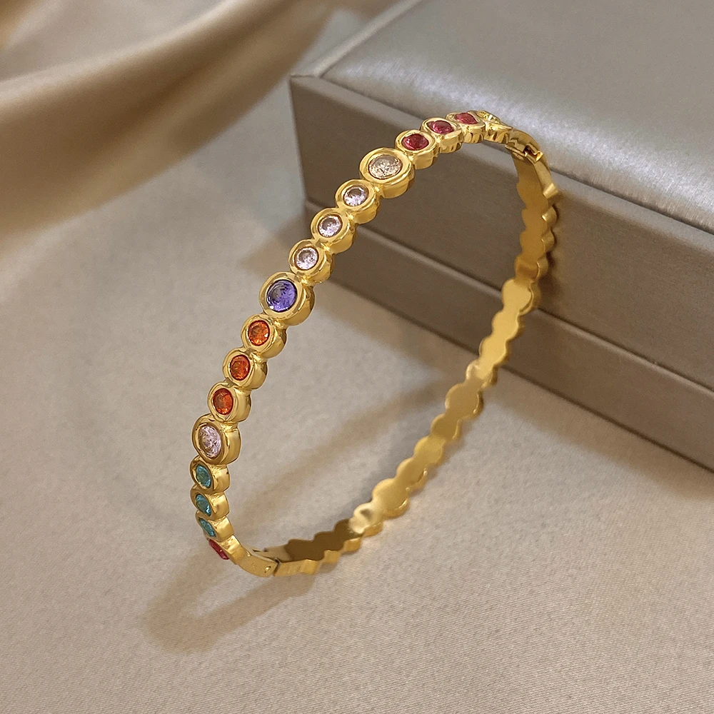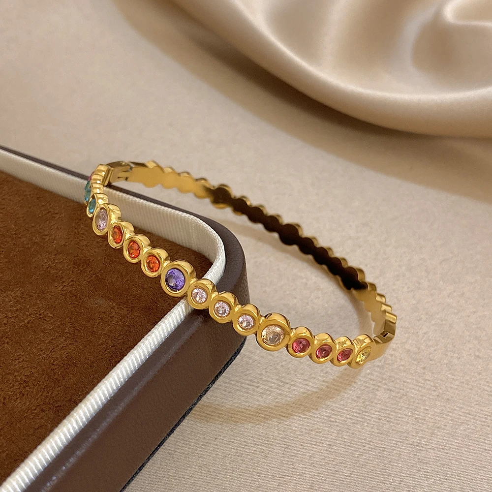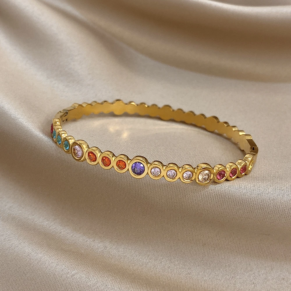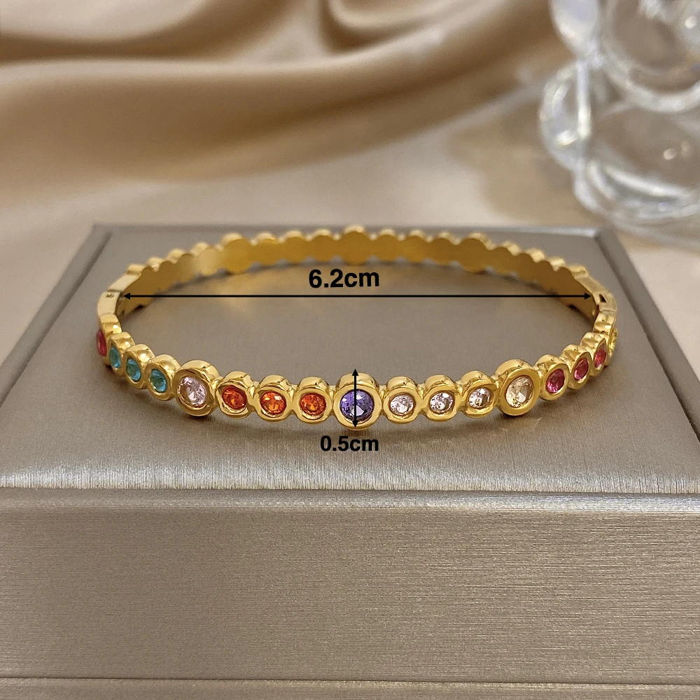 Colorful Zircon Round Beads Stainless Steel Bracelets for Women Trendy Gold Plated Stacked Cuff Bangle Waterproof Jewelry