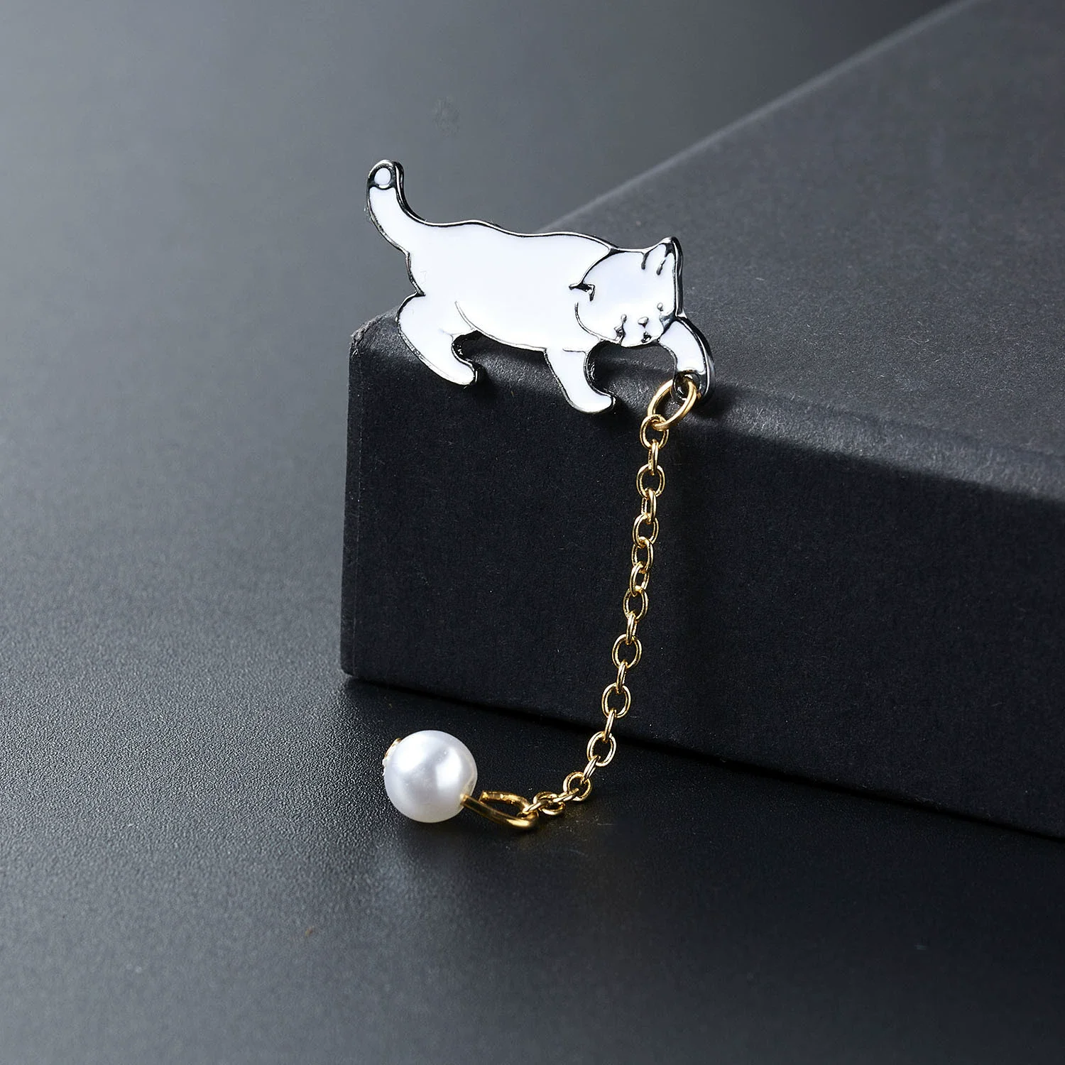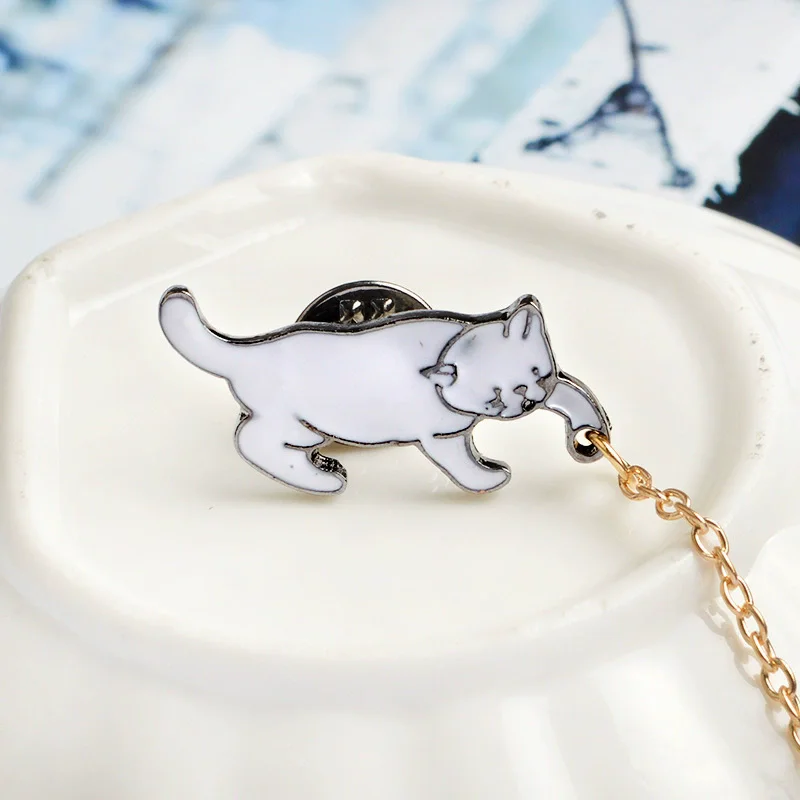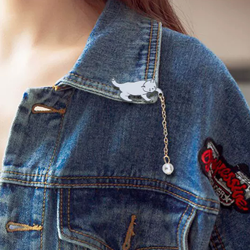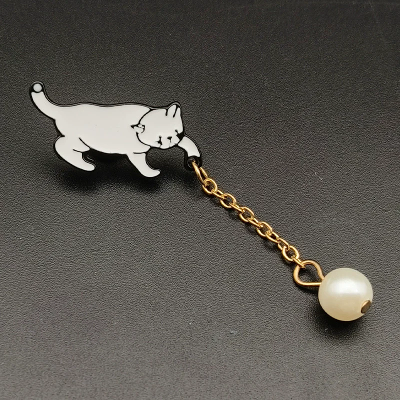Creative Cute Little White Pearl Cat Brooch Pins Chic Fashion Jewelry Bijoux Brooch Women Best Gift Wholesale Pins Accessories