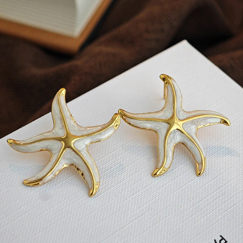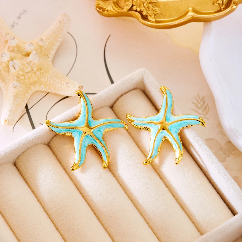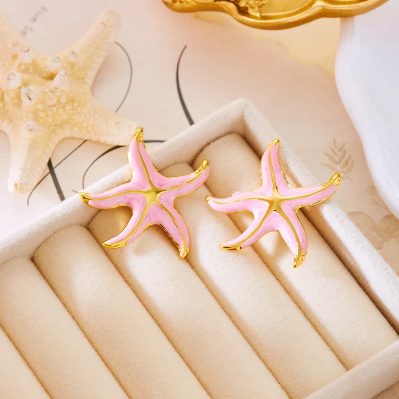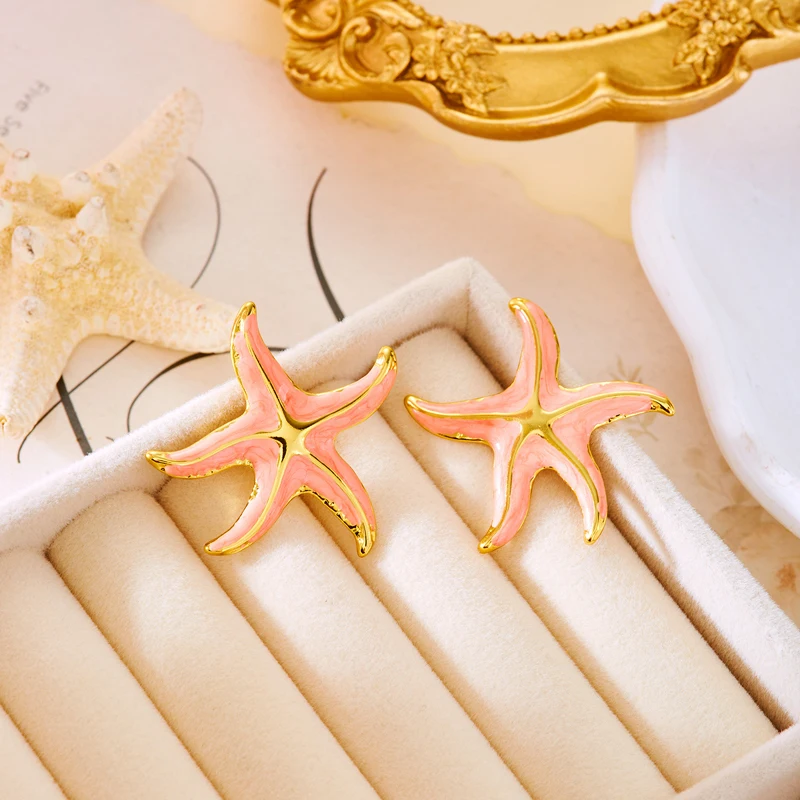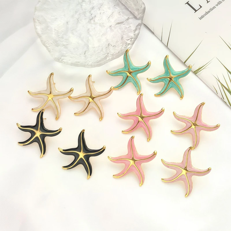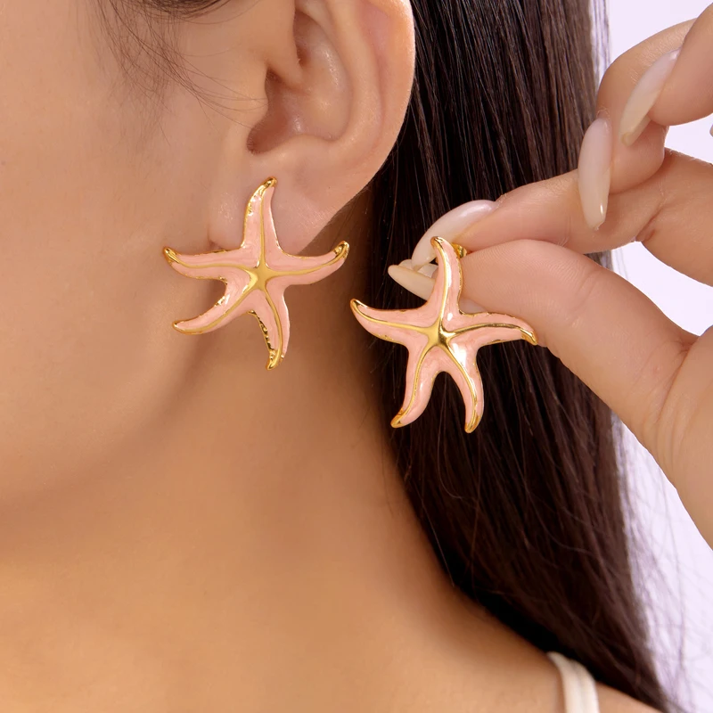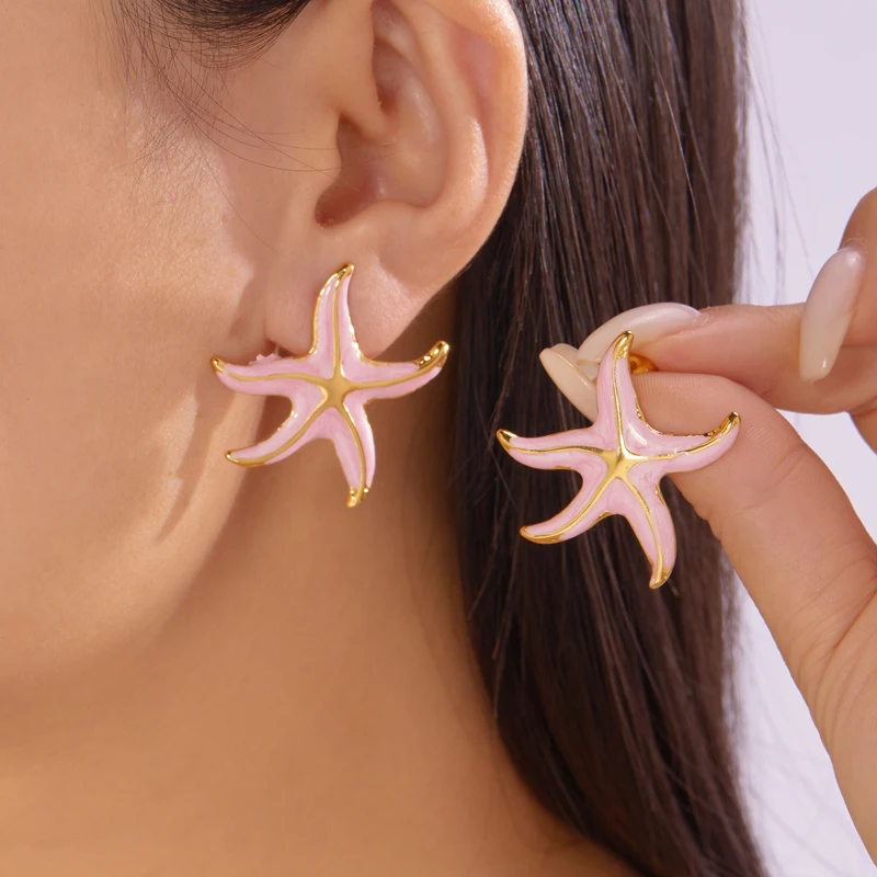 Creative Stainless Steel Starfish Stud Earrings for Women Fashion Colorful Pentagram Irregular Charms Earrings Aesthetic Jewelry