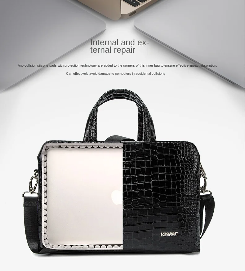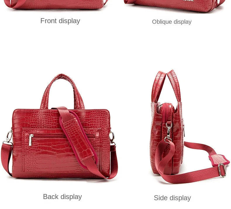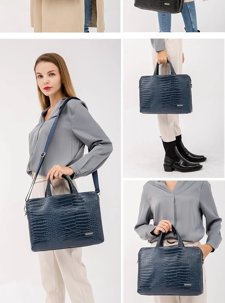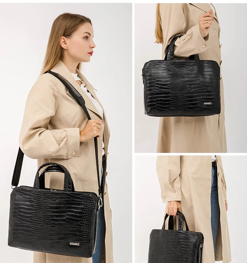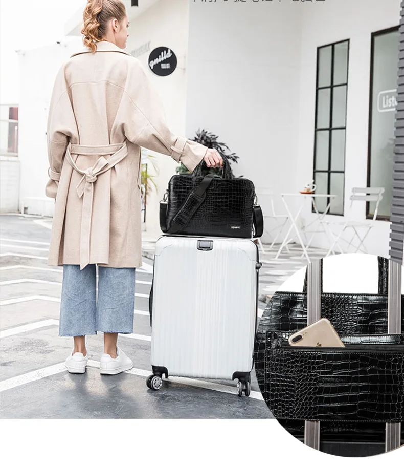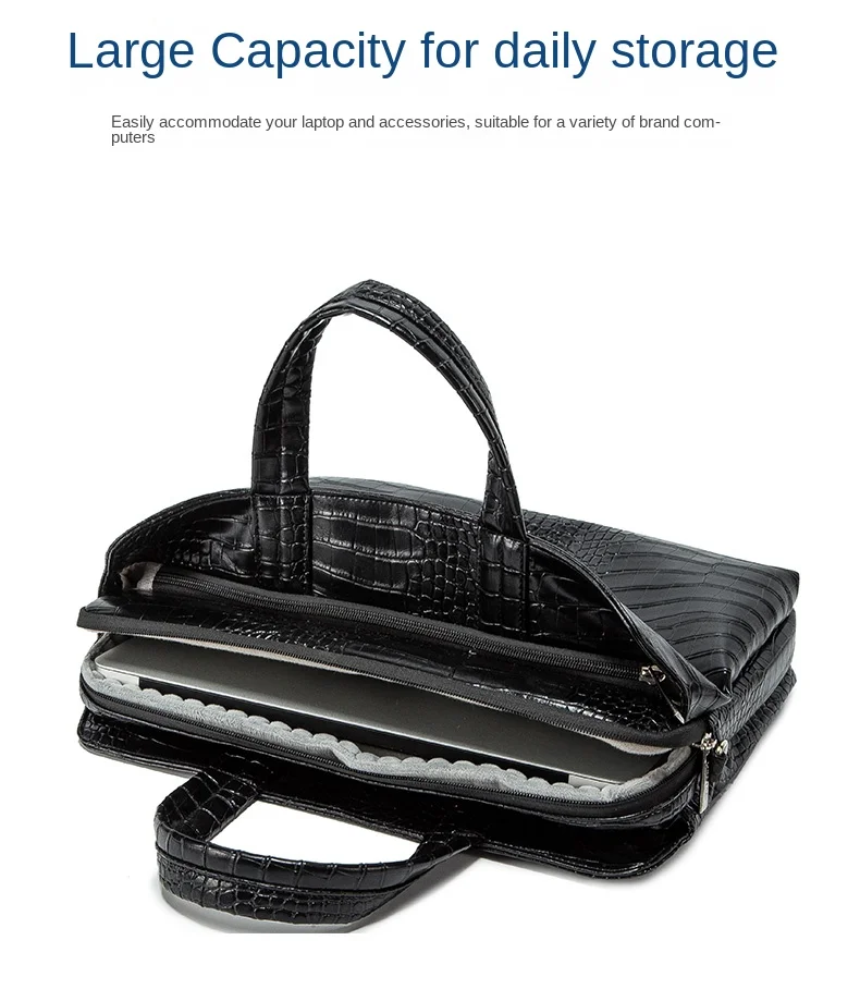 Crocodile Pattern Leather Women Handbags Lady Large Capacity 15.6 Inch Laptop Bag Business Briefcase Shoulder Bags 2023 New