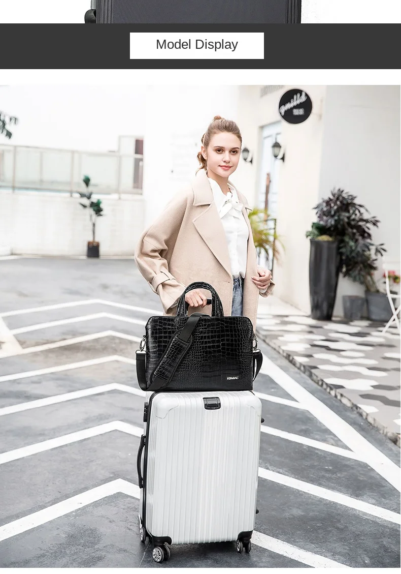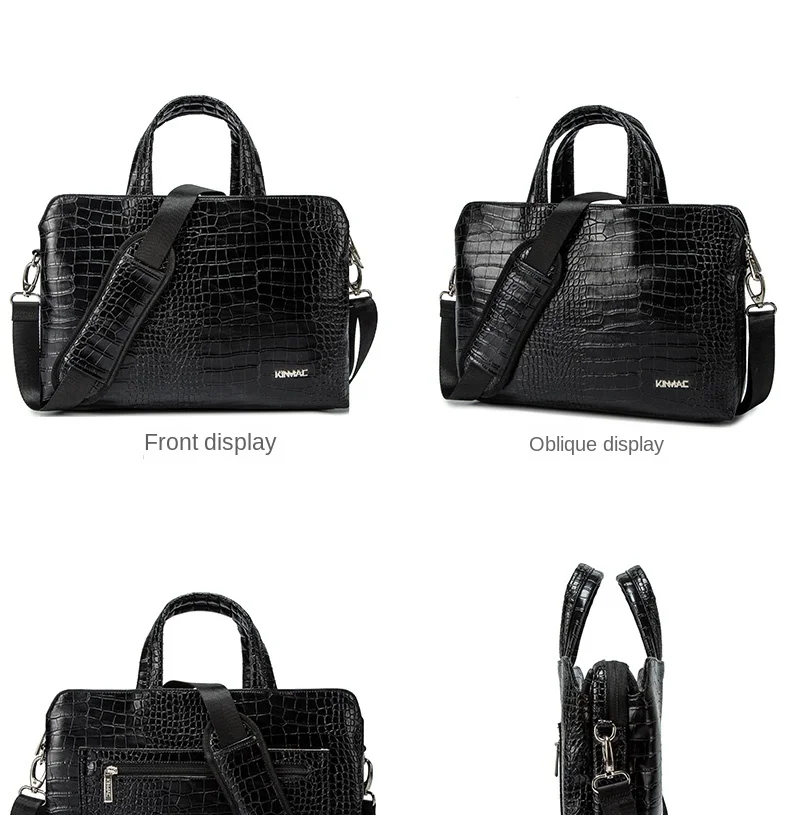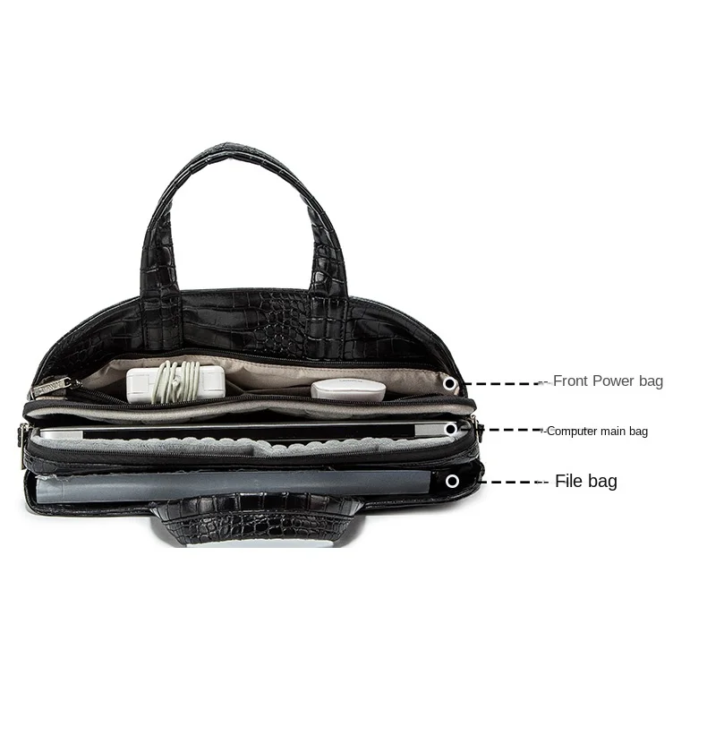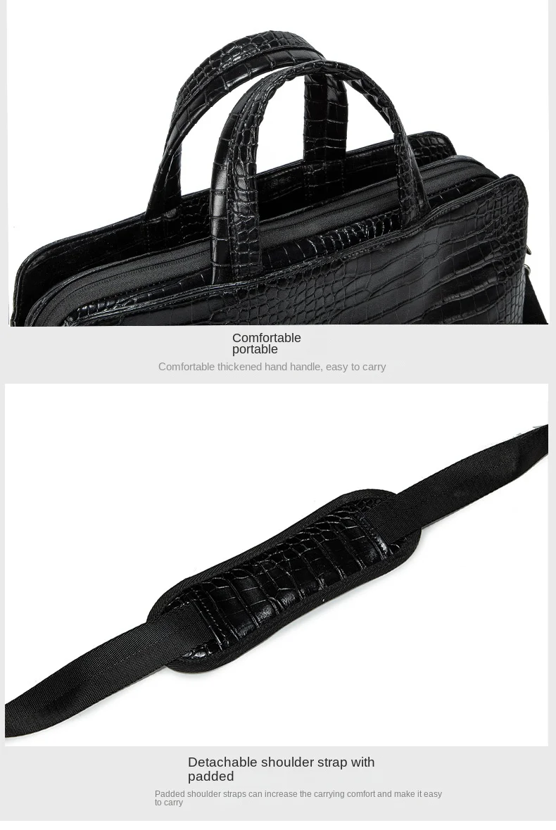 Genuine Leather Men Women Handbags 15.6″ Laptop Bag Business Briefcase Lady Crocodile Pattern Portable Shoulder Messenger Bags