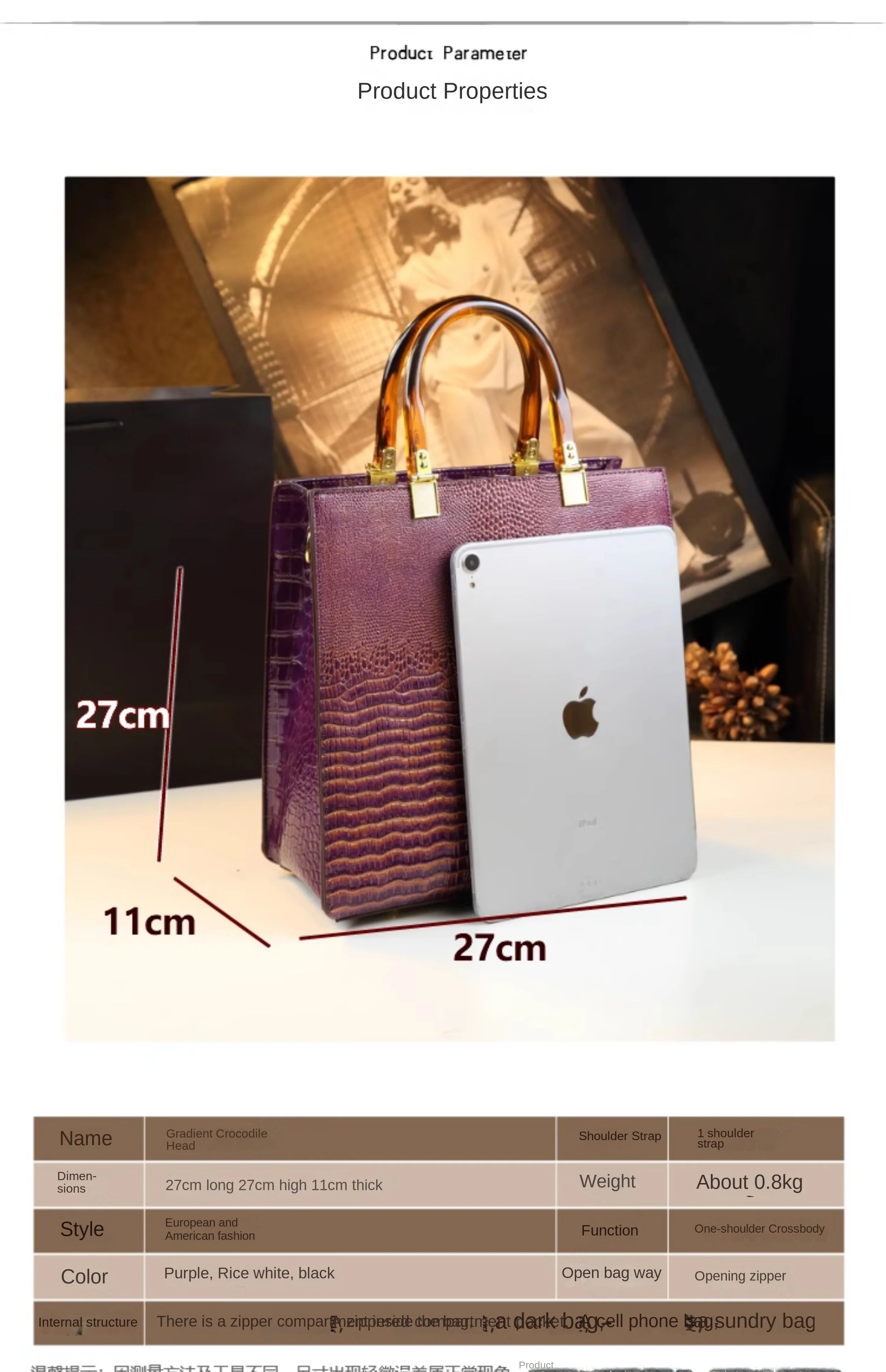 Crocodile Print Leather Women Handbags Large-capacity Luxury Tote Bag New Elegant Single-shoulder Messenger Bags 2025 New
