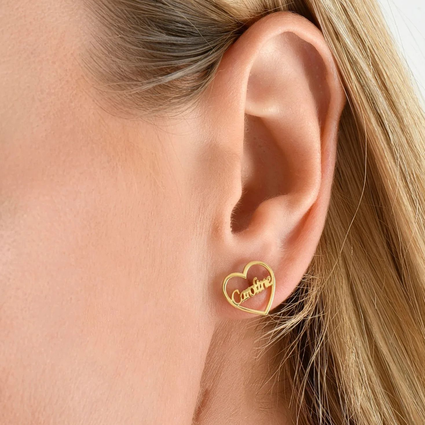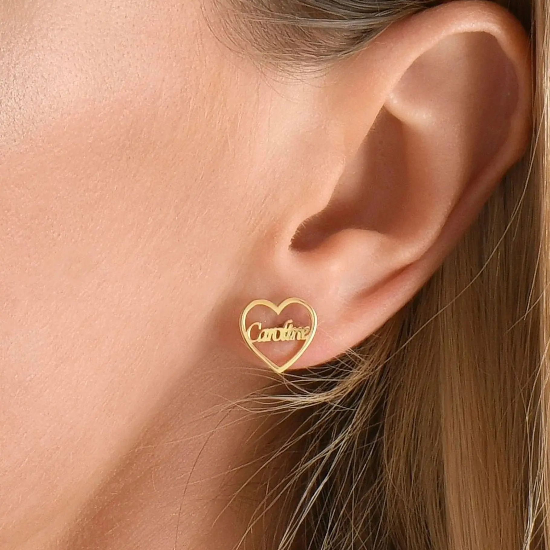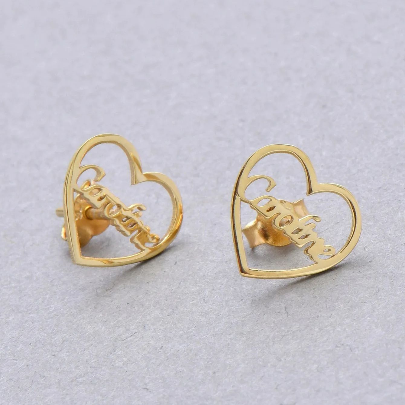 Custom Heart Name Earrings For Women Gold Color Stainless Steel Heart Name Stud Earring Wedding Aesthetic Jewelry Gift