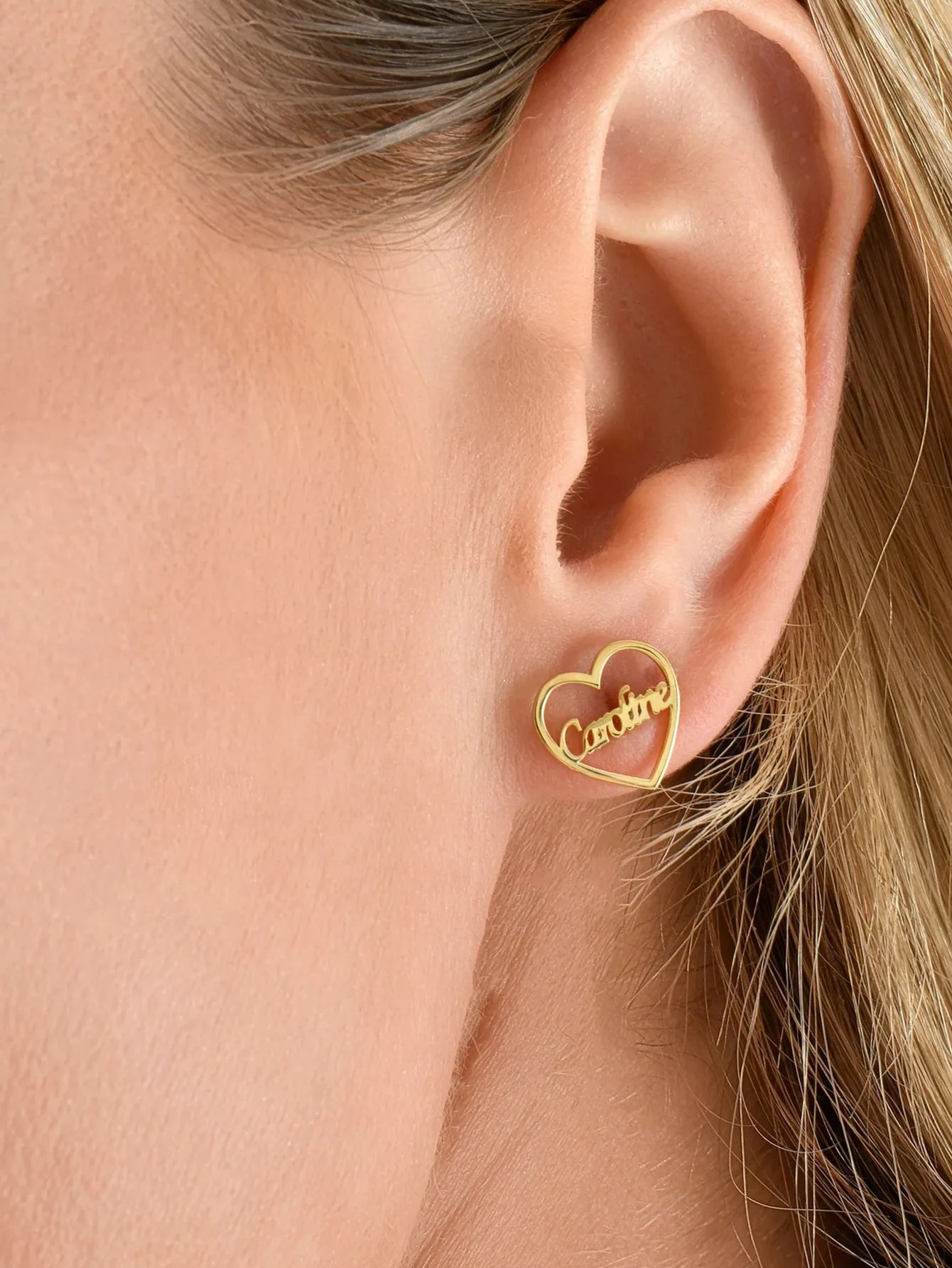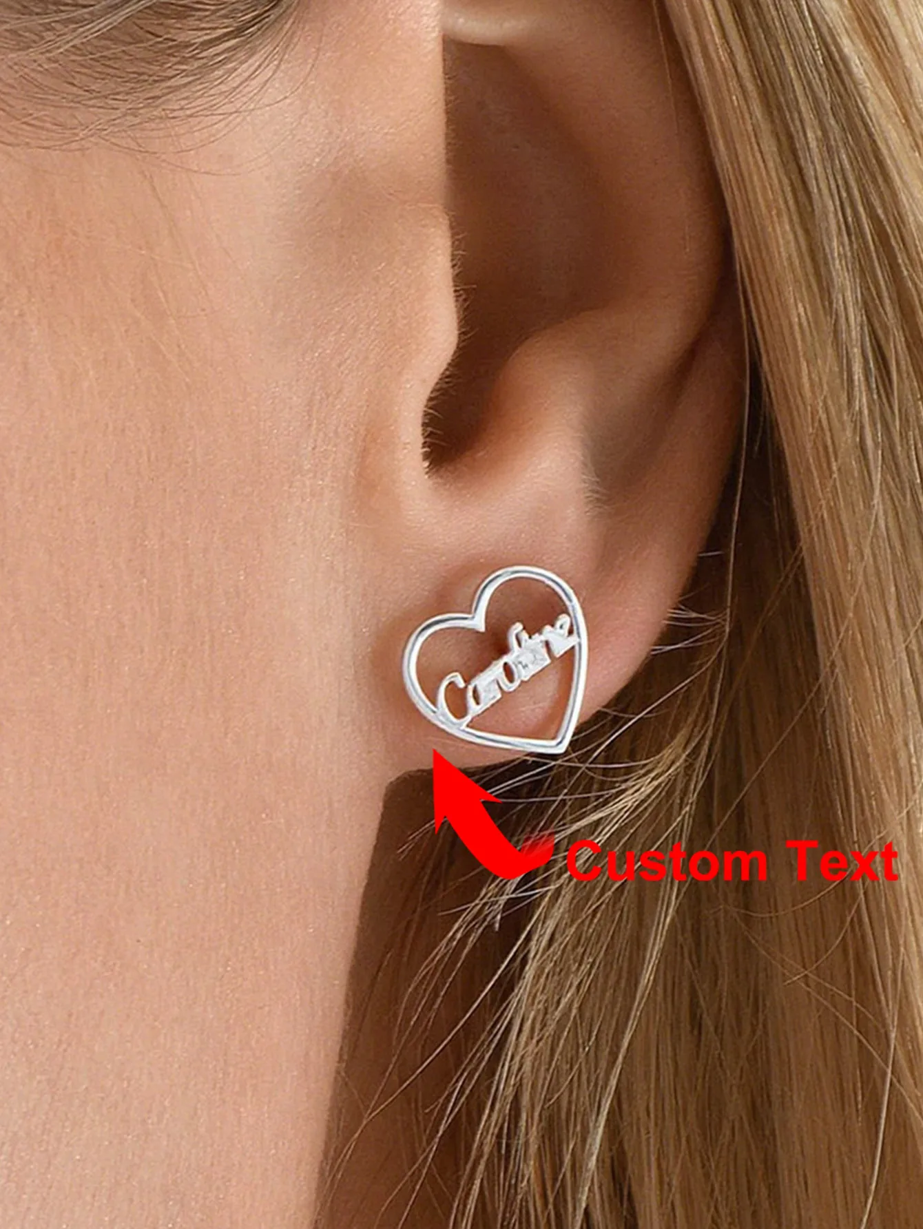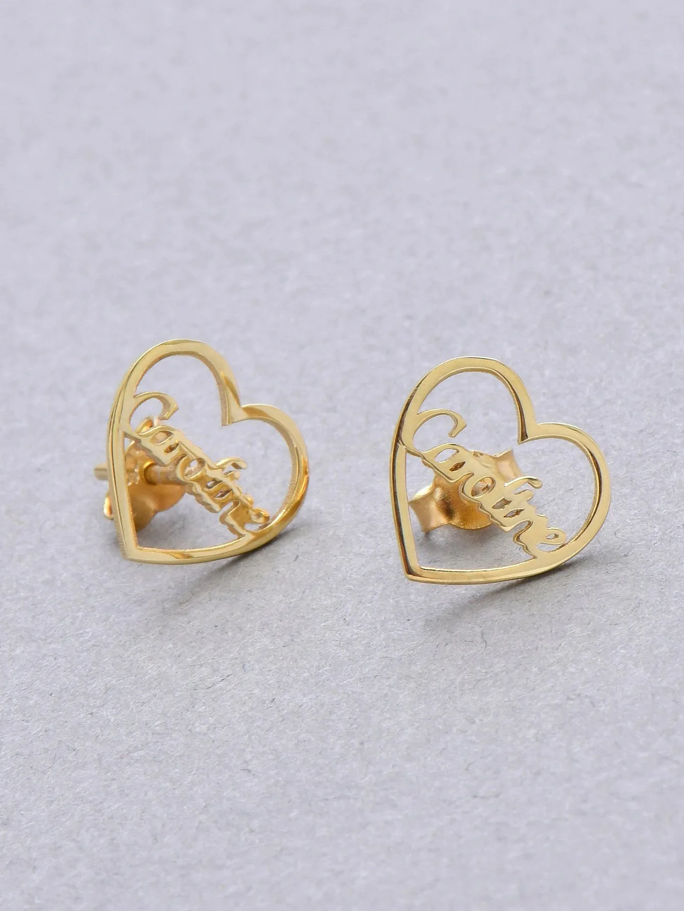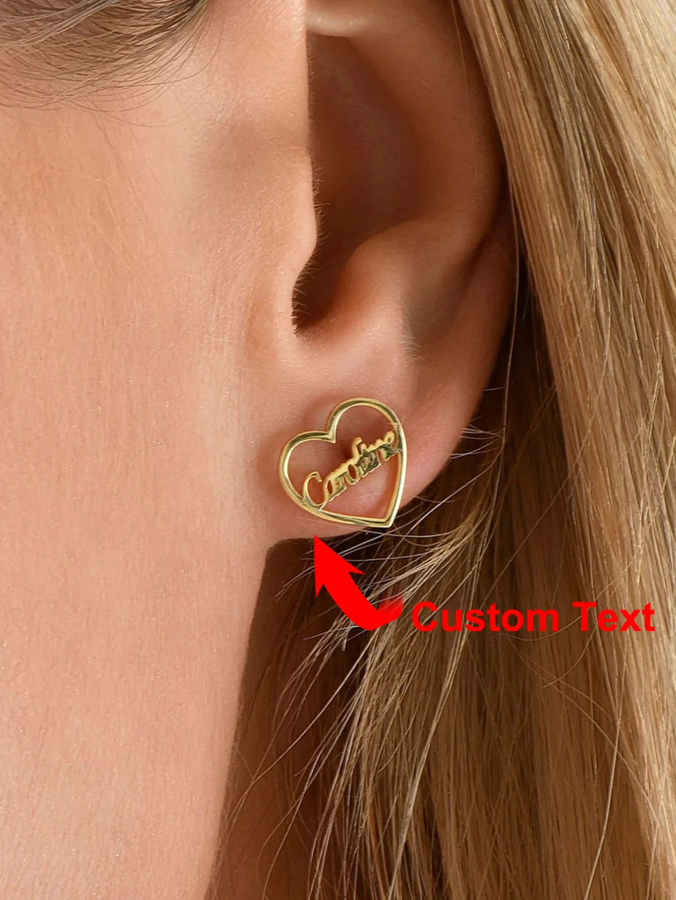 Custom Heart Name Earrings For Women Gold Color Stainless Steel Heart Name Stud Earring Wedding Aesthetic Jewelry Gift