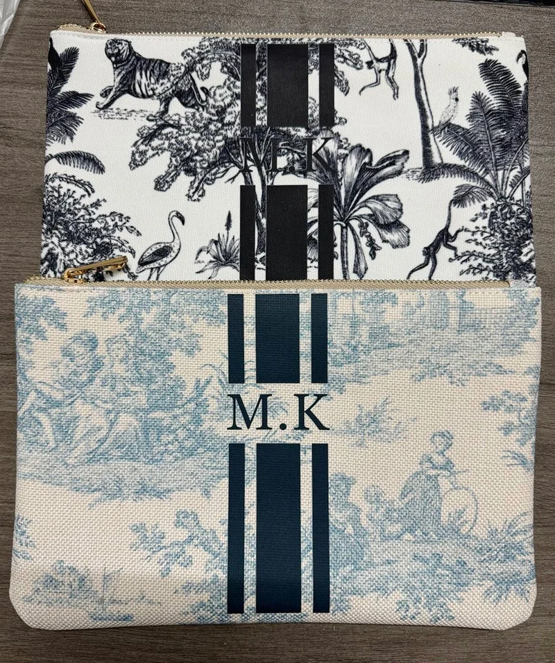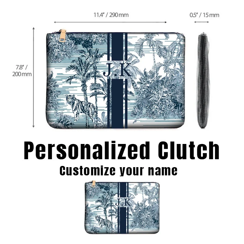 Customizable Letter Women’s Clutch Classical Portable Vertical Striped Design Cosmetic Bag Purse Weekend Vacation Bag wallet