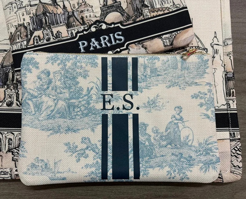 Customizable Letter Women’s Clutch Classical Portable Vertical Striped Design Cosmetic Bag Exquisite Weekend Vacation Bag