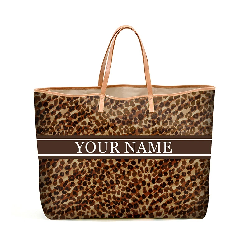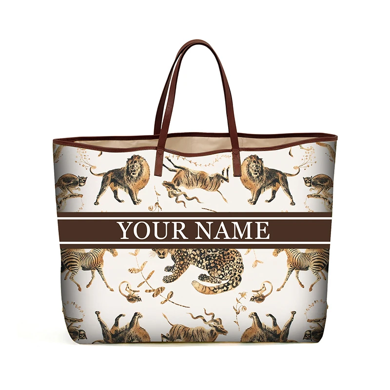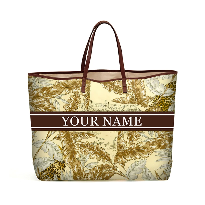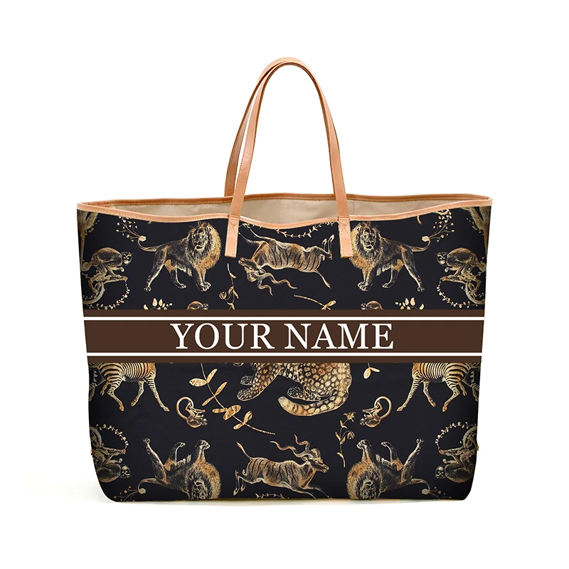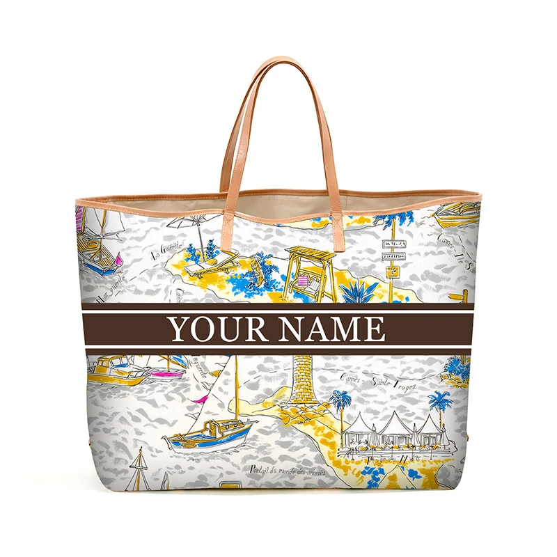 Customized Letter Design With Horizontal Stripe Personalized Printing Handbag Large Capacity Book Tote Women Commuter Travel Bag