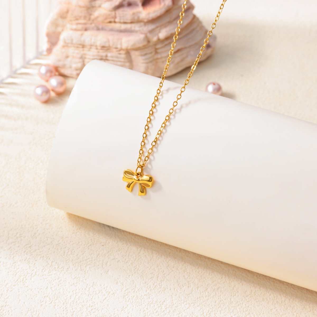 Cute Bowknot Pendant Necklace for Women Girls 18K Gold Plated Stainless Steel Bowknot Necklace Jewelry Trendy Birthday Gifts