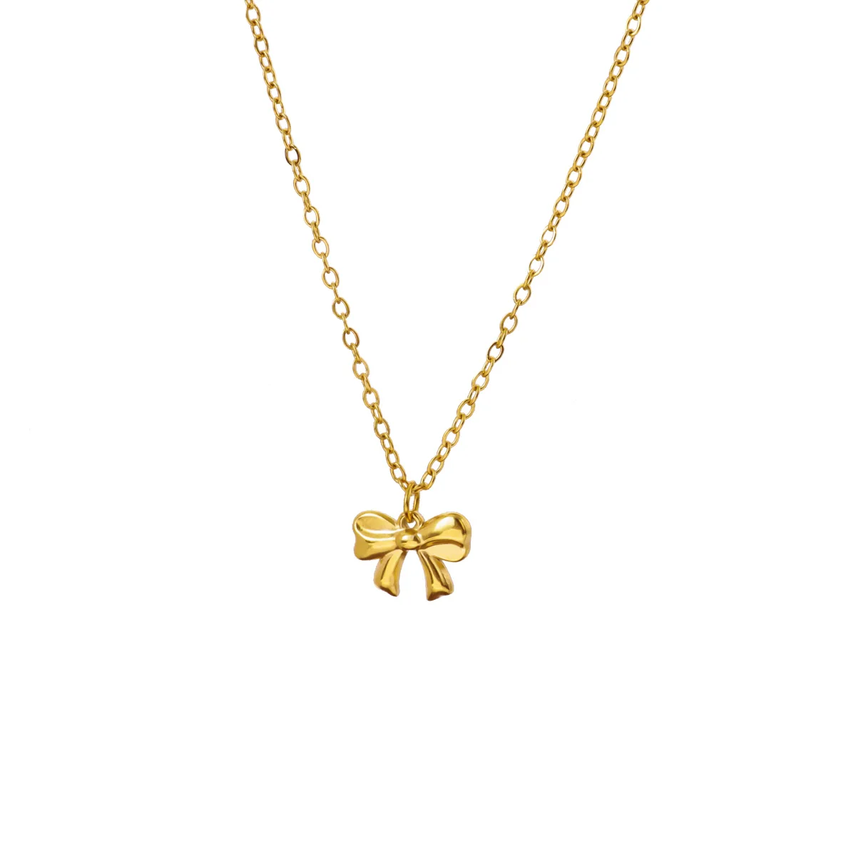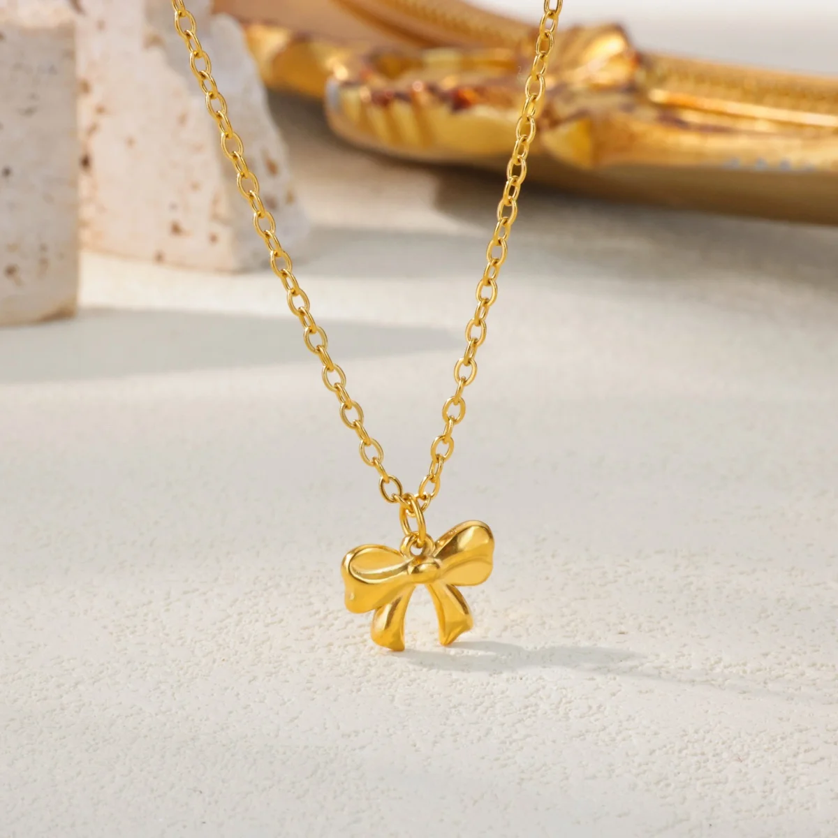 Cute Bowknot Pendant Necklace for Women Girls 18K Gold Plated Stainless Steel Bowknot Necklace Jewelry Trendy Birthday Gifts