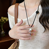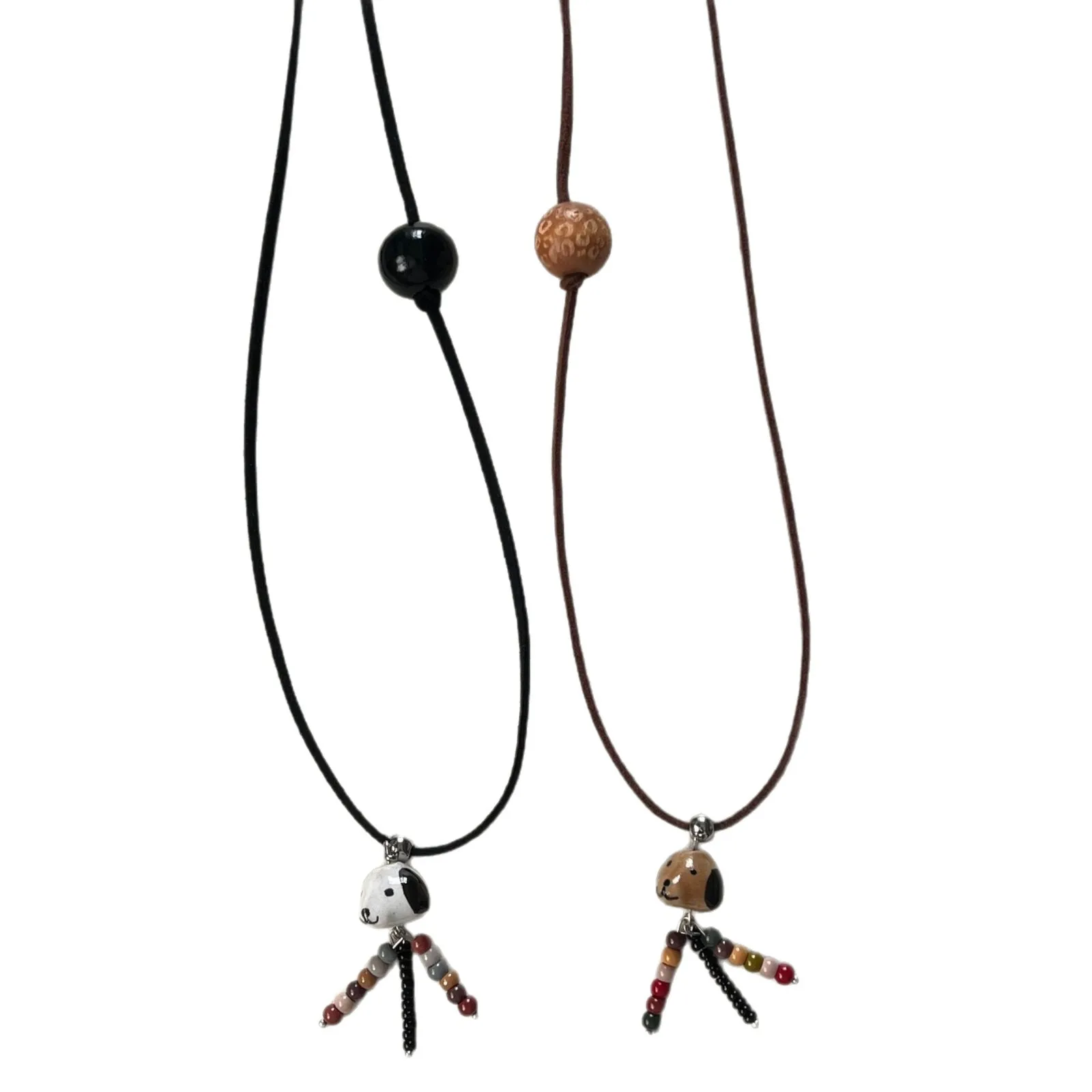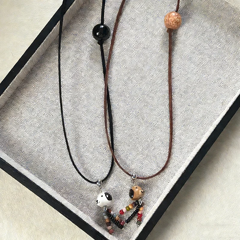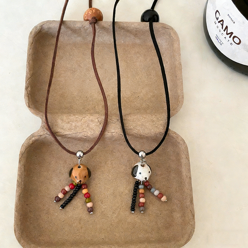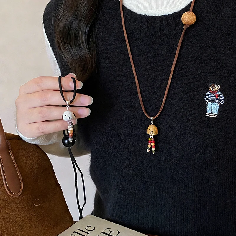 Cute Ceramics Puppy Tassel Pendant Necklaces for Women Fashion Charm Jewelry Long Sweater Chain Hanging Neck Daily Accessories