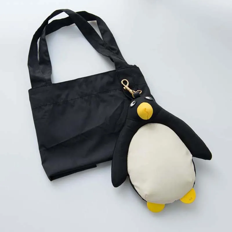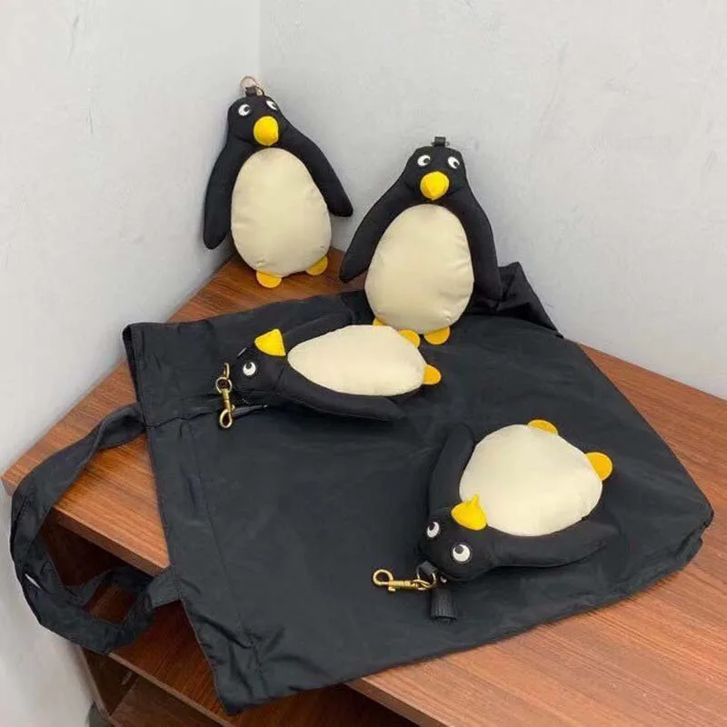 Cute Penguin Nylon Fabric Pendant Women Travel Large Capacity Folding Shopping Bags Portable Storage Shoulder Bag Lady’s handbag