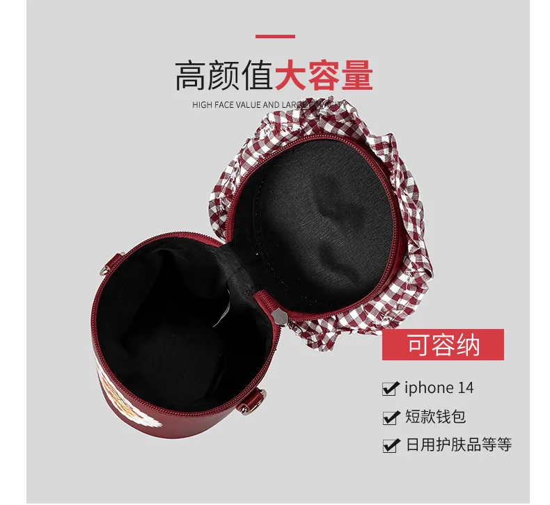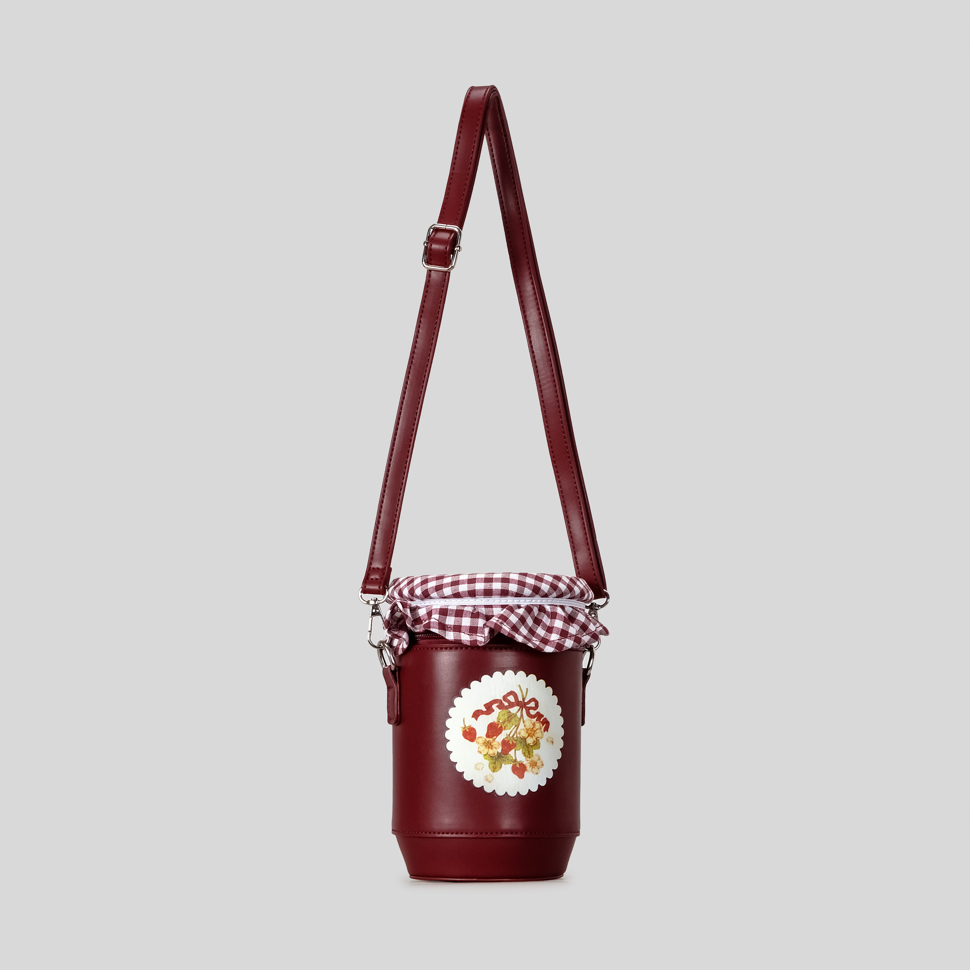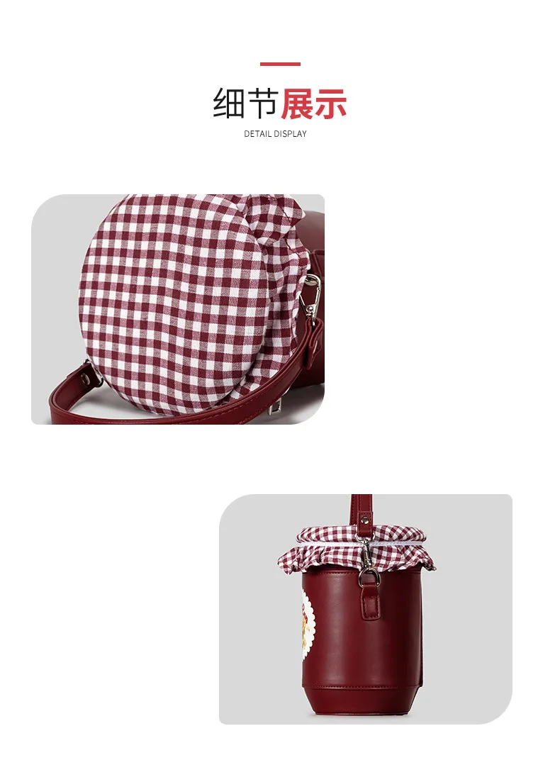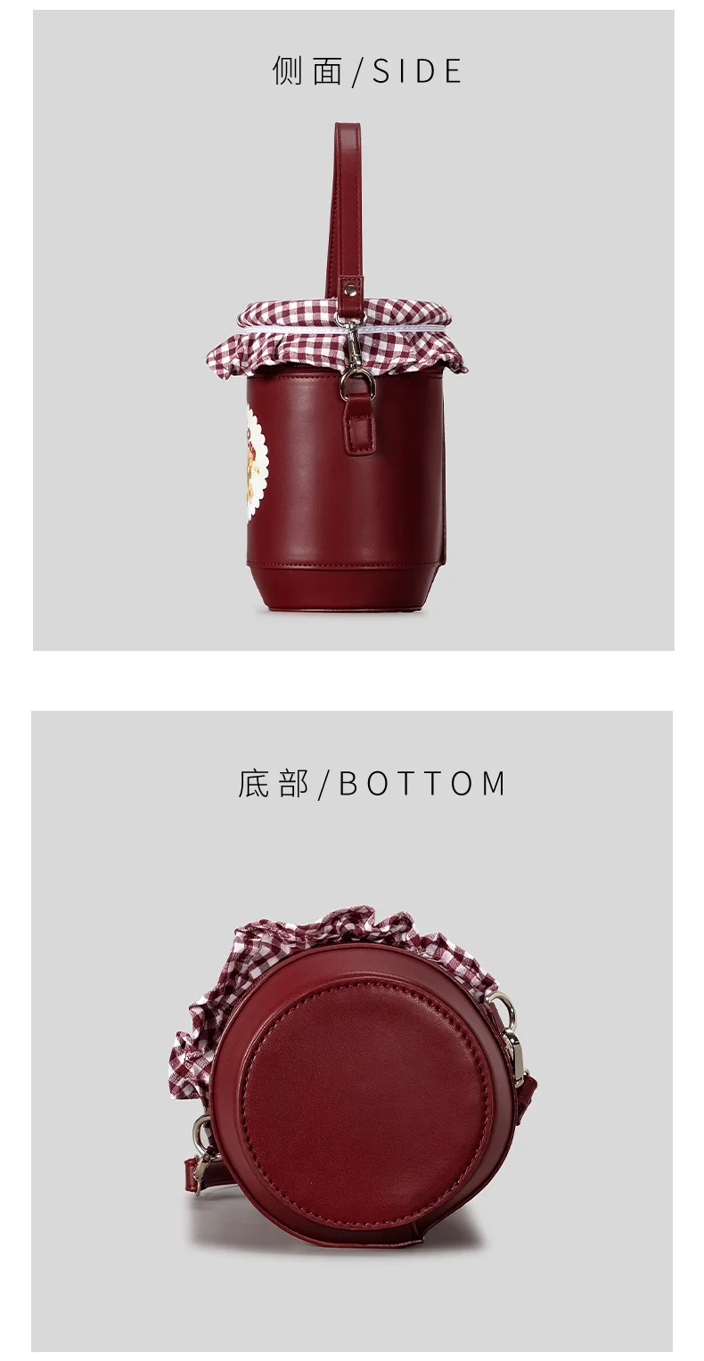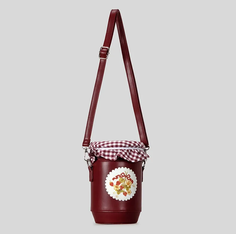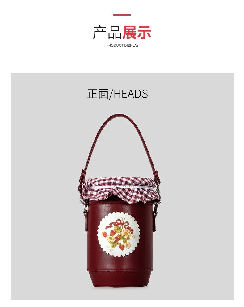 Cute Strawberry Jam Letter Canister Color Bucket Handbag Single Shoulder Slant Crossbody Bag Creative pu leather Women Bags