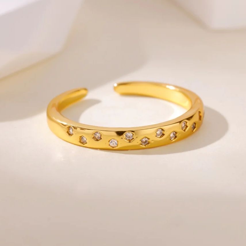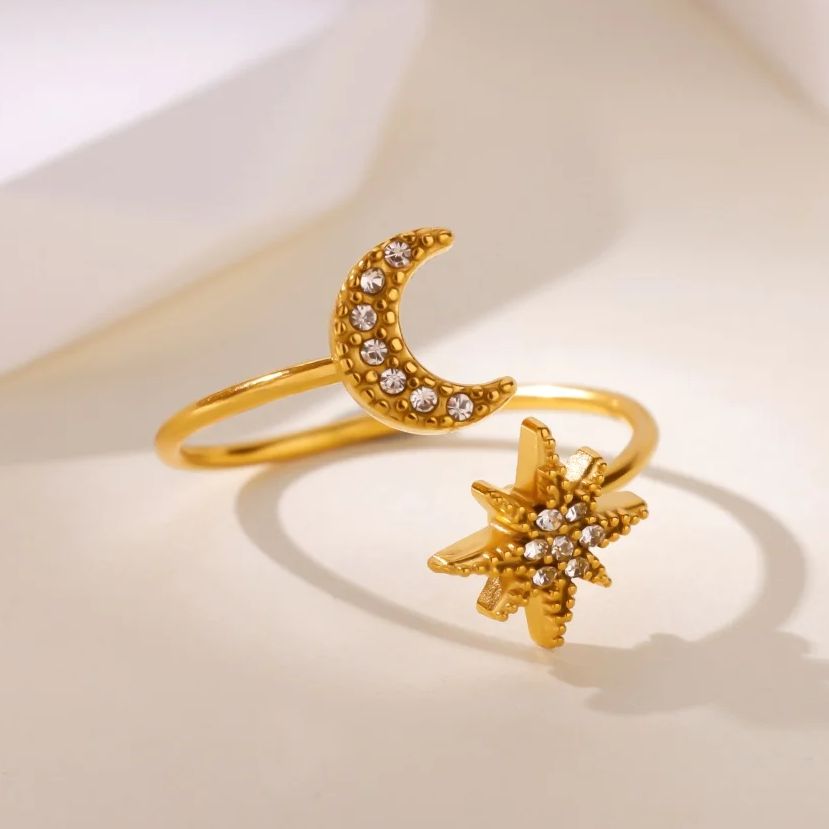Dainty Zircon Stars Crescent Moon Rings for Women Stainless Steel Gold Color Geometric Wedding Ring Aesthetic Wedding Jewelry