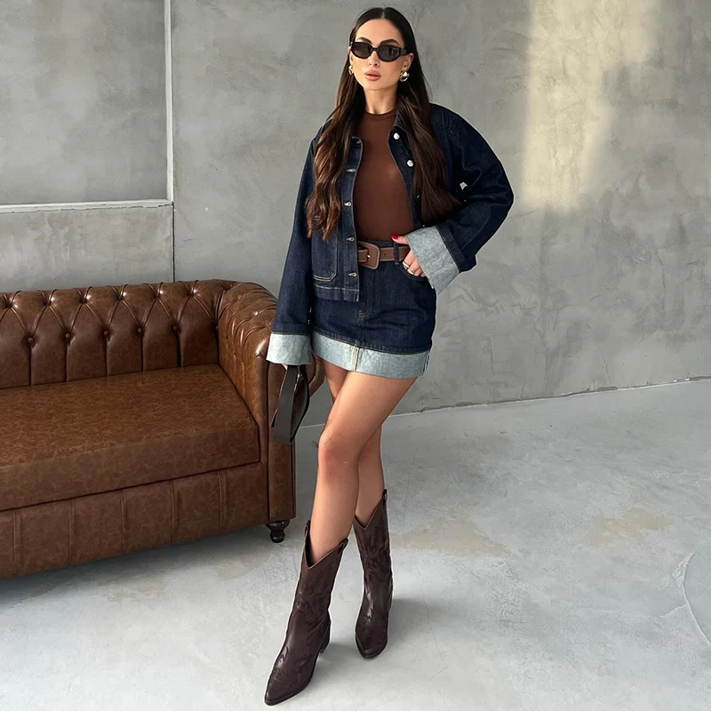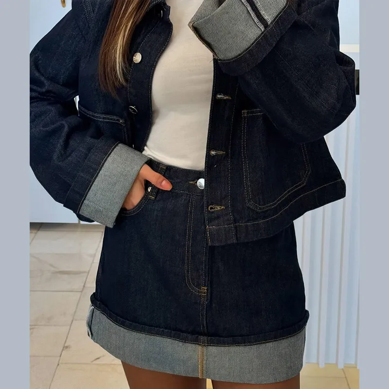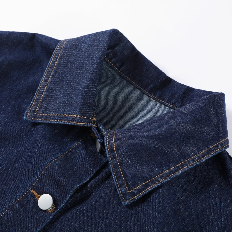 The suit is excellent, I recommend purchasing it. The fabric is denim canvas. I wear size L.