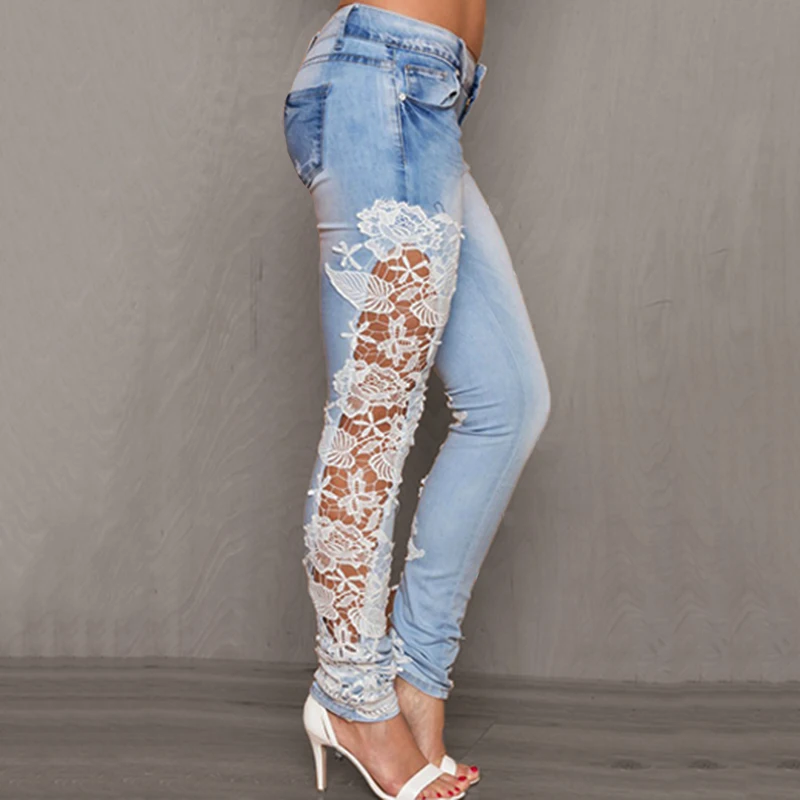 Denim Women’s Jeans Lace Hollow Out Appliques Transports Match Pencil Floral Fashion Pants Jeans Push Up Leggings Y2k Clothes
