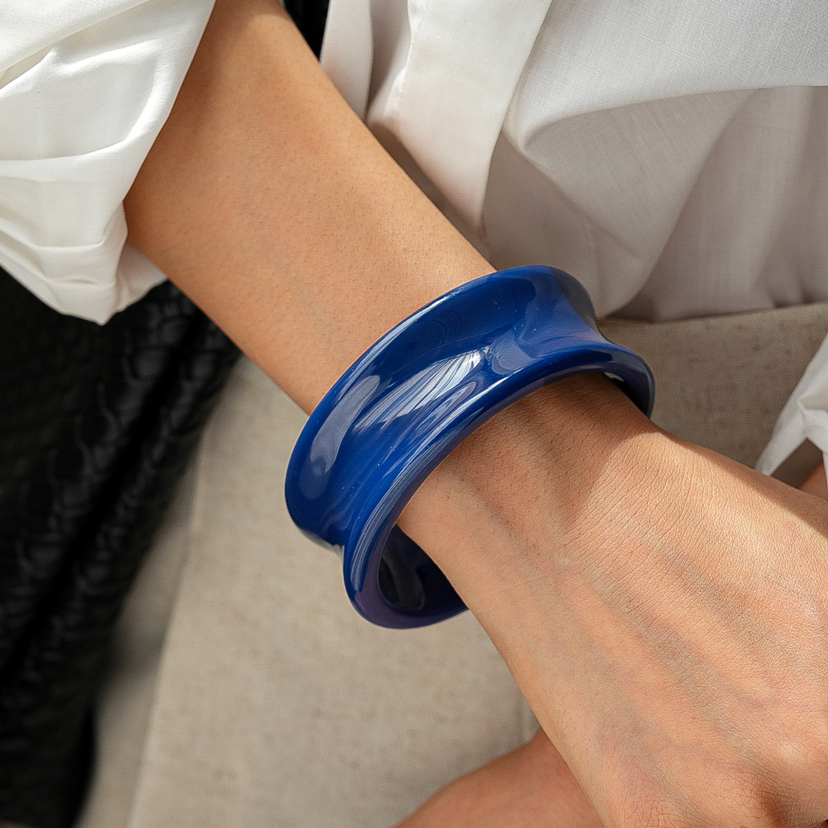 DIEZI 4 Style Fashion Geometric Blue Acrylic Resin Bangles Exaggeration Punk Cuff Wide Bangles Bracelets For Women Men Jewelry
