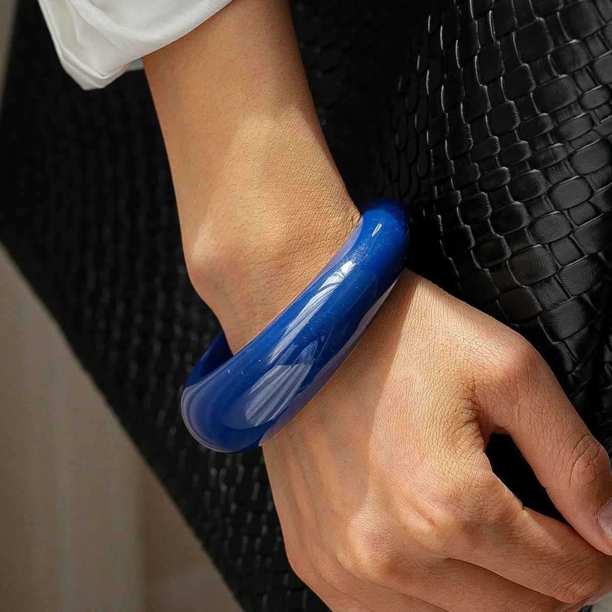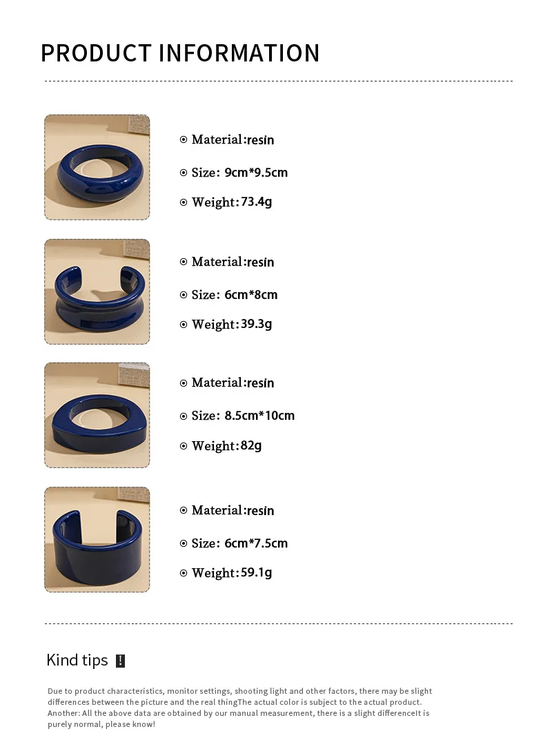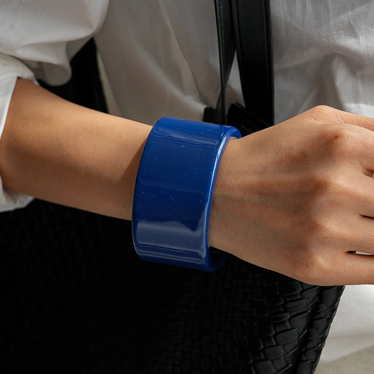 DIEZI 4 Style Fashion Geometric Blue Acrylic Resin Bangles Exaggeration Punk Cuff Wide Bangles Bracelets For Women Men Jewelry