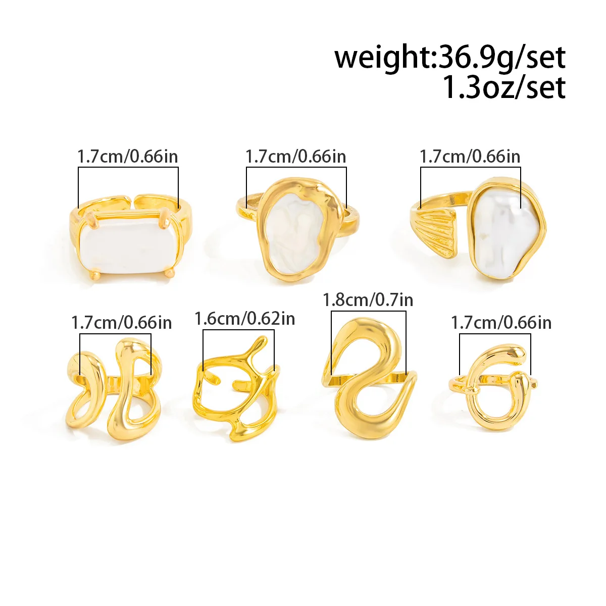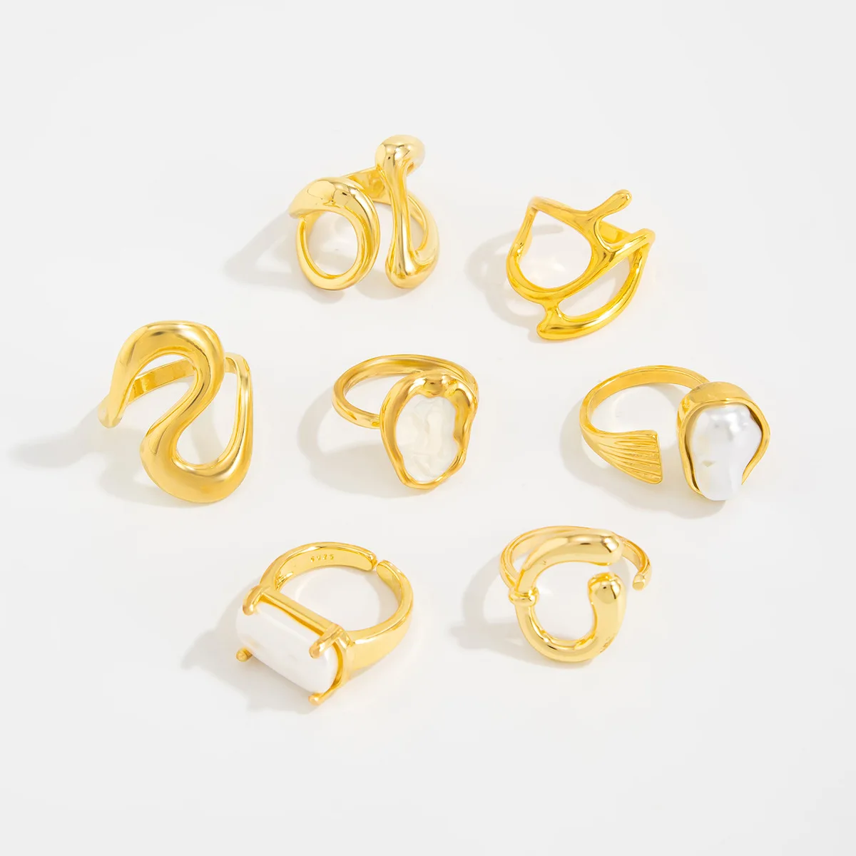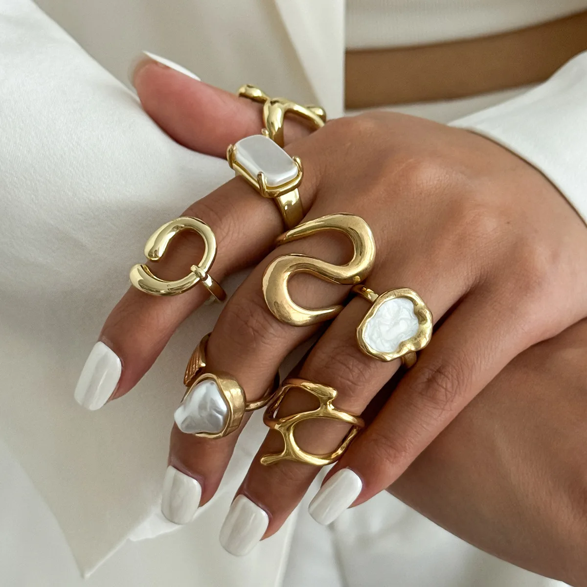 DIEZI 7pcs/set Hip Hop Finger Rings For Women Girls Men Punk Gold Color Baroque Imitation Pearl Knuckle Joint Ring Jewelry