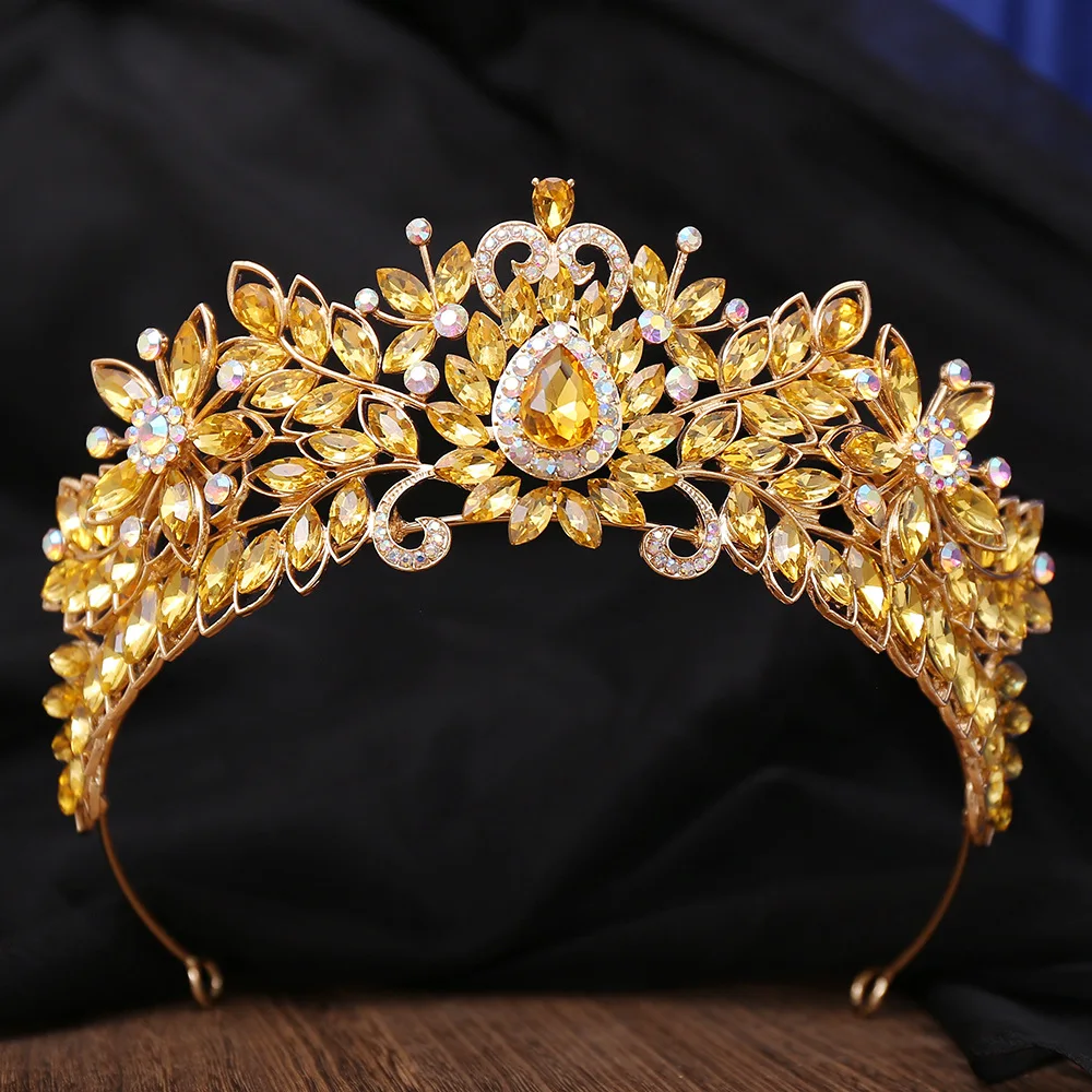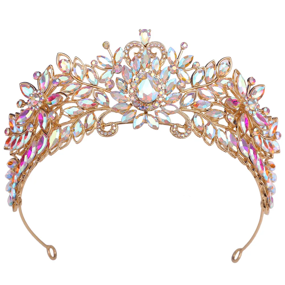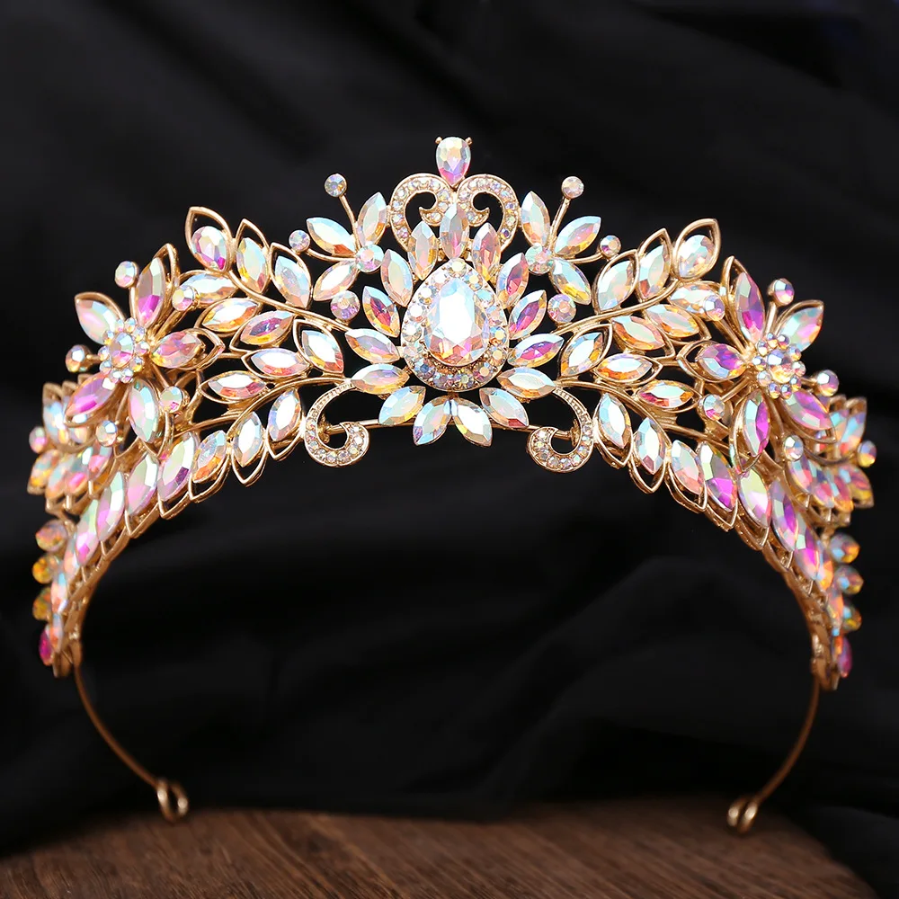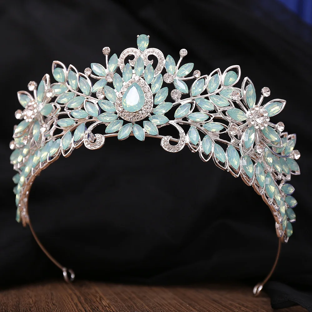 DIEZI 8 Colors Baroque Crystal Opal Tiara Crown Women Girls Party Fashion Luxury Elegant Rhinestone Dress Crown Hair Accessories