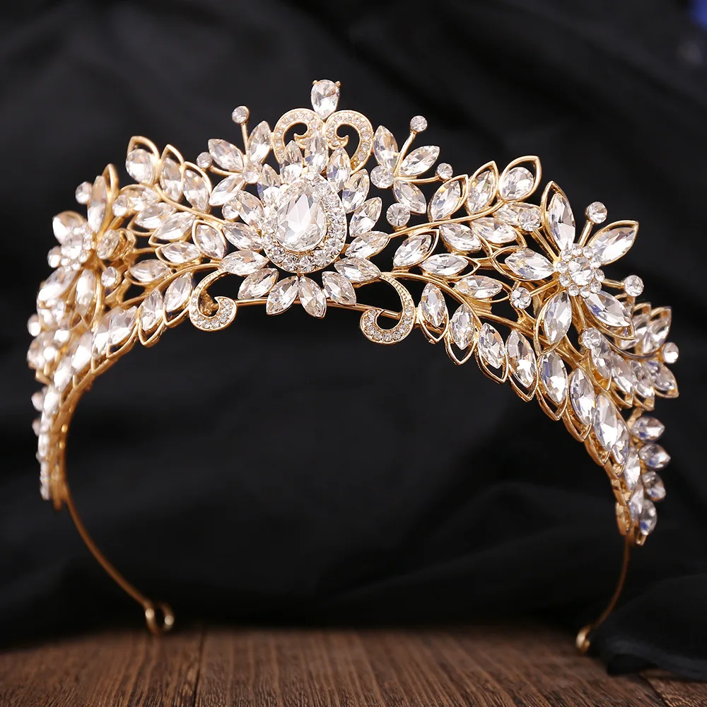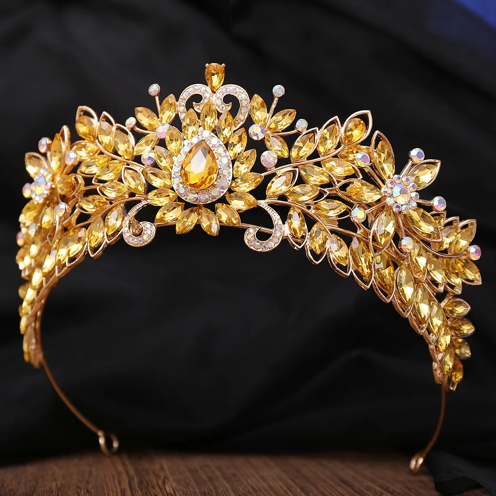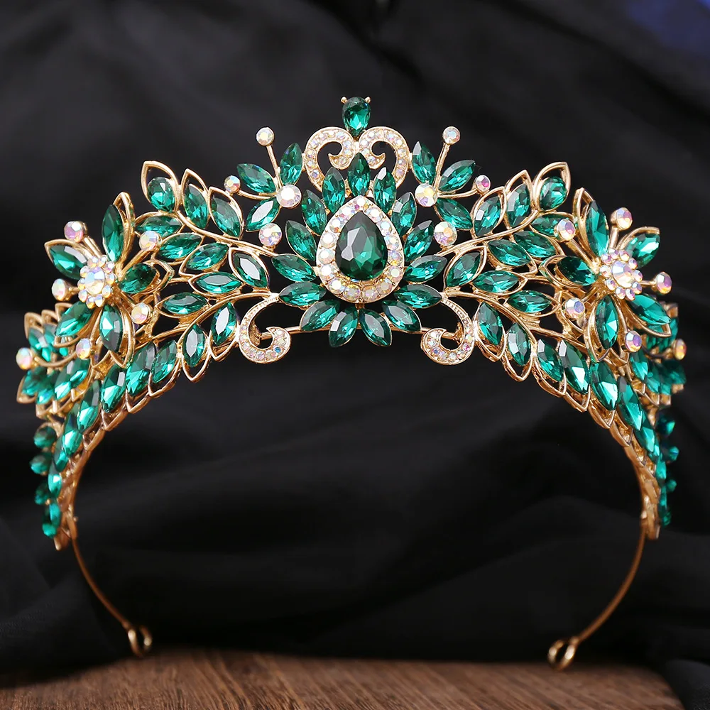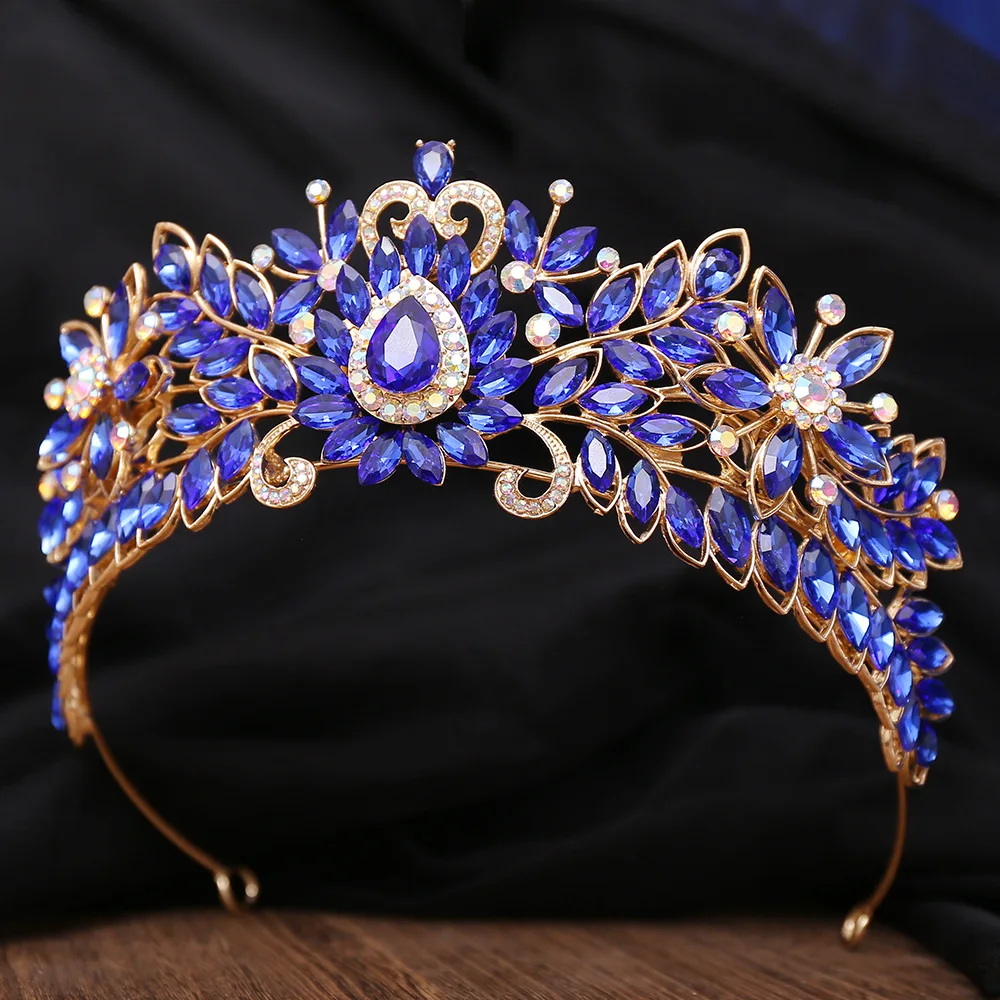 DIEZI 8 Colors Baroque Crystal Opal Tiara Crown Women Girls Party Fashion Luxury Elegant Rhinestone Dress Crown Hair Accessories