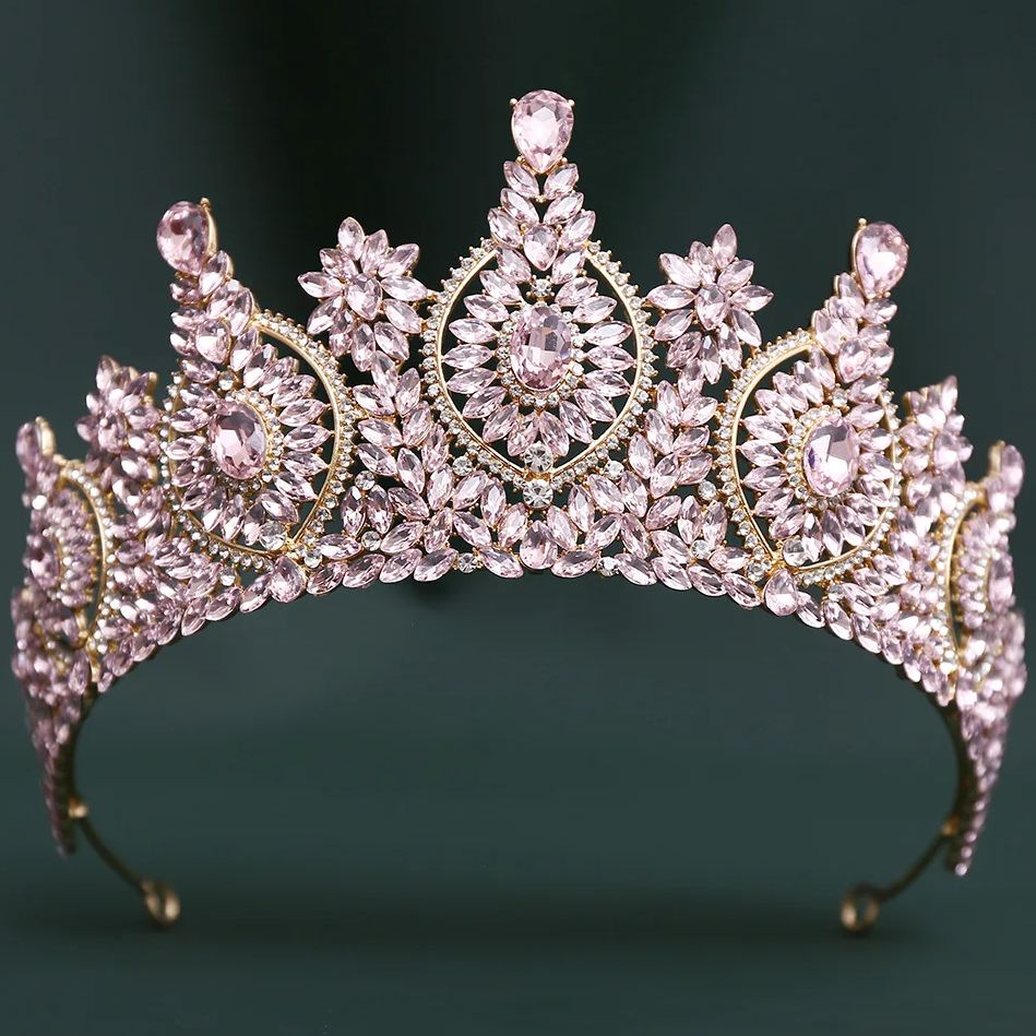 DIEZI 8 Colors Luxury Full Rhinestone Crystal Tiara Women Wedding Party Baroque Elegant Bridal Bride Crown Hair Accessories