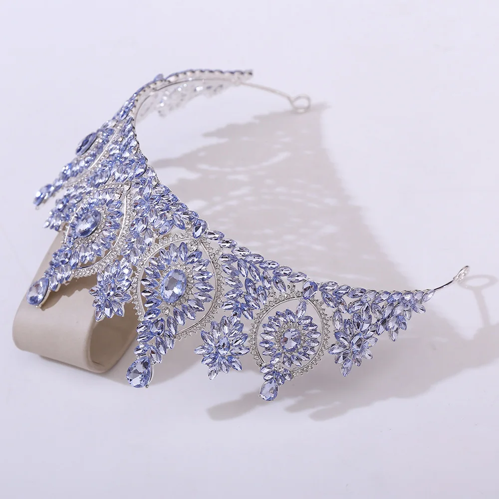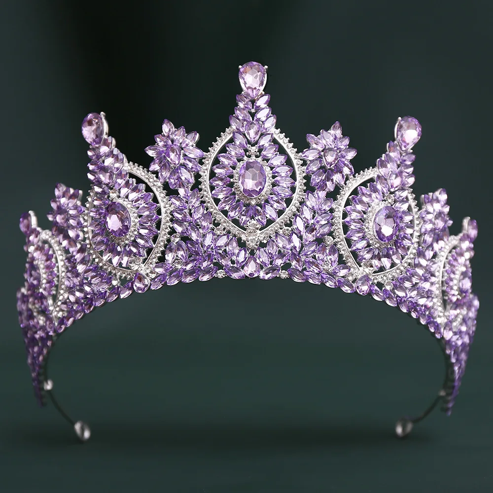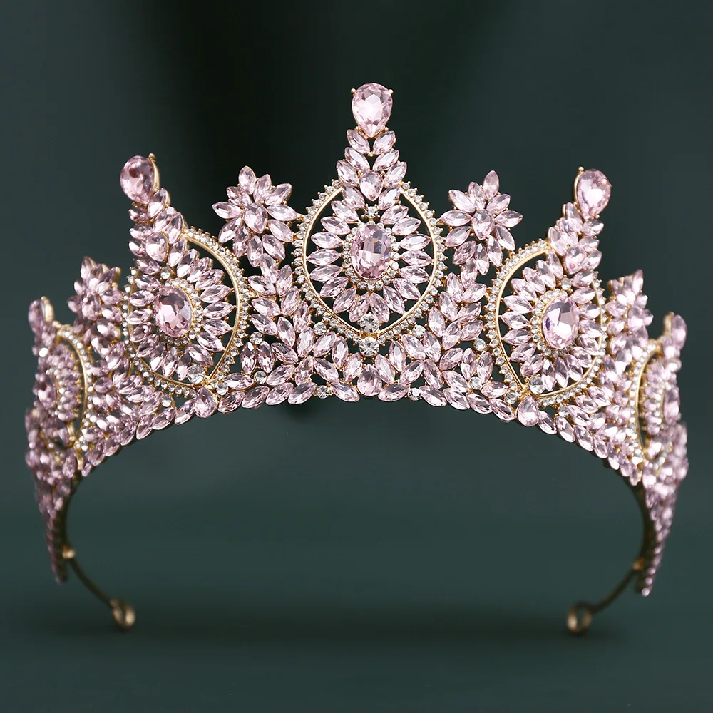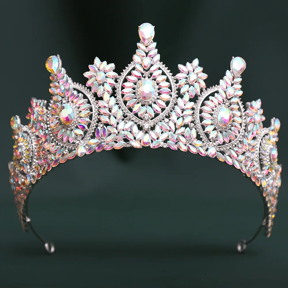 DIEZI 8 Colors Luxury Full Rhinestone Crystal Tiara Women Wedding Party Baroque Elegant Bridal Bride Crown Hair Accessories