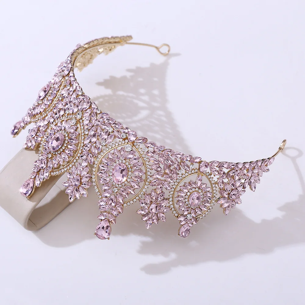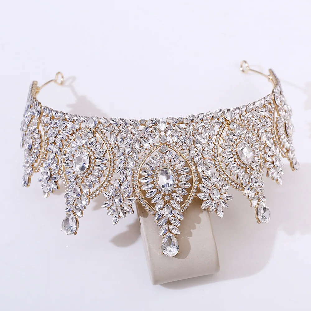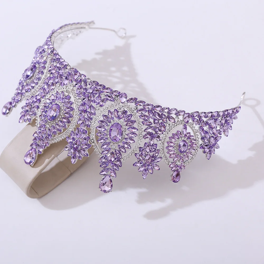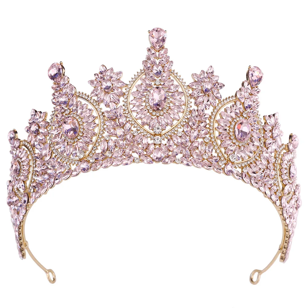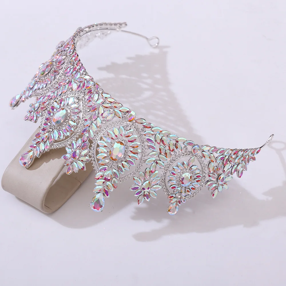 DIEZI 8 Colors Luxury Full Rhinestone Crystal Tiara Women Wedding Party Baroque Elegant Bridal Bride Crown Hair Accessories