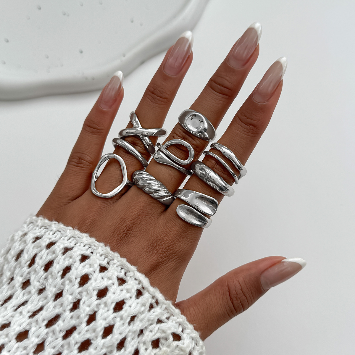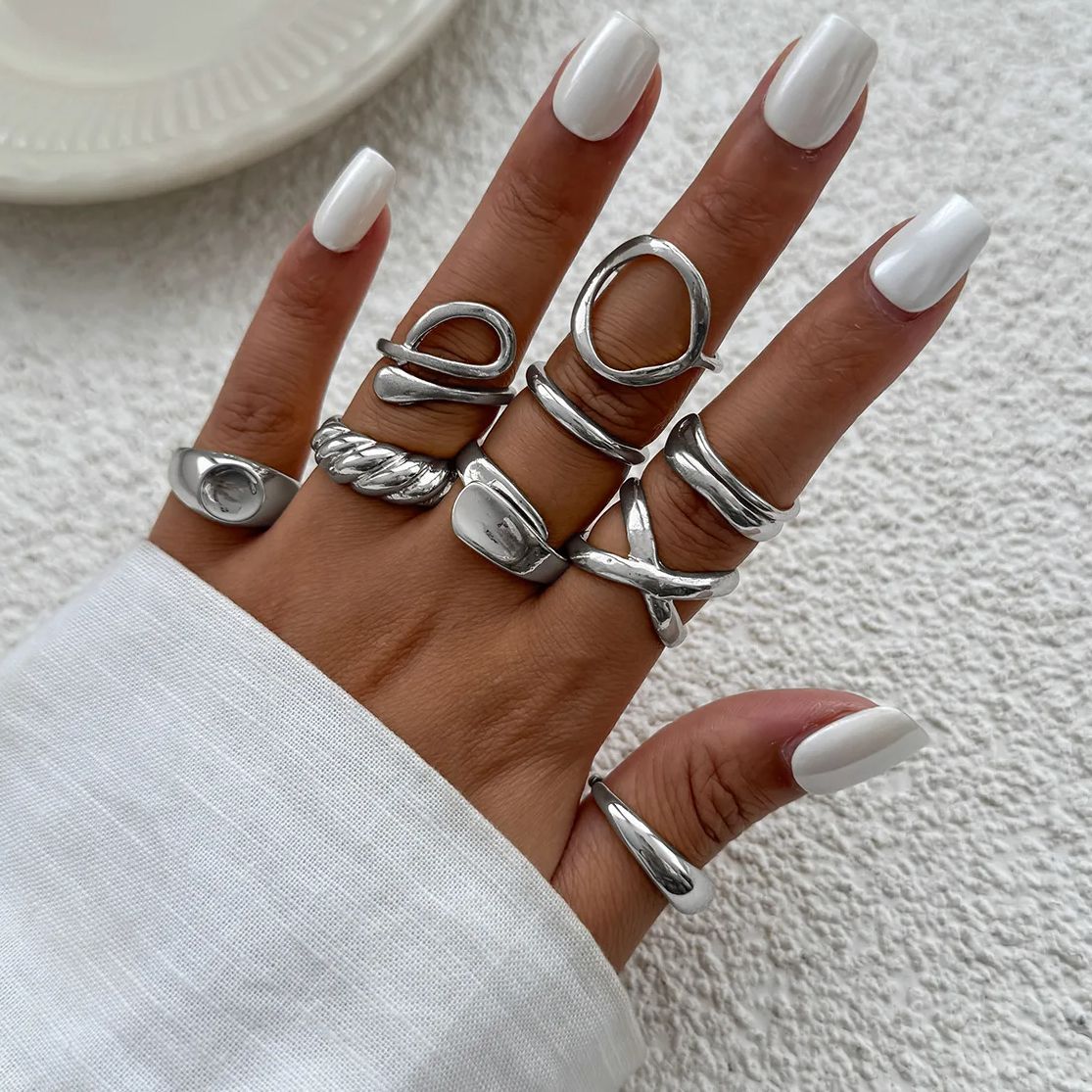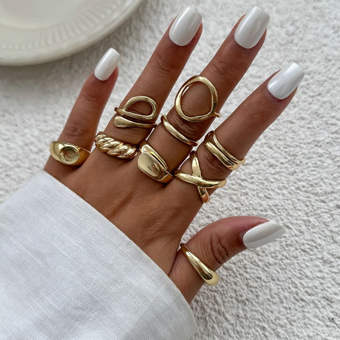 DIEZI 9pcs/set Hip Hop Hollow Metal Finger Rings For Women Girls Men Punk Gold Silver Color Geometric Knuckle Joint Ring Jewelry
