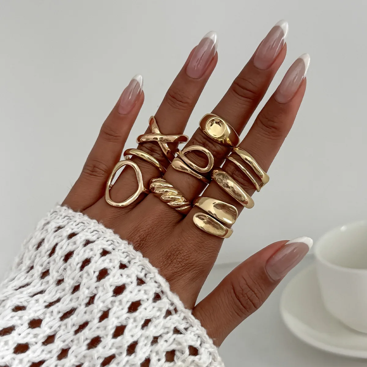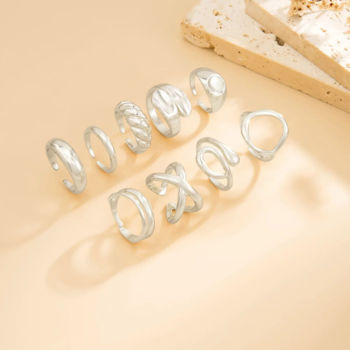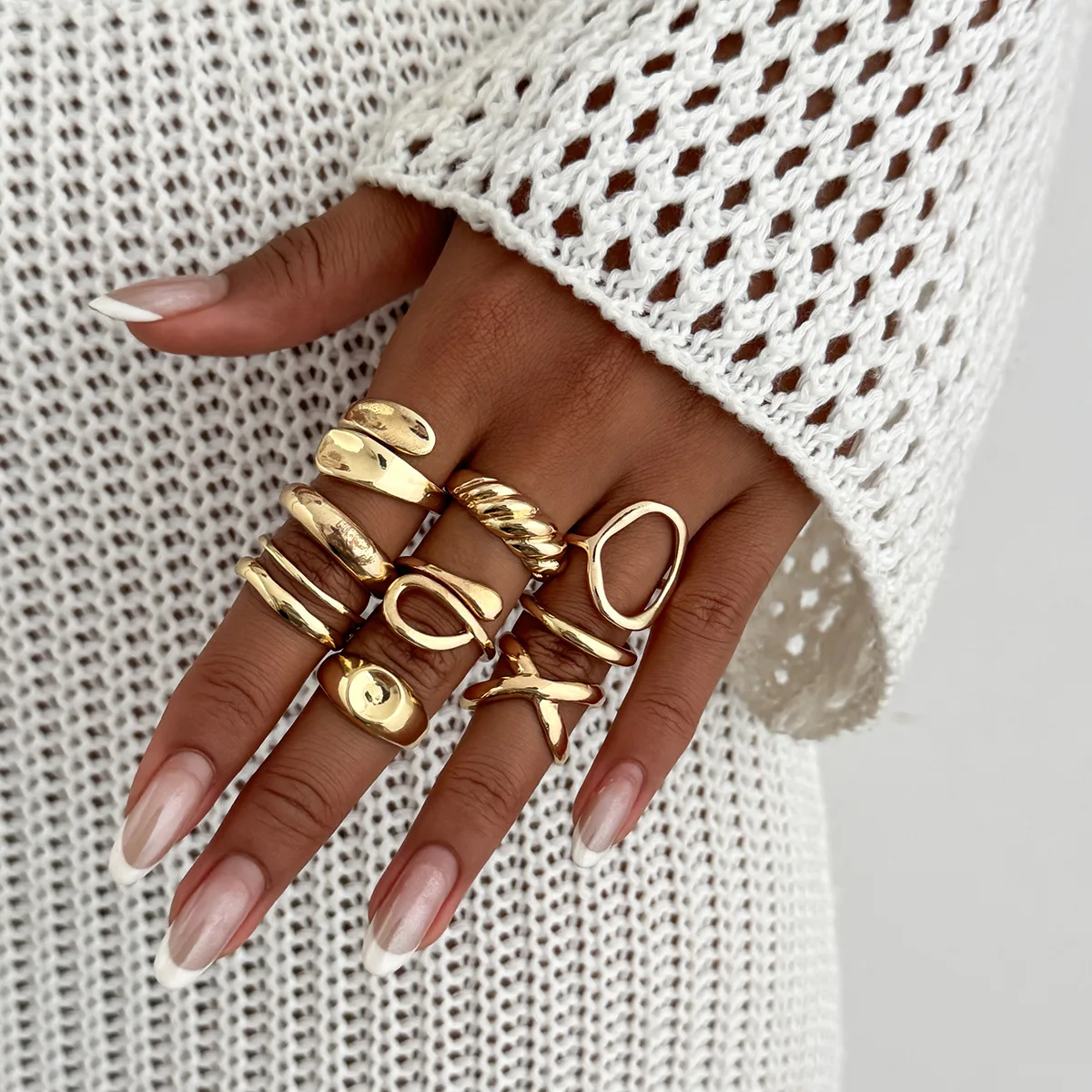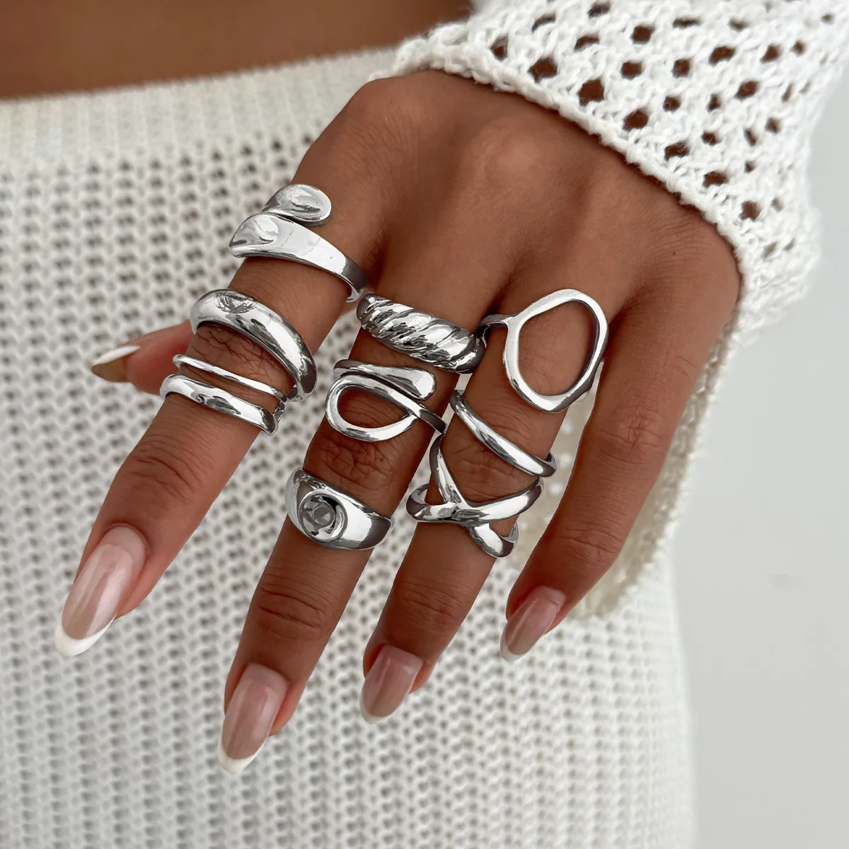 DIEZI 9pcs/set Hip Hop Hollow Metal Finger Rings For Women Girls Men Punk Gold Silver Color Geometric Knuckle Joint Ring Jewelry