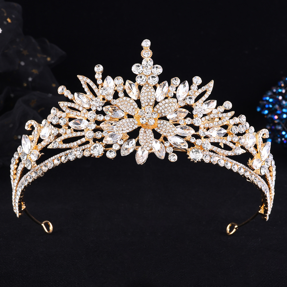 DIEZI Baroque Luxury AB Crystal Flower Tiara For Women Wedding Party Elegant Bridal Bride Rhinestone Crown Hair Accessories