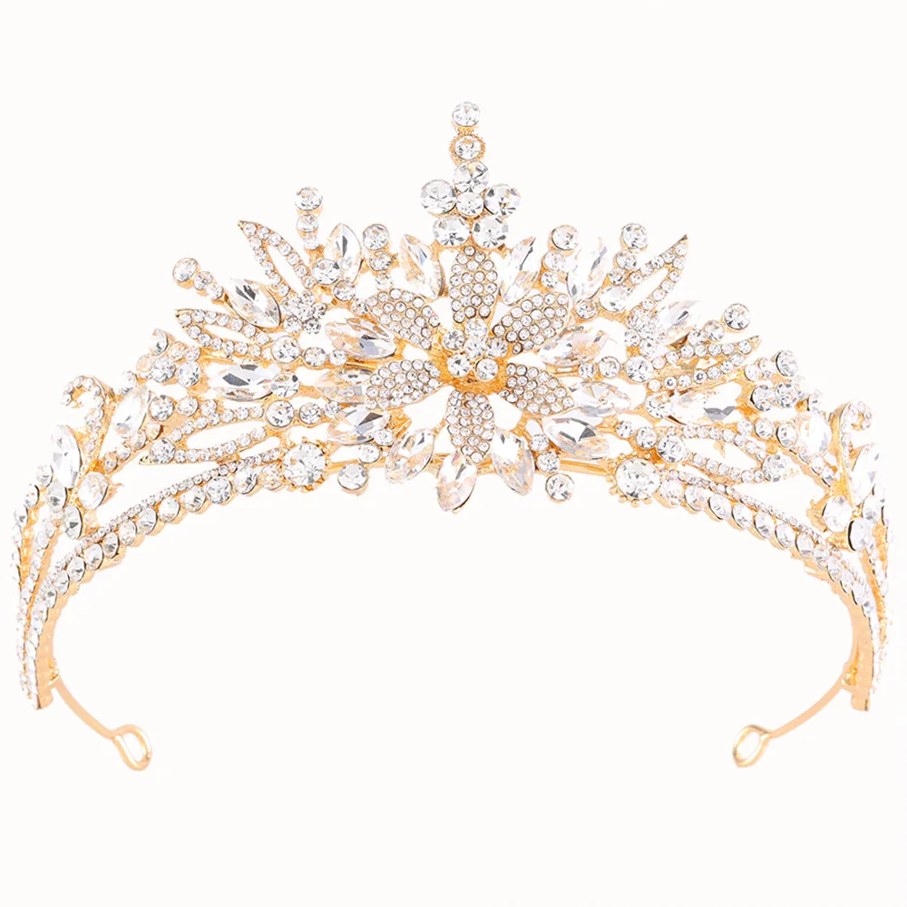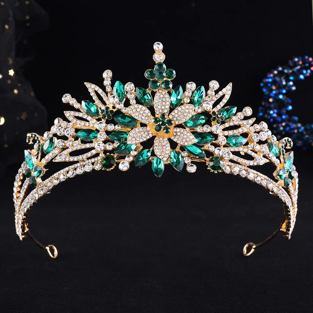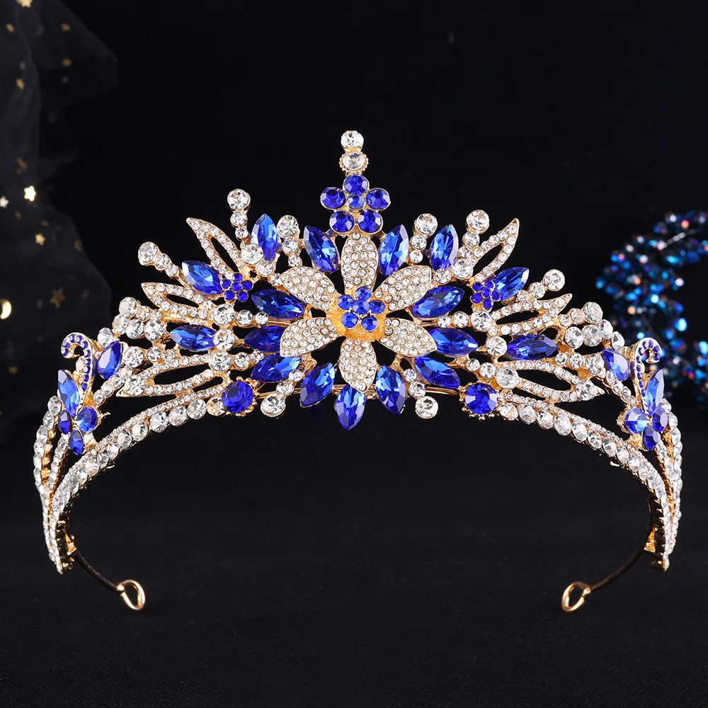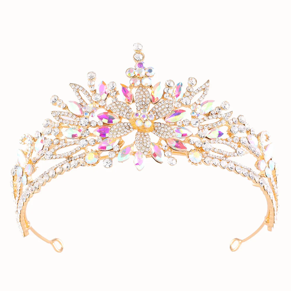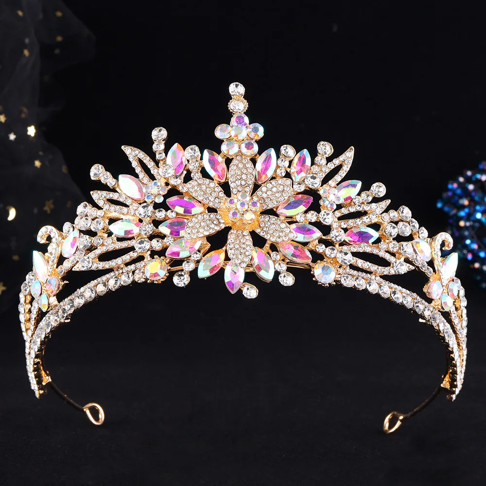 DIEZI Baroque Luxury AB Crystal Flower Tiara For Women Wedding Party Elegant Bridal Bride Rhinestone Crown Hair Accessories