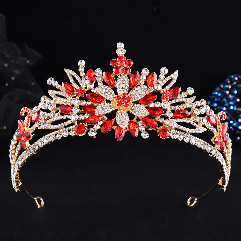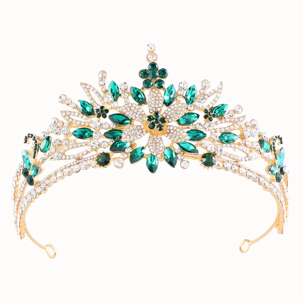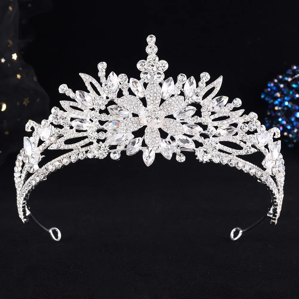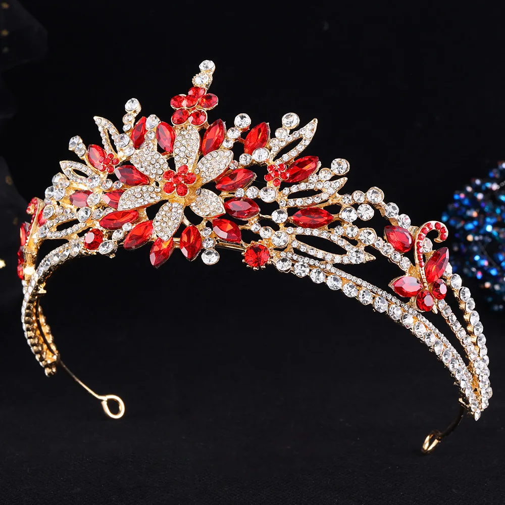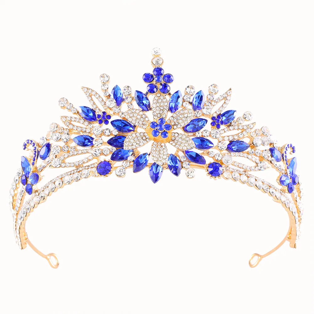 DIEZI Baroque Luxury AB Crystal Flower Tiara For Women Wedding Party Elegant Bridal Bride Rhinestone Crown Hair Accessories