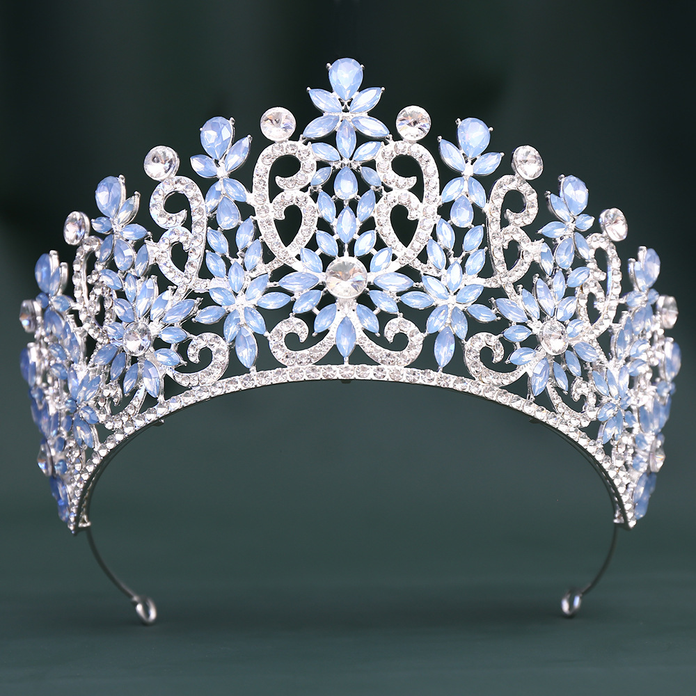 DIEZI Baroque Luxury Opal Crystal Tiara For Women Wedding Party Elegant Bridal Bride Rhinestone Flower Crown Hair Accessories