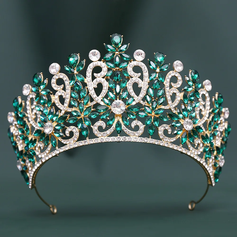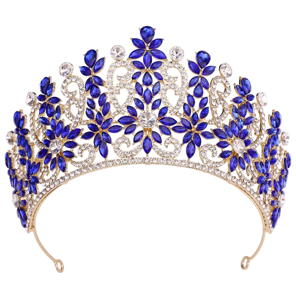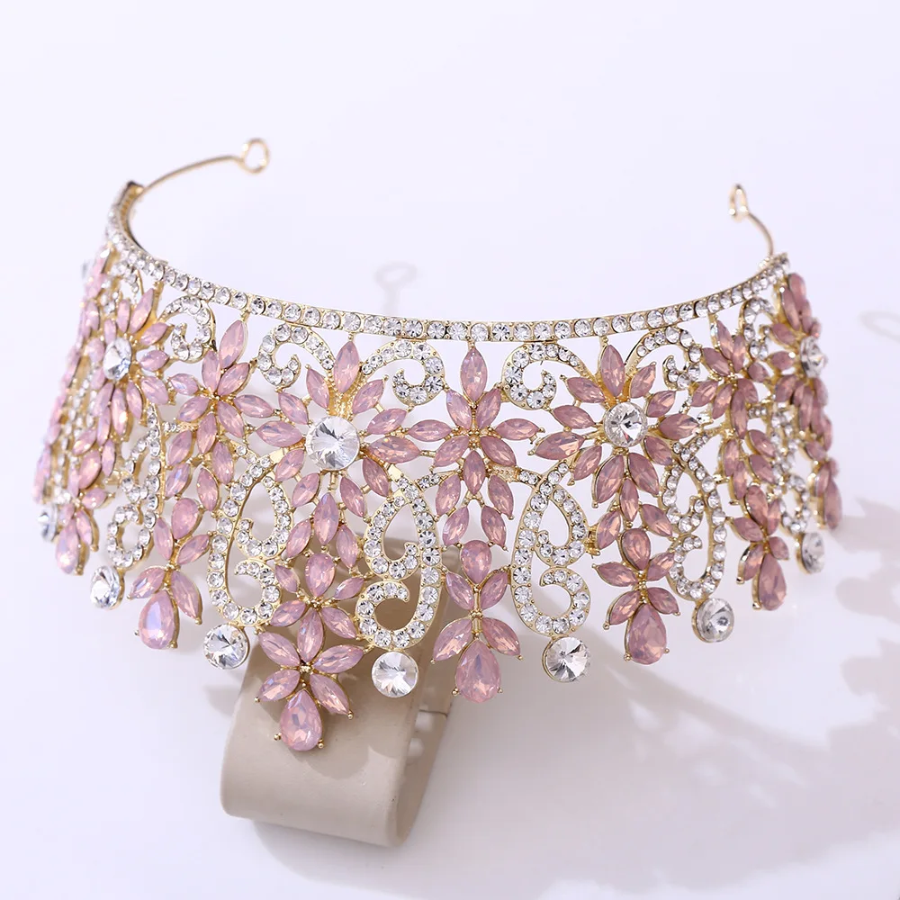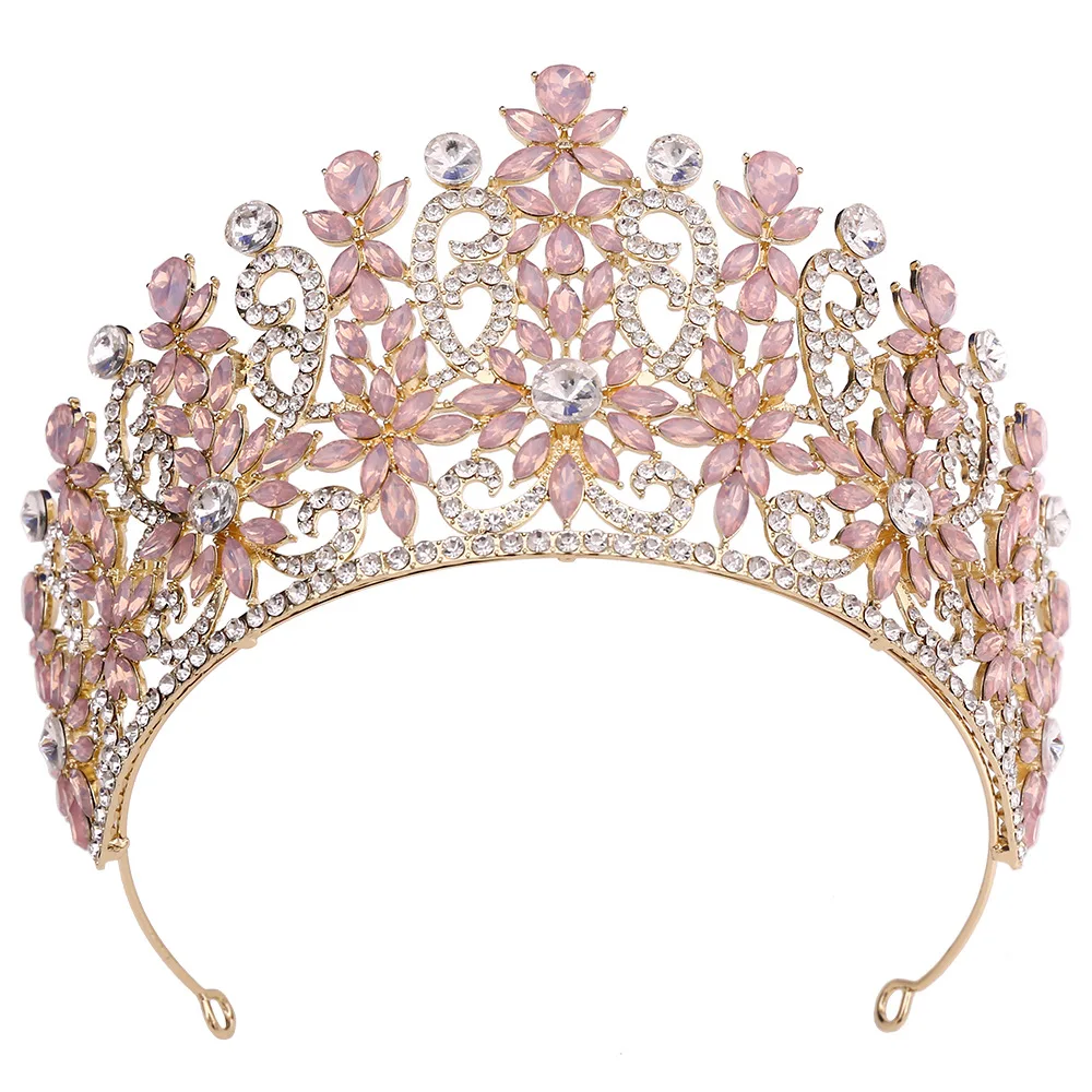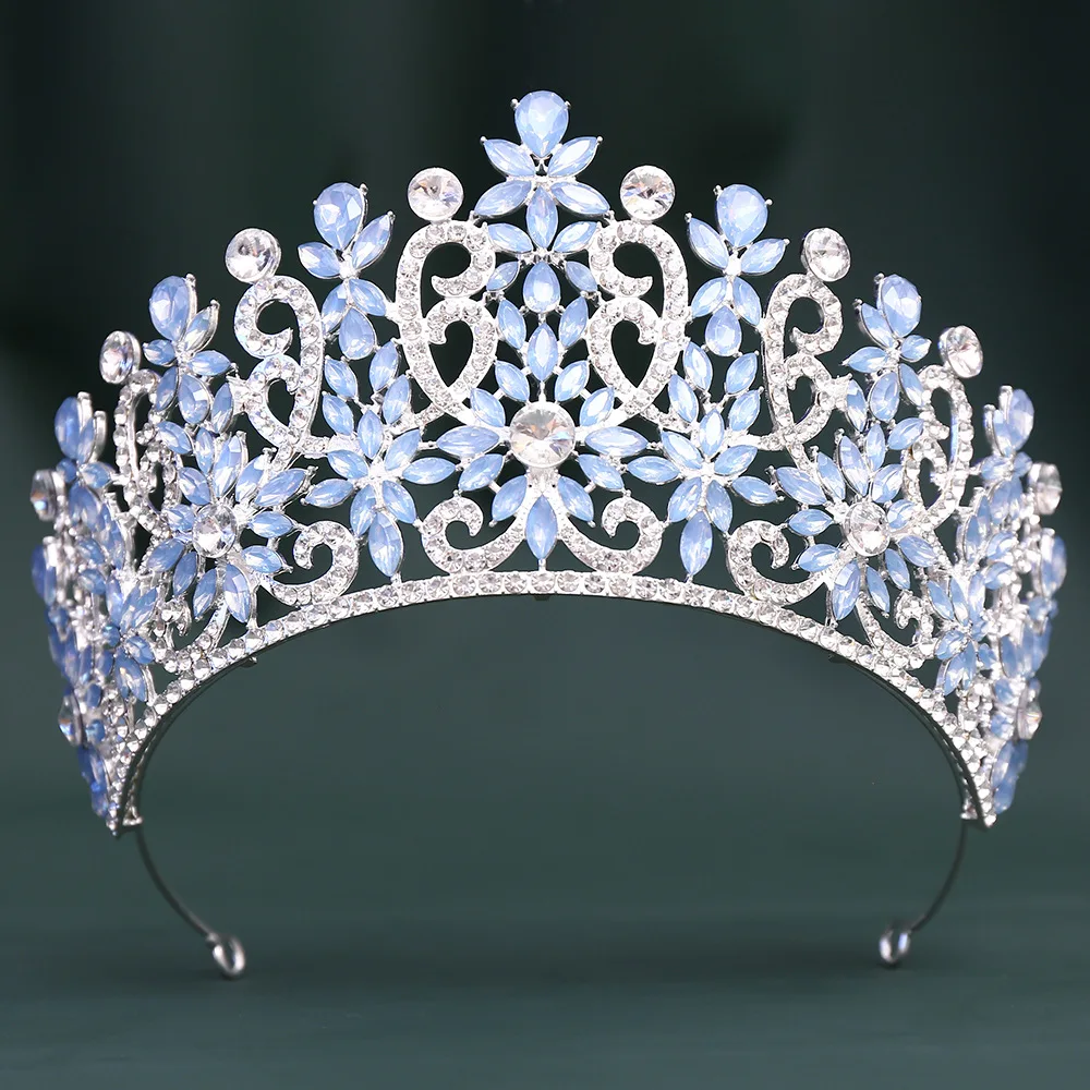 DIEZI Baroque Luxury Opal Crystal Tiara For Women Wedding Party Elegant Bridal Bride Rhinestone Flower Crown Hair Accessories