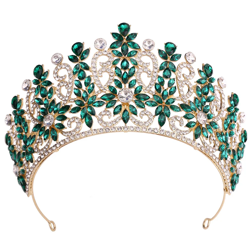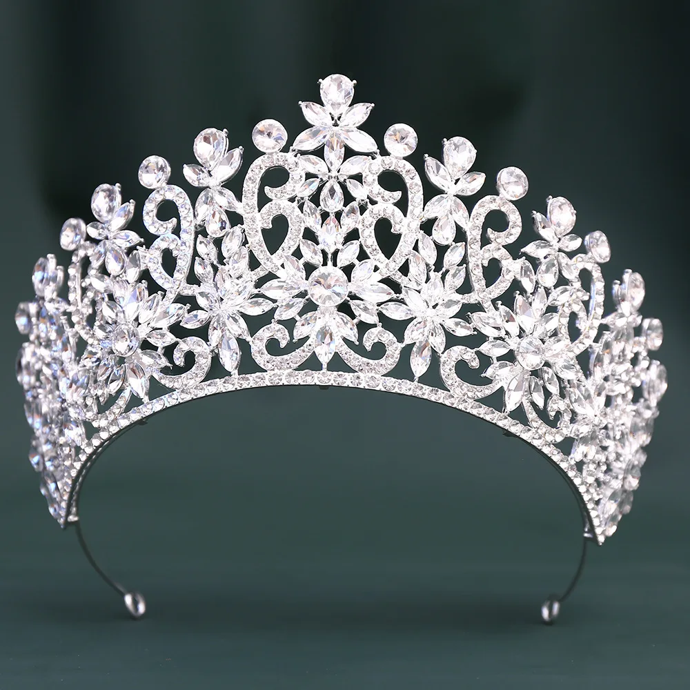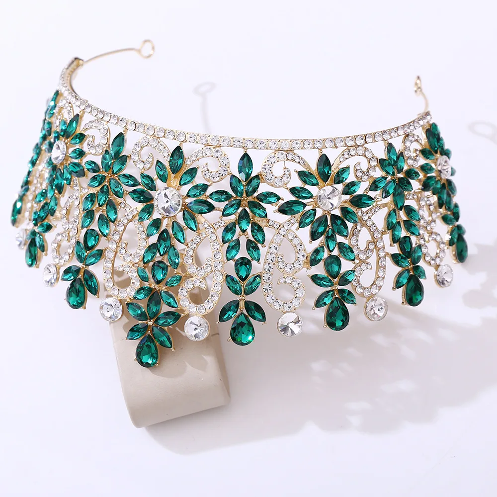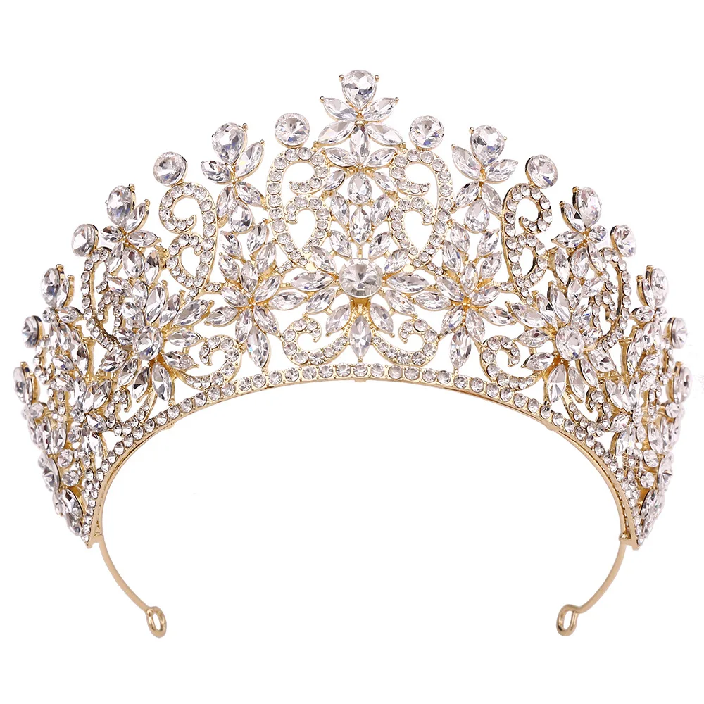 DIEZI Baroque Luxury Opal Crystal Tiara For Women Wedding Party Elegant Bridal Bride Rhinestone Flower Crown Hair Accessories