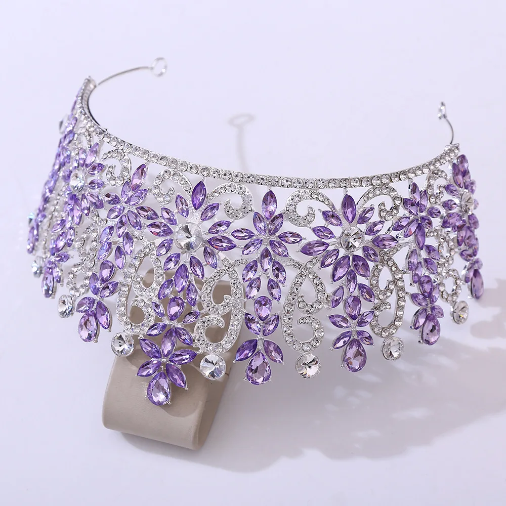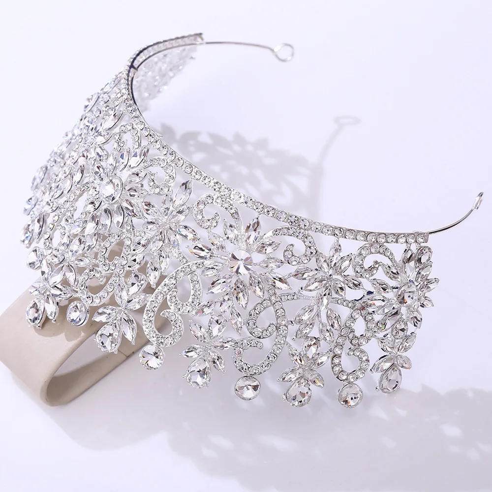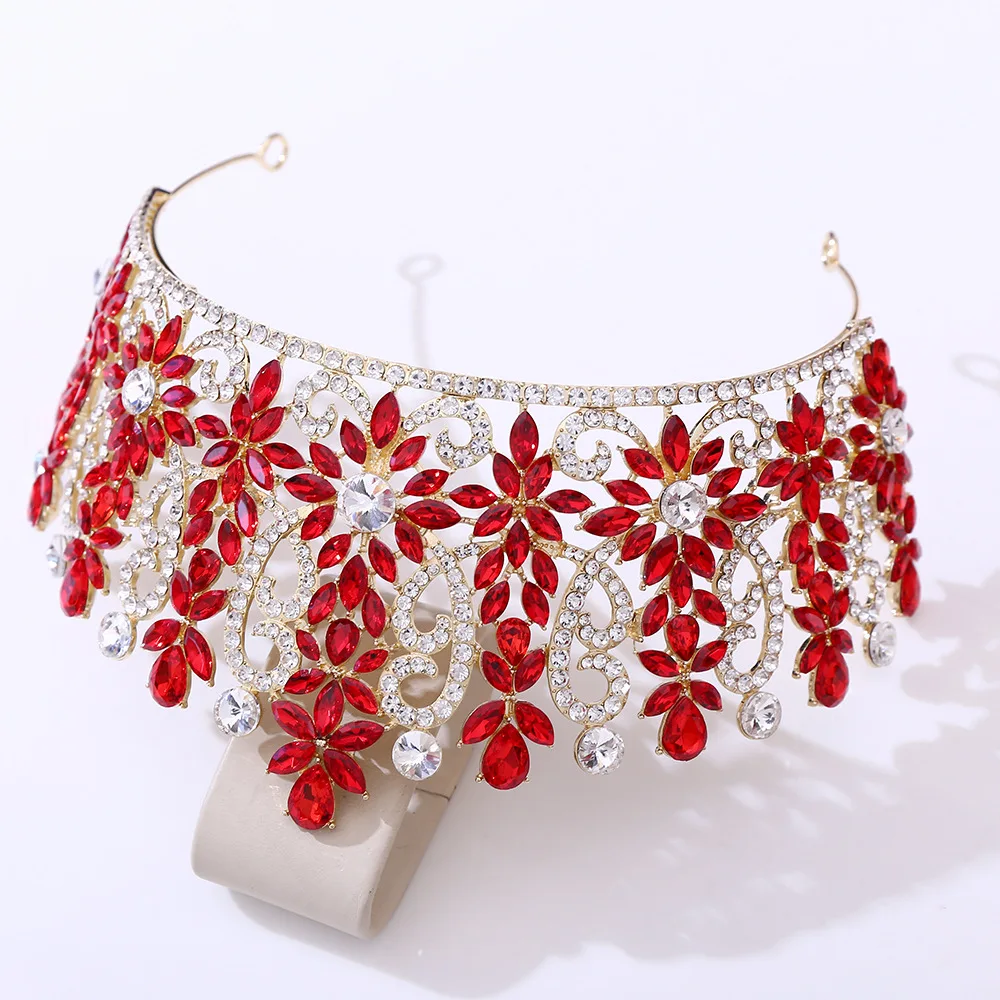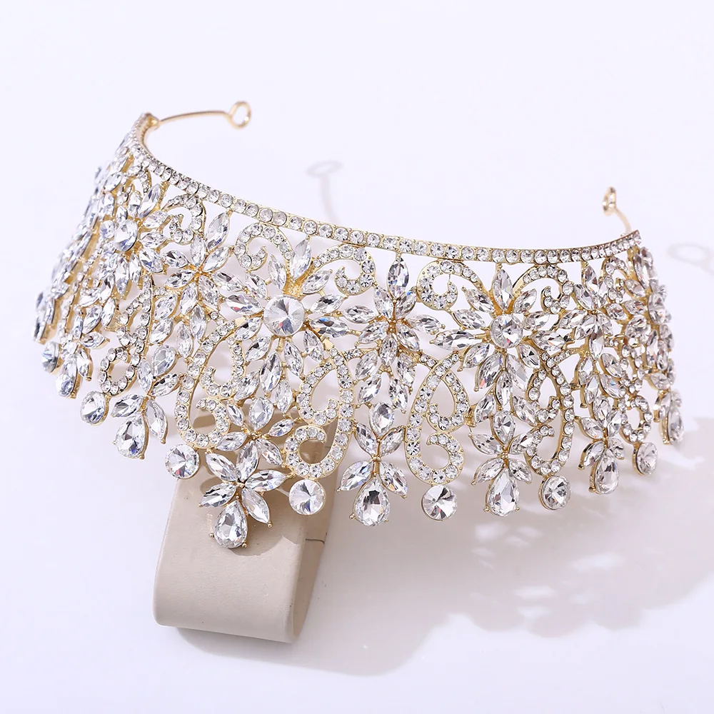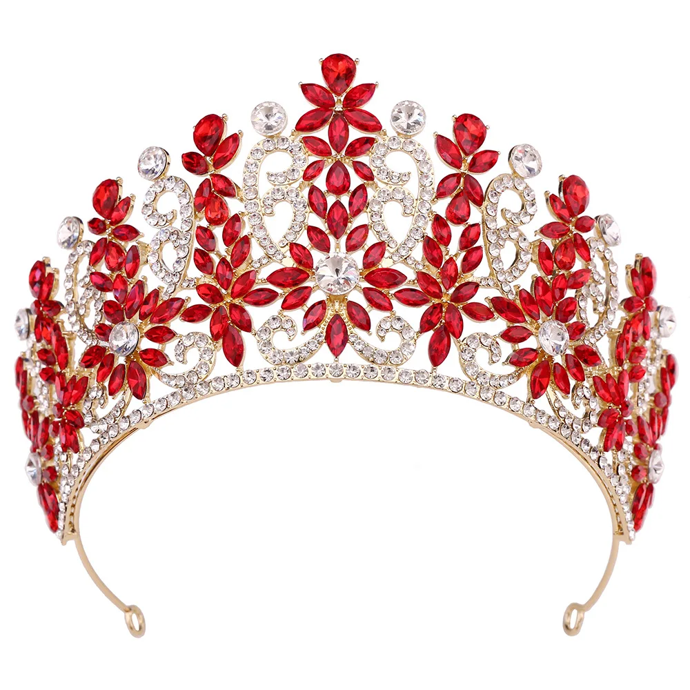DIEZI Baroque Luxury Opal Crystal Tiara For Women Wedding Party Elegant Bridal Bride Rhinestone Flower Crown Hair Accessories