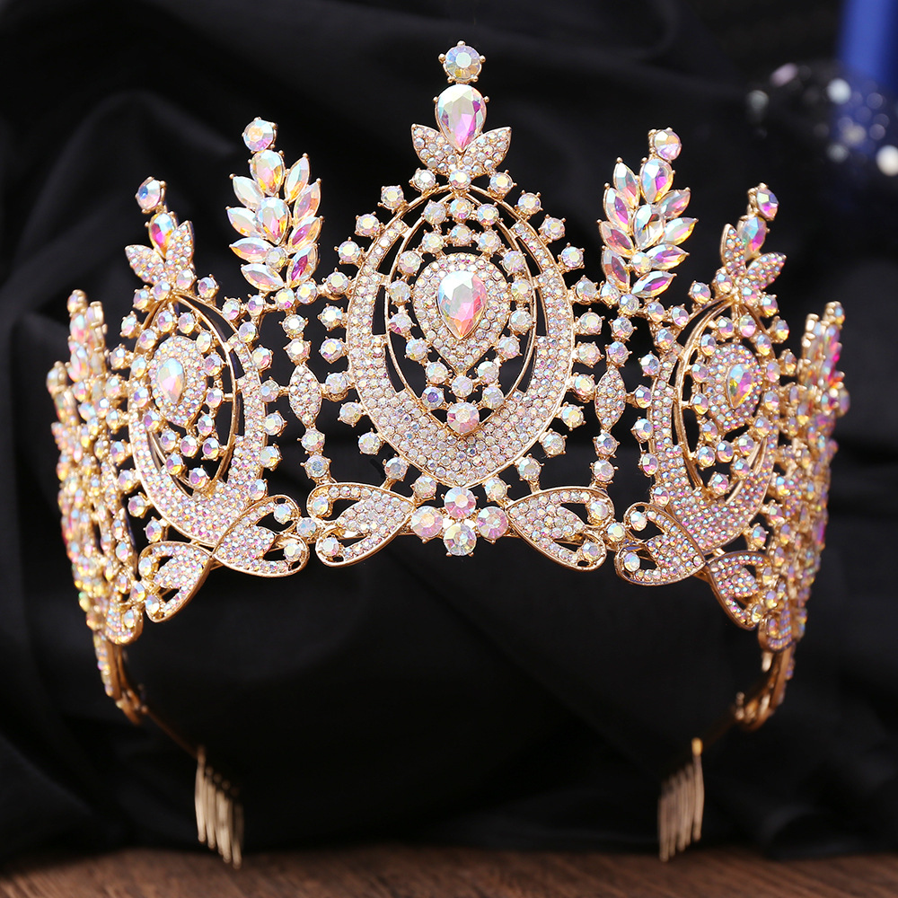 DIEZI Different Style Baroque Luxury AB Crystal Opal Tiara Crown Women Elegant Queen Princess Tiara Wedding Party Hair Jewelry
