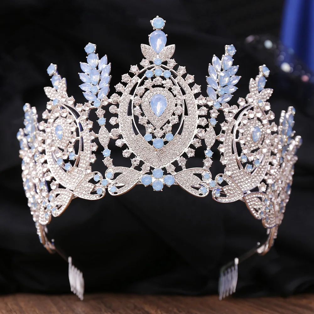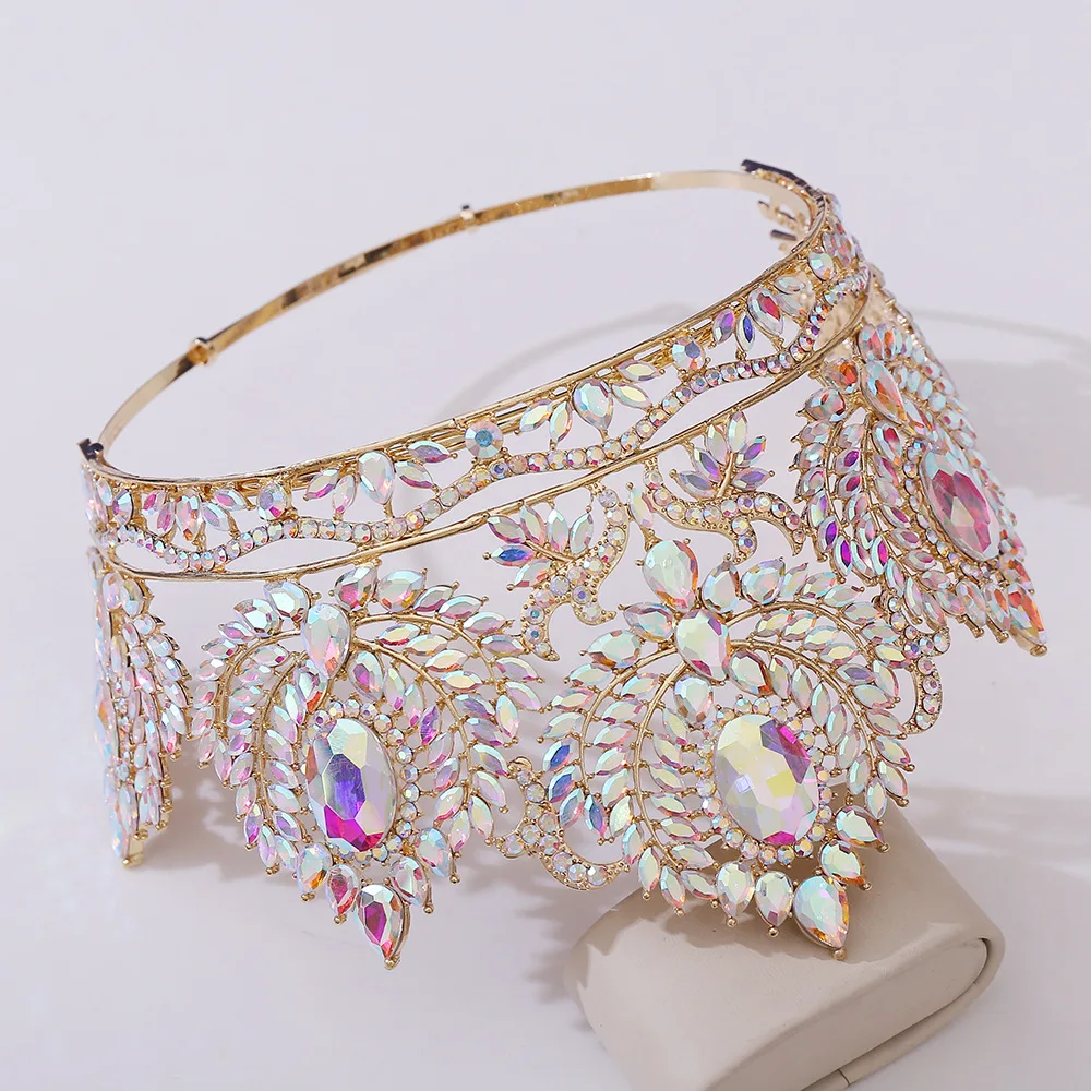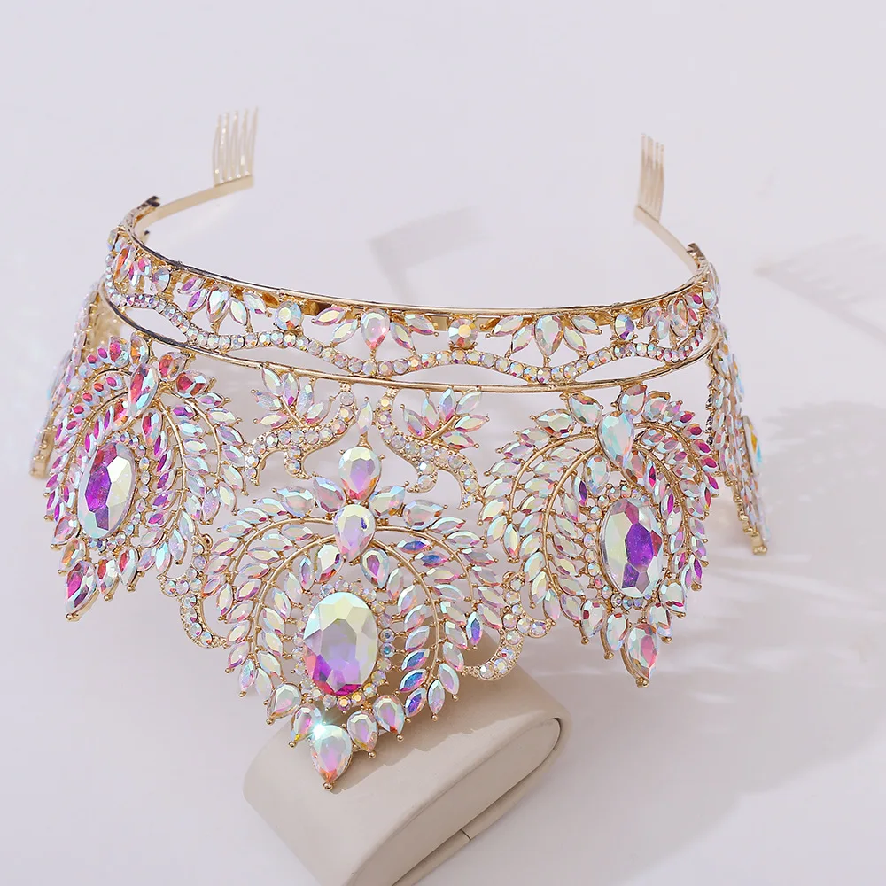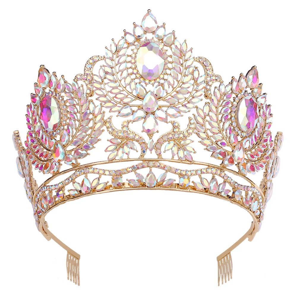 DIEZI Different Style Baroque Luxury AB Crystal Opal Tiara Crown Women Elegant Queen Princess Tiara Wedding Party Hair Jewelry