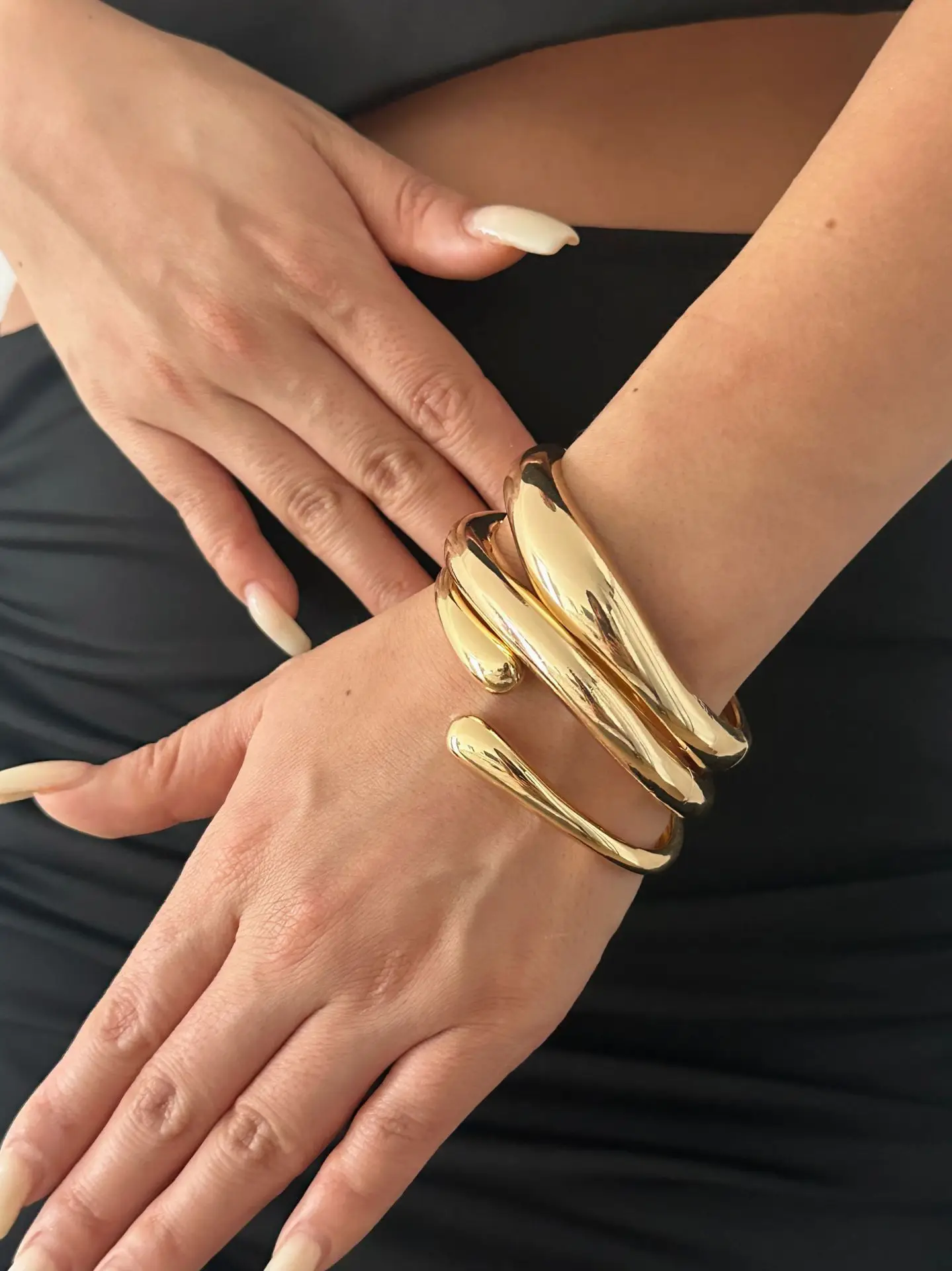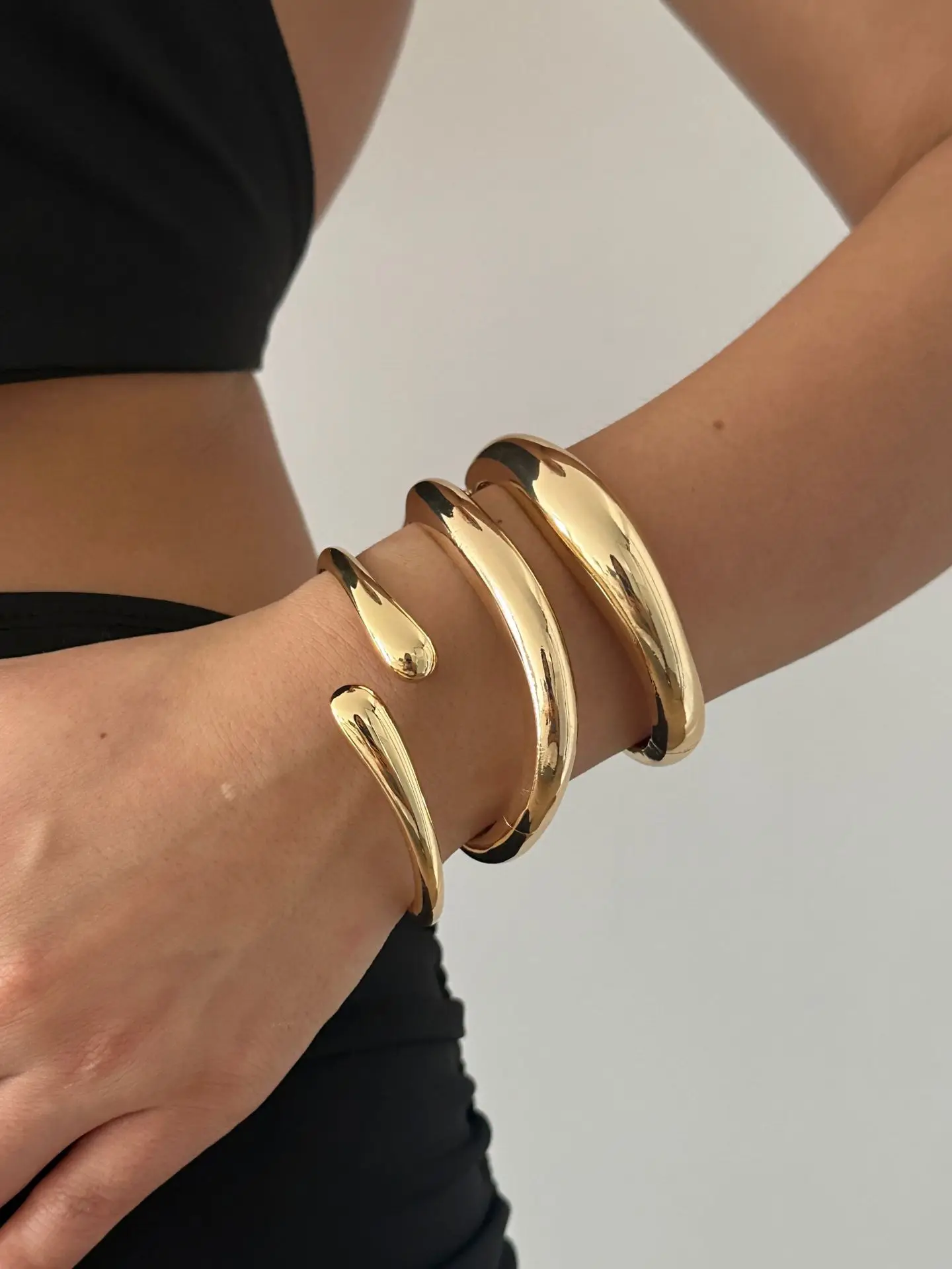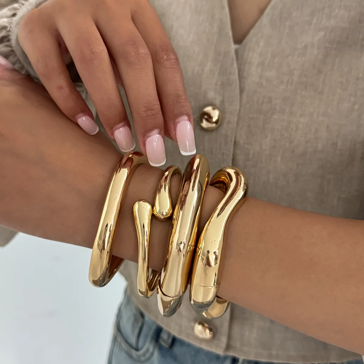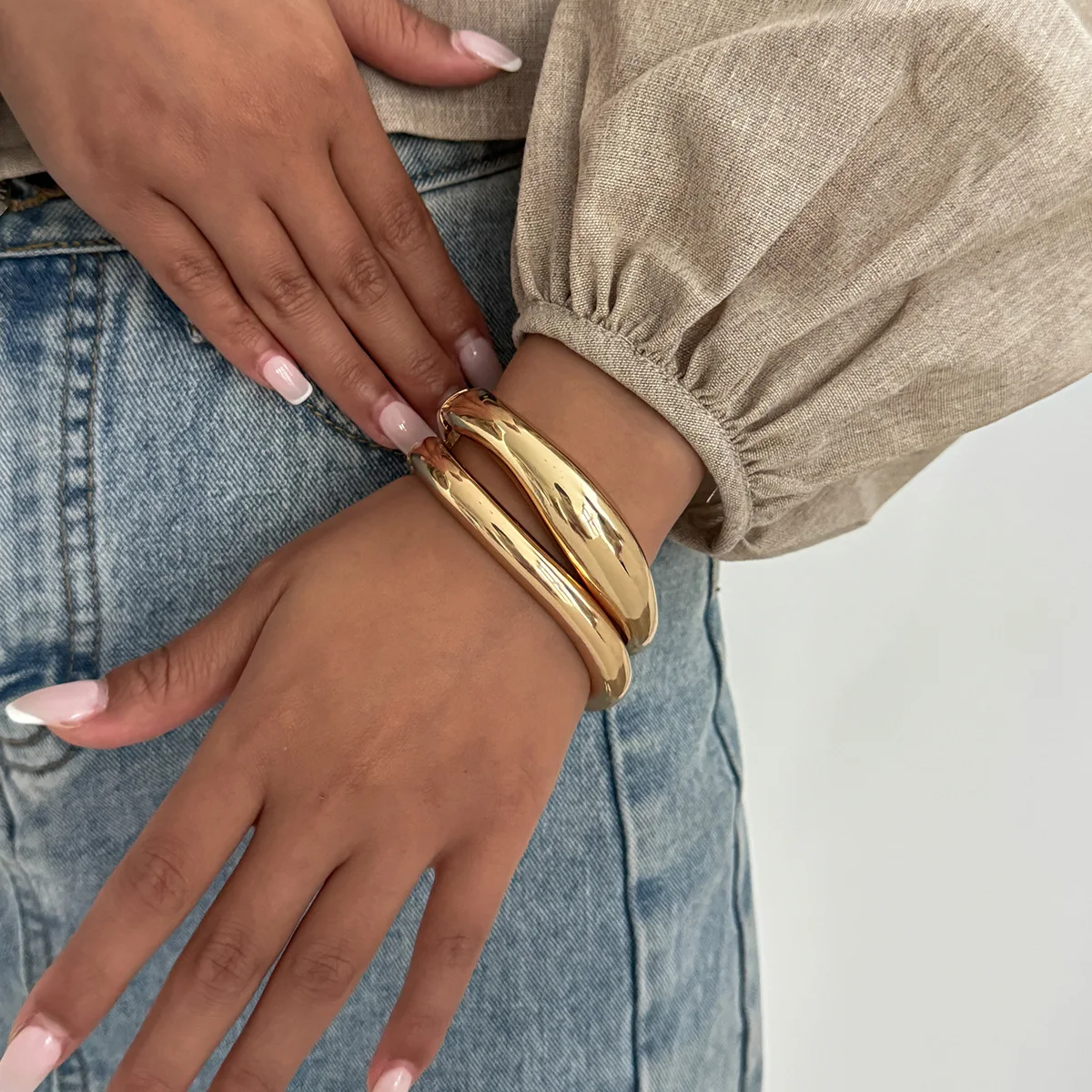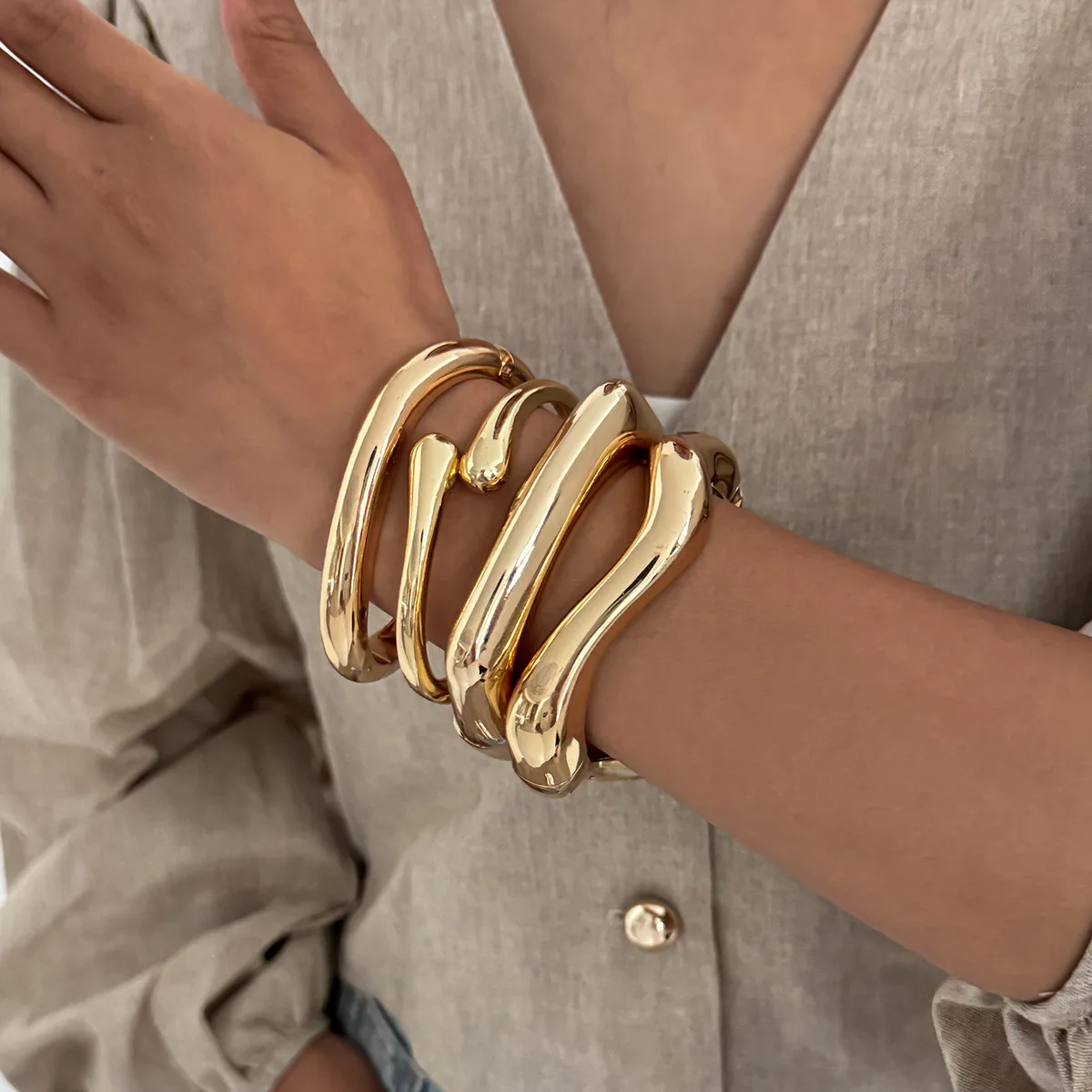 DIEZI Exaggerated Vintage Gold Silver Color Water Drop Cuff Bangles For Women Men Hip Hop Punk Geometric Round Bracelet Jewelry