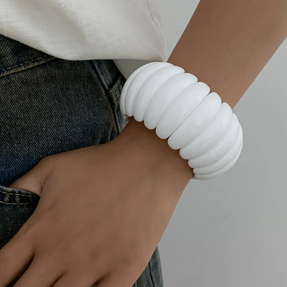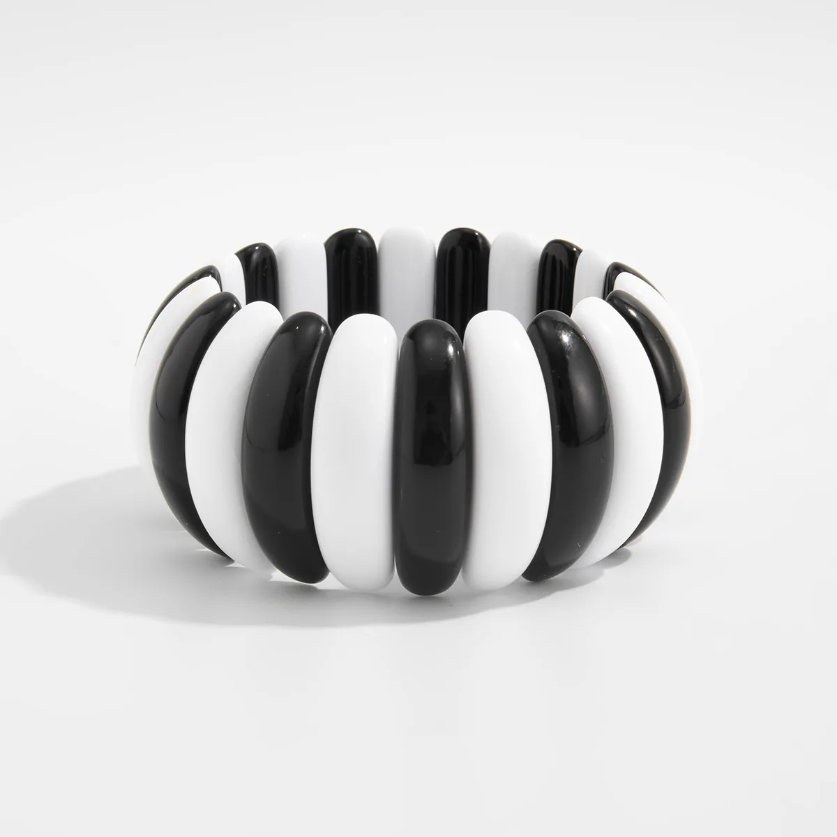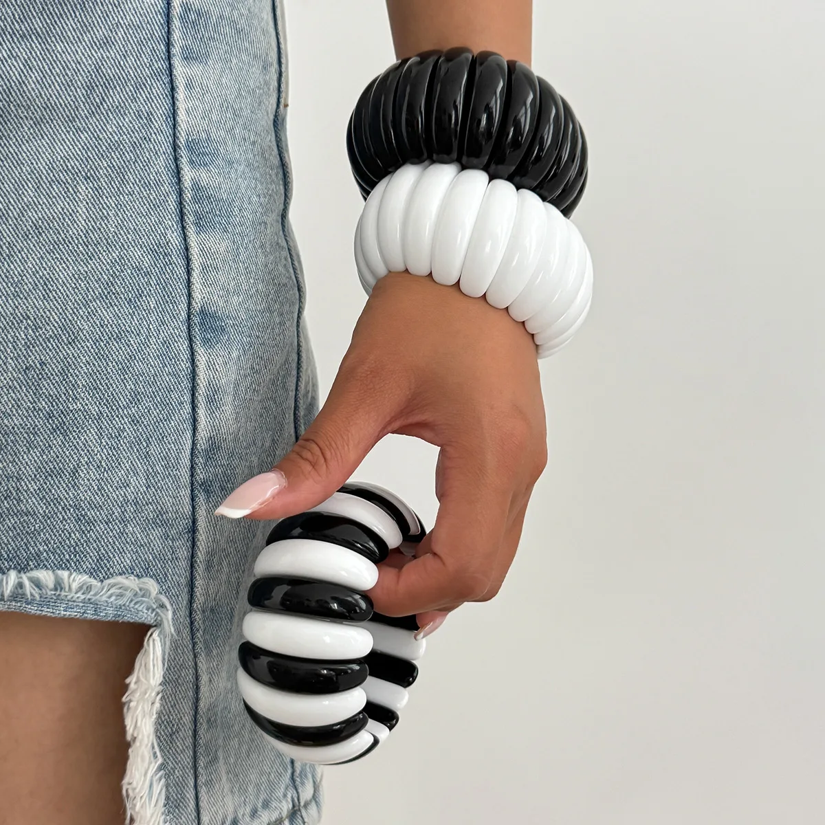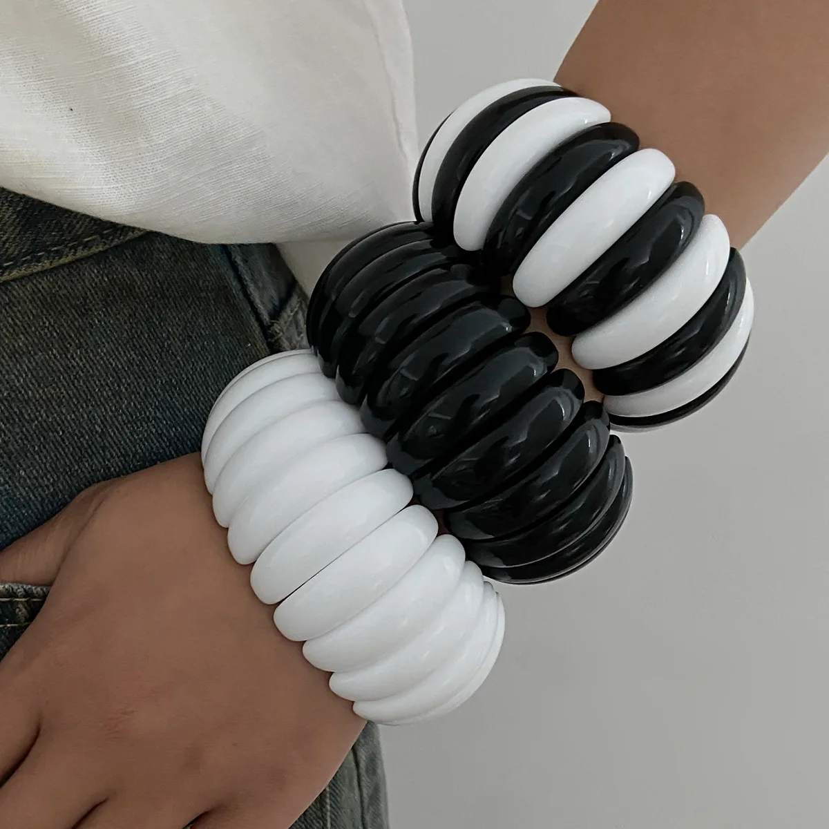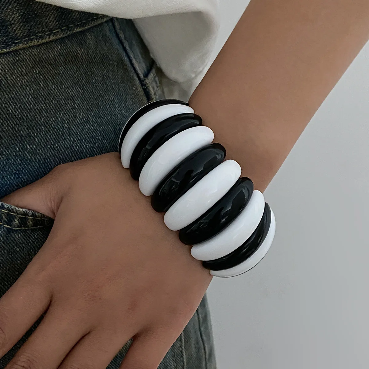 DIEZI Exaggerated Vintage Punk Geometric Elastic Rope Bangles Jewelry Fashion Black White Resin Bangles Bracelets For Women Men